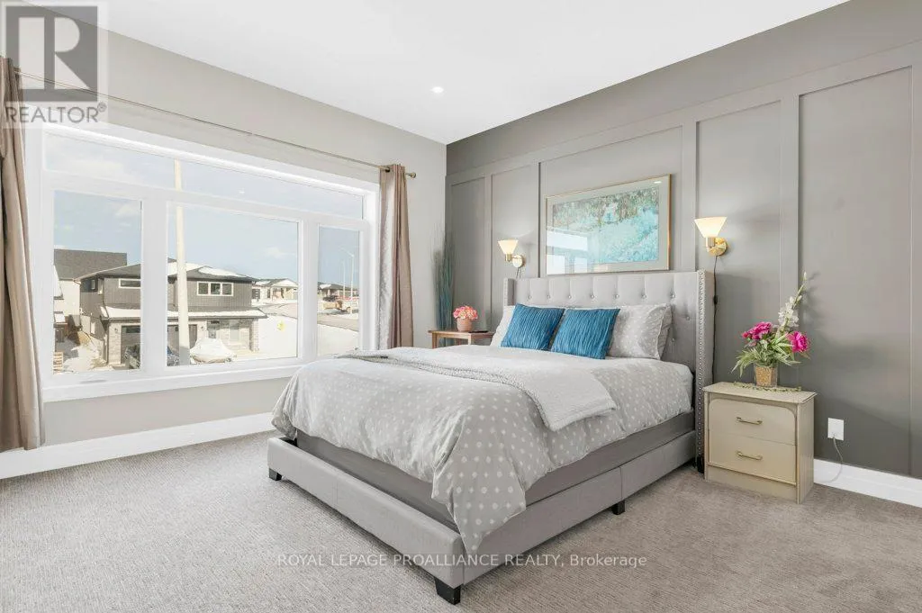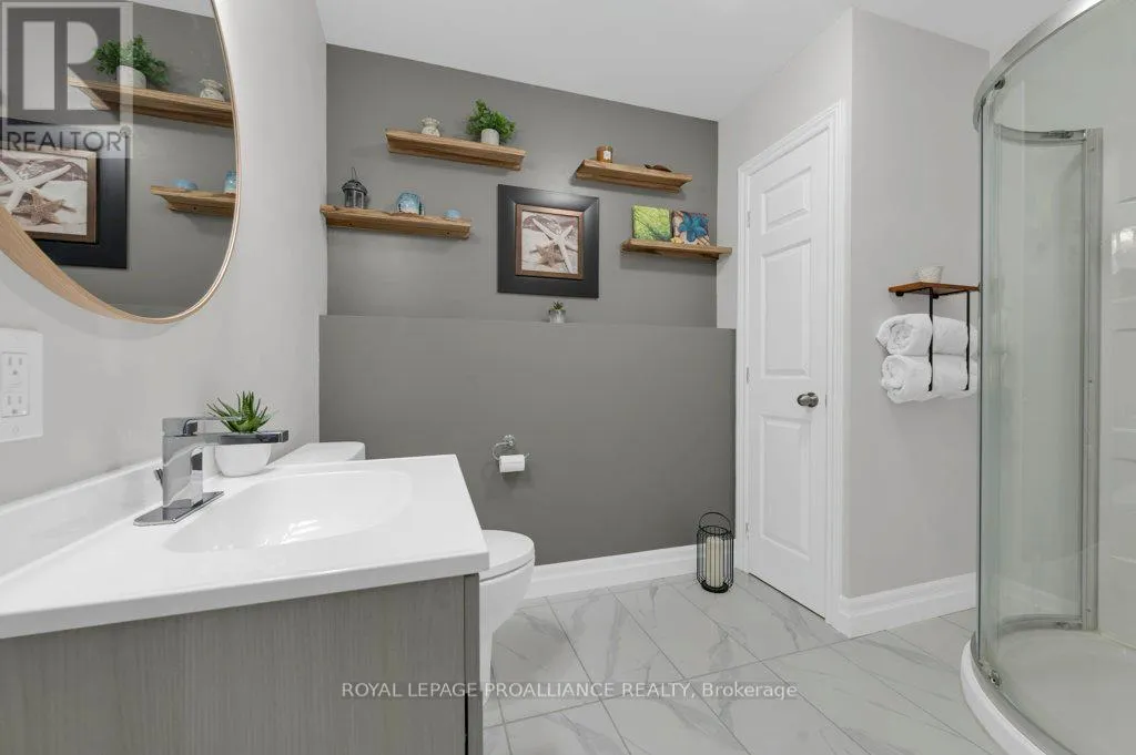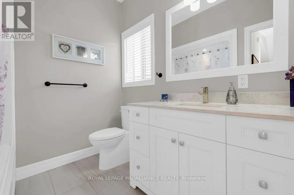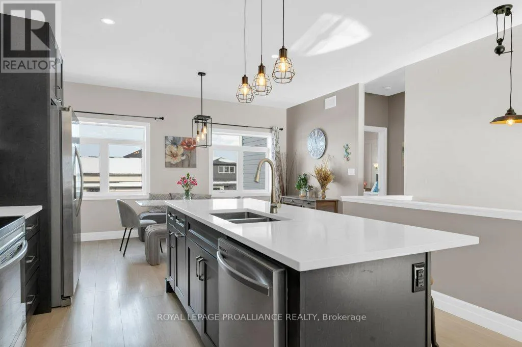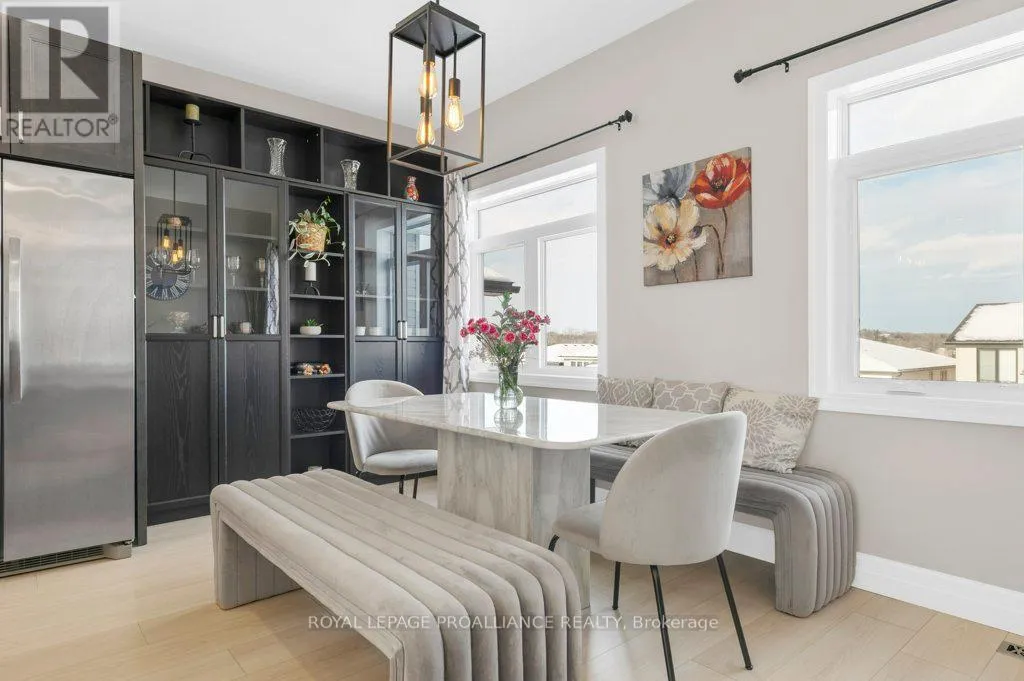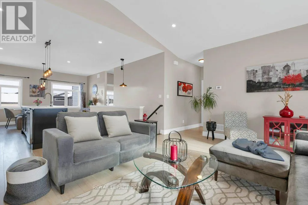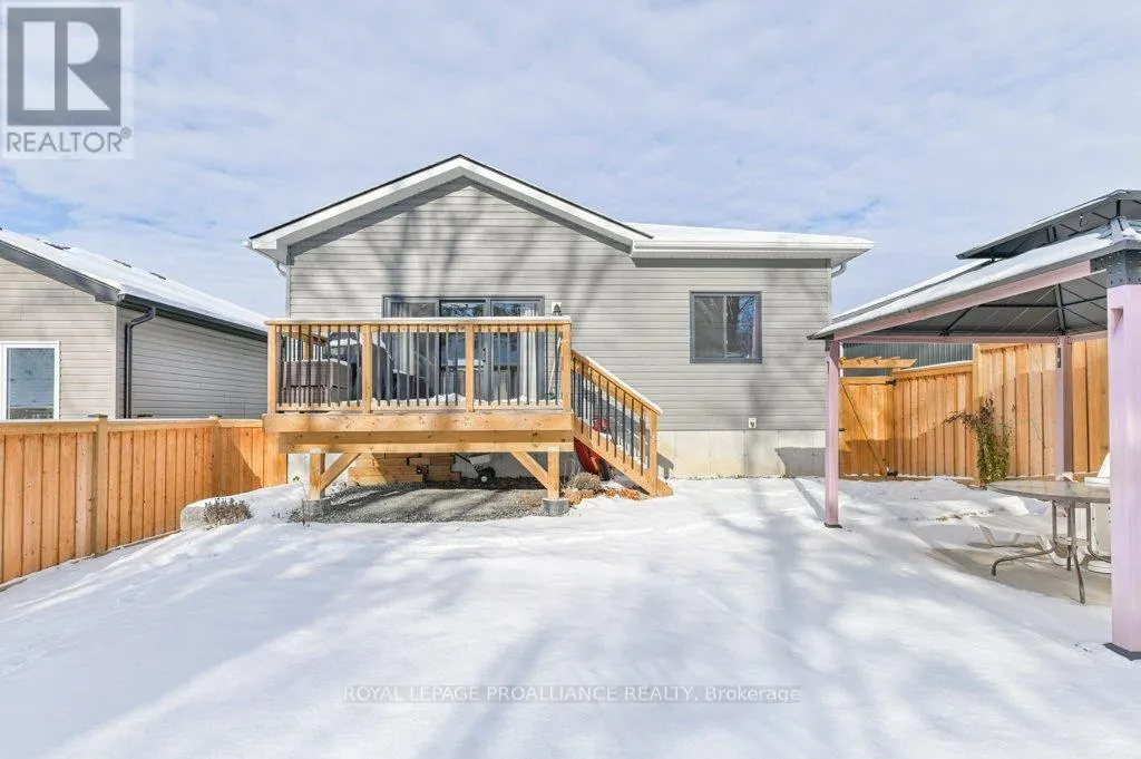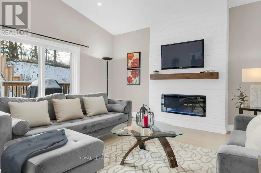 Cross Streets: North Trent St / Huffman Rd / Kyle Ct / Meagan. ** Directions: North Trent St/Hufman Rd/Kyle Crt/Meaghan. Welcome to 53 Meagan Lane-an executive 2023 residence that elevates the standard of a modern new build, featuring over $25,000 in upgrades. This turnkey luxury home is perfectly located with quick access to the 401, Belleville, and CFB Trenton. Within 2 km, enjoy downtown Frankford, the Frankford Tourist Park and Beach, the Trent River, golf, trails, playgrounds, shops, restaurants, and essential amenities-everything that makes this community so loved.Inside, bright sophistication defines the space with 9-foot ceilings, a stunning vaulted living room, and a seamless open-concept layout designed for both everyday living and entertaining. The gourmet kitchen showcases an impressive 8-foot quartz island and a striking full wall of glass-front cabinetry-perfect for hosting gatherings while staying connected with family and guests. The living area offers warmth and character with a beautiful shiplap-framed fireplace that creates a cozy focal point during cooler months. Main-floor laundry and a 200-amp service add convenience and functionality. Includes 6 high end appliances.The primary suite is a peaceful retreat with a walk-in closet and a spa-inspired ensuite featuring a custom glass shower and premium finishes.Step outside to a private outdoor oasis designed with entertaining in mind. An 8-foot patio door leads to a spacious deck and lower patio area, creating a seamless indoor-outdoor flow that is perfect for summer barbecues, evening cocktails, and gatherings with friends and family. The professionally landscaped, fully fenced yard offers exceptional privacy with no rear neighbors and beautiful backyard views of the Trent River. Perennial gardens and mature greenery enhance the peaceful setting, while the all-season gazebo provides a comfortable outdoor living space to relax or entertain throughout the warmer months. The built-in natural gas barbecue hook-up makes hosting effortless, and an elegant interlocking walkway further enhances the home's curb appeal. (id:27476)