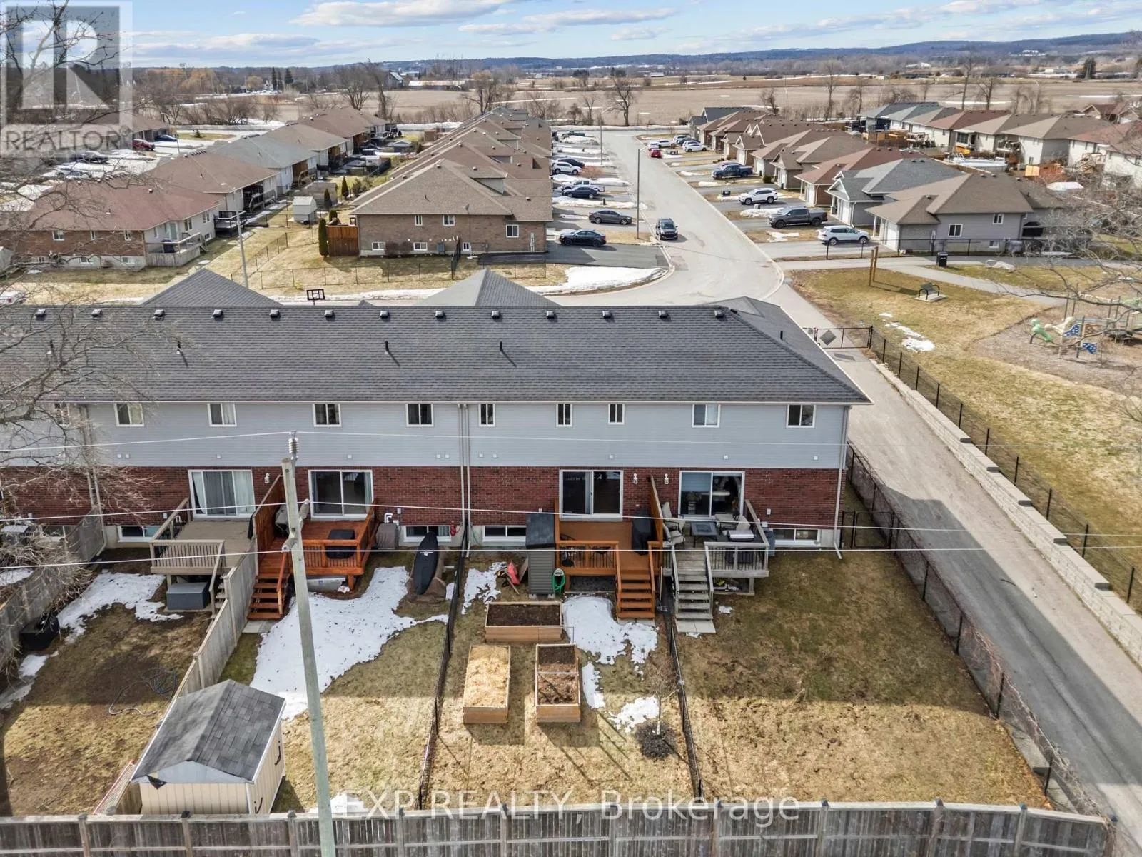 Cross Streets: Little Farm Blvd. ** Directions: head west on HWY 2, Turn North on Little Farm Blvd, Turn East on Cortland Cres. Welcome to 56 Cortland Crescent, a standout 2016 Klemencic built freehold townhouse that perfectly balances modern sophistication with family centric functionality. Tucked into one of Trenton's most desirable, kid friendly neighbourhoods, this home is situated literally steps from the local park, offering a lifestyle of convenience and outdoor ease. The interior greets you with an expansive, sun drenched open concept main floor, where a chef inspired kitchen takes centre stage with rich cabinetry, sleek stone countertops, stainless steel appliances, and a polished tile backsplash. Transition seamlessly from indoor dining to outdoor entertaining through large patio doors leading to a private, oversized deck and a fully fenced backyard complete with raised garden beds the ultimate retreat for summer BBQs and peaceful evenings. The upper level is a rare find, featuring two massive bedrooms, each boasting its own private 4 piece ensuite for the ultimate in comfort and seclusion. For added practicality, you'll find two additional powder rooms conveniently located on the main and lower levels. The finished basement serves as a versatile bonus space, offering a sprawling recreation room and a separate playroom that easily adapts into a quiet home office or guest suite. Complete with an attached single car garage for effortless storage and weather protection, this home is more than just a residence; it's a sophisticated step up for young families, downsizers and first time buyers looking to plant roots in a vibrant, welcoming community near top-tier schools and green spaces. (id:27476)