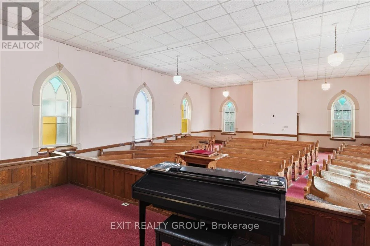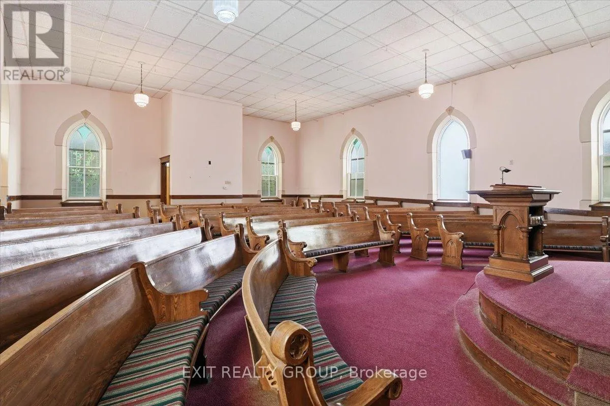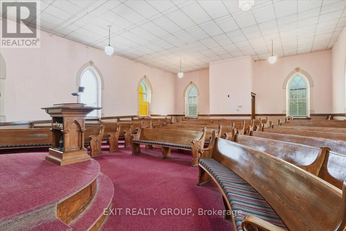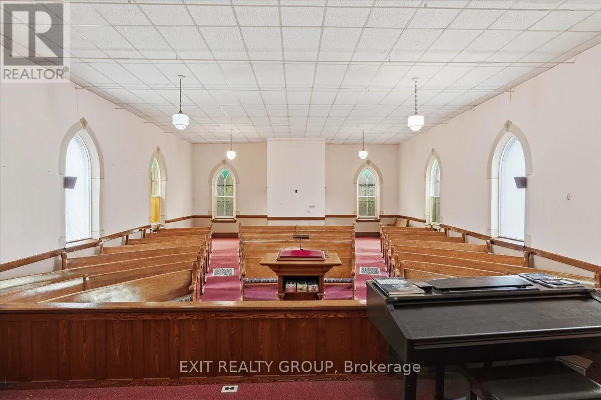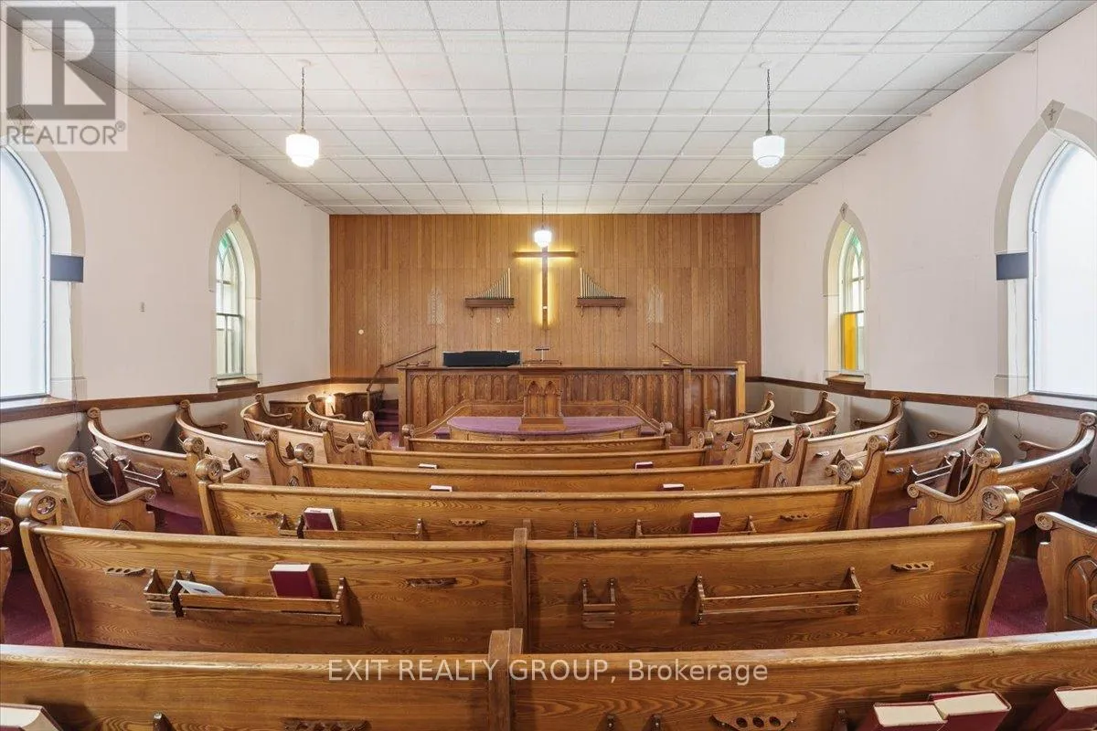 Cross Streets: County Rd. 33 & County Rd. 5. ** Directions: County Rd 33 To County Rd 5. Head west for 10kms. Church is on the right. A rare opportunity to reimagine a historic landmark in the heart of Stockdale and nestled in the heart of the charming Stockdale community, the former Stockdale United Church is now available for its next chapter. A well-maintained small country church offering exceptional adaptability for a range of institutional, cultural, or commercial uses. The main level features a theatre-style seating configuration oriented toward a raised stage, creating a natural setup for performances, presentations, lectures, or assemblies. High ceilings and an open-span design provide excellent sightlines and acoustics, while large windows deliver abundant natural light throughout the space. The functional layout includes a lower-level hall with a large kitchen, bathroom, large open space, storage, or potential office spaces. Zoned Community Facility (CF), the property allows for an extensive range of permitted uses, including but not limited to a nursery or private school, community centre, art gallery, boutique theatre, library, museum, assembly hall, or fraternal organization. Its central location and strong visibility make it ideally suited for public, cultural, or educational purposes. Bring your vision to this unique and inspiring property. Whether as a cultural hub, educational space, or community gathering place, the possibilities are exceptional. (id:27476)