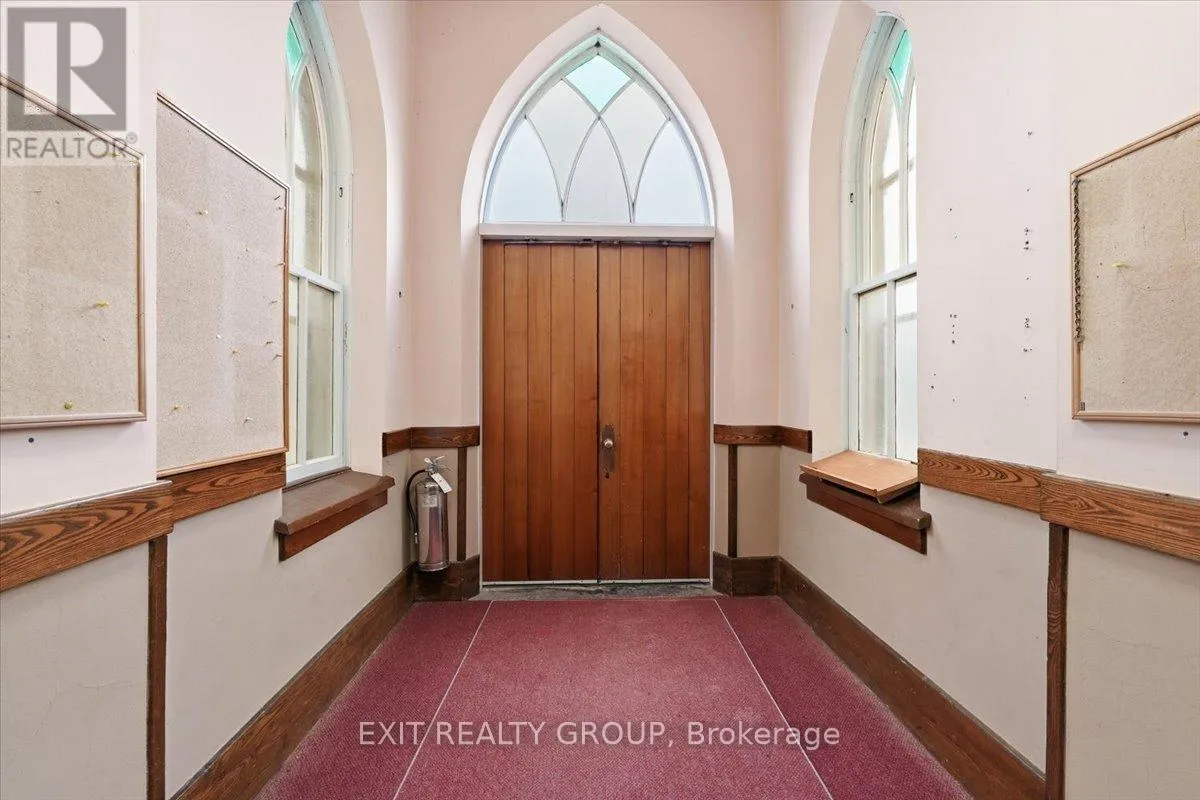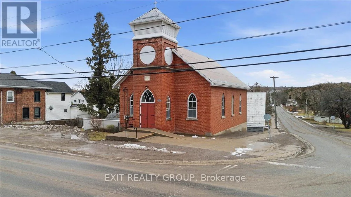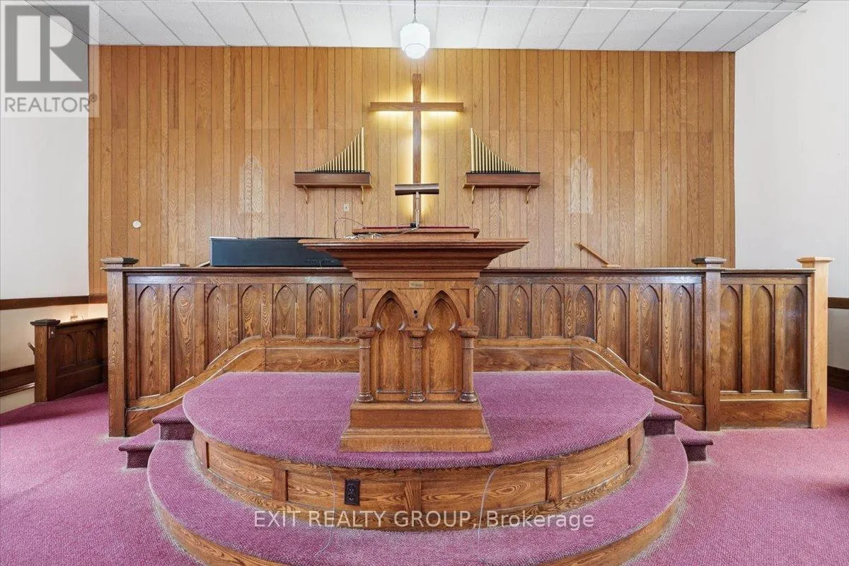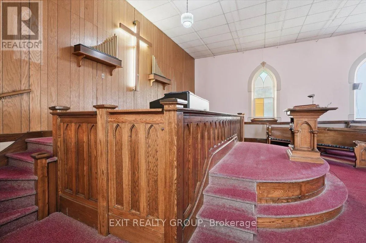 Cross Streets: County Rd. 33 & County Rd. 5. ** Directions: County Rd 33 To County Rd 5. Head west for 10kms. Church is on the right. A rare opportunity to reimagine a historic landmark in the heart of Stockdale and nestled in the heart of the charming Stockdale community, the former Stockdale United Church is now available for its next chapter. A well-maintained small country church offering exceptional adaptability for a range of institutional, cultural, or commercial uses. The main level features a theatre-style seating configuration oriented toward a raised stage, creating a natural setup for performances, presentations, lectures, or assemblies. High ceilings and an open-span design provide excellent sightlines and acoustics, while large windows deliver abundant natural light throughout the space. The functional layout includes a lower-level hall with a large kitchen, bathroom, large open space, storage, or potential office spaces. Zoned Community Facility (CF), the property allows for an extensive range of permitted uses, including but not limited to a nursery or private school, community centre, art gallery, boutique theatre, library, museum, assembly hall, or fraternal organization. Its central location and strong visibility make it ideally suited for public, cultural, or educational purposes. Bring your vision to this unique and inspiring property. Whether as a cultural hub, educational space, or community gathering place, the possibilities are exceptional. (id:27476)