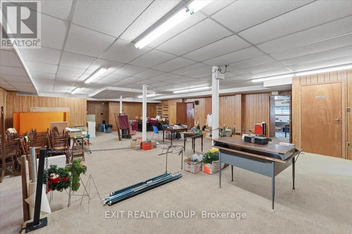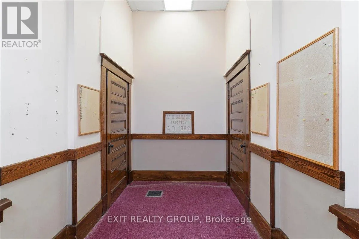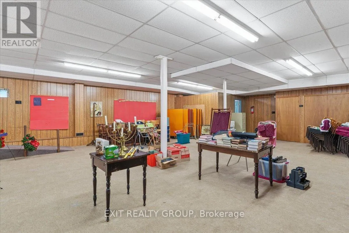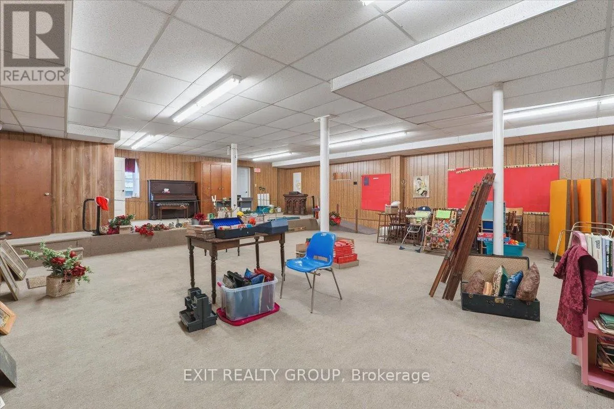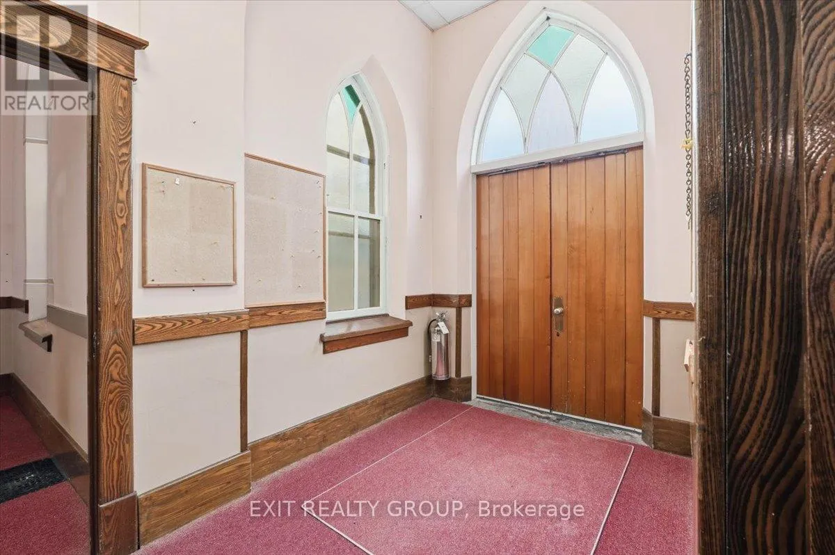 Cross Streets: County Rd. 33 & County Rd. 5. ** Directions: County Rd 33 To County Rd 5. Head west for 10kms. Church is on the right. A rare opportunity to reimagine a historic landmark in the heart of Stockdale and nestled in the heart of the charming Stockdale community, the former Stockdale United Church is now available for its next chapter. A well-maintained small country church offering exceptional adaptability for a range of institutional, cultural, or commercial uses. The main level features a theatre-style seating configuration oriented toward a raised stage, creating a natural setup for performances, presentations, lectures, or assemblies. High ceilings and an open-span design provide excellent sightlines and acoustics, while large windows deliver abundant natural light throughout the space. The functional layout includes a lower-level hall with a large kitchen, bathroom, large open space, storage, or potential office spaces. Zoned Community Facility (CF), the property allows for an extensive range of permitted uses, including but not limited to a nursery or private school, community centre, art gallery, boutique theatre, library, museum, assembly hall, or fraternal organization. Its central location and strong visibility make it ideally suited for public, cultural, or educational purposes. Bring your vision to this unique and inspiring property. Whether as a cultural hub, educational space, or community gathering place, the possibilities are exceptional. (id:27476)