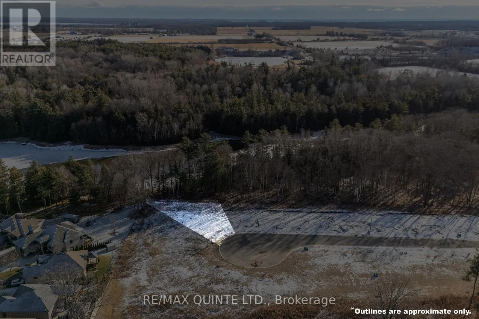 Cross Streets: Telephone Road & Exeter Court. ** Directions: Telephone Road to Exeter Court. Located in Exeter Court, Quinte West's most exclusive new subdivision, this 2-storey, 3-bedroom residence offers 2.5 baths and a deliberate, turn-key build experience. Situated on a premium pie-shaped lot backing onto Lake Tremur, the property prioritizes both privacy and commuting efficiency. The main level features a soaring two-storey living area with south-east exposure, a cultured stone fireplace, and a custom-designed kitchen equipped with a walk-in pantry and quartz-topped island. The main-floor primary suite is a technical highlight, featuring a 14'x16' footprint, direct deck access, and an integrated wet-room ensuite with a soaker tub and double vanity. The upper level is optimized for privacy, housing two bedrooms, a full bath, and a dedicated secondary lounge with a private balcony. Technical features include municipal water/sewer, FIBE internet, and high-efficiency systems. Pricing includes a custom fully finished walk-out lower level with a 4th bedroom, gym, and additional recreation space. (id:27476)