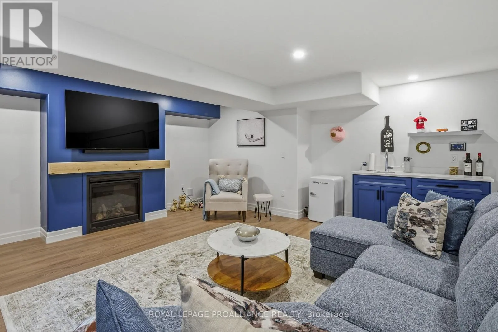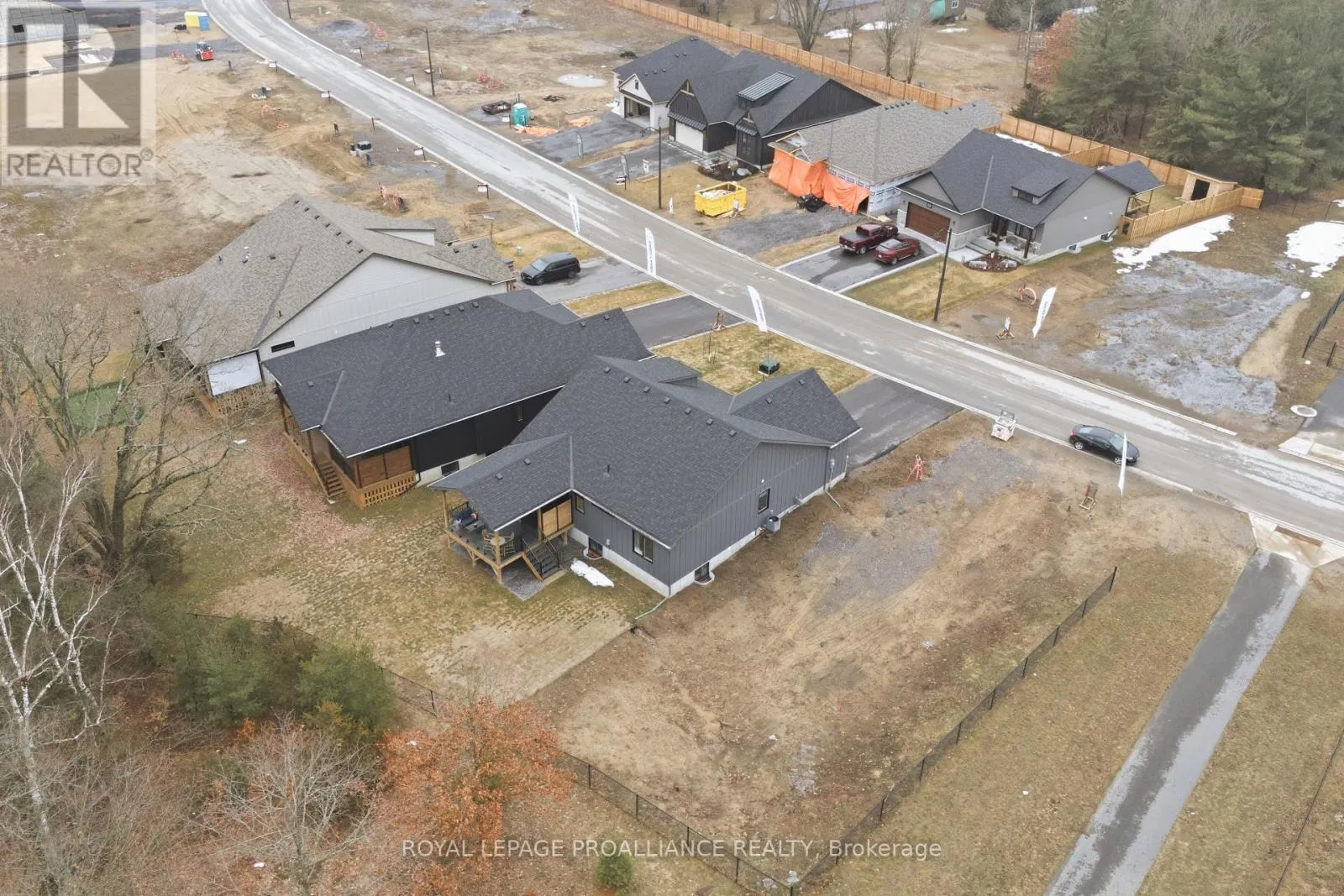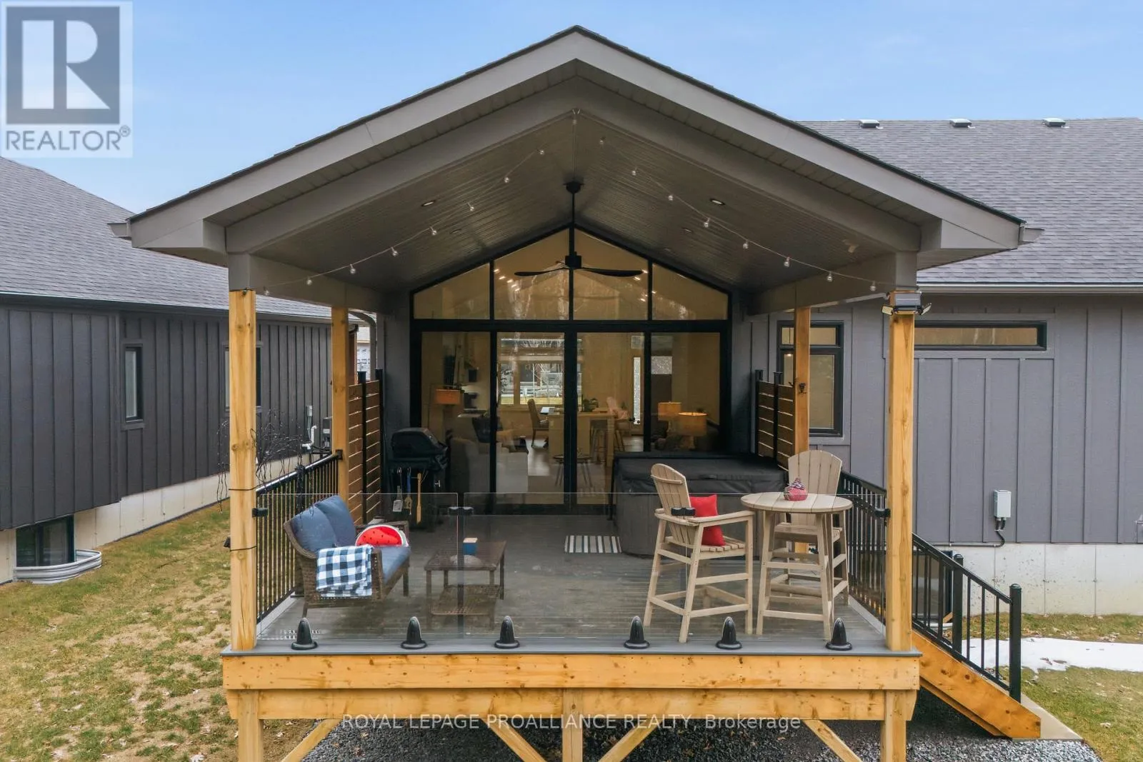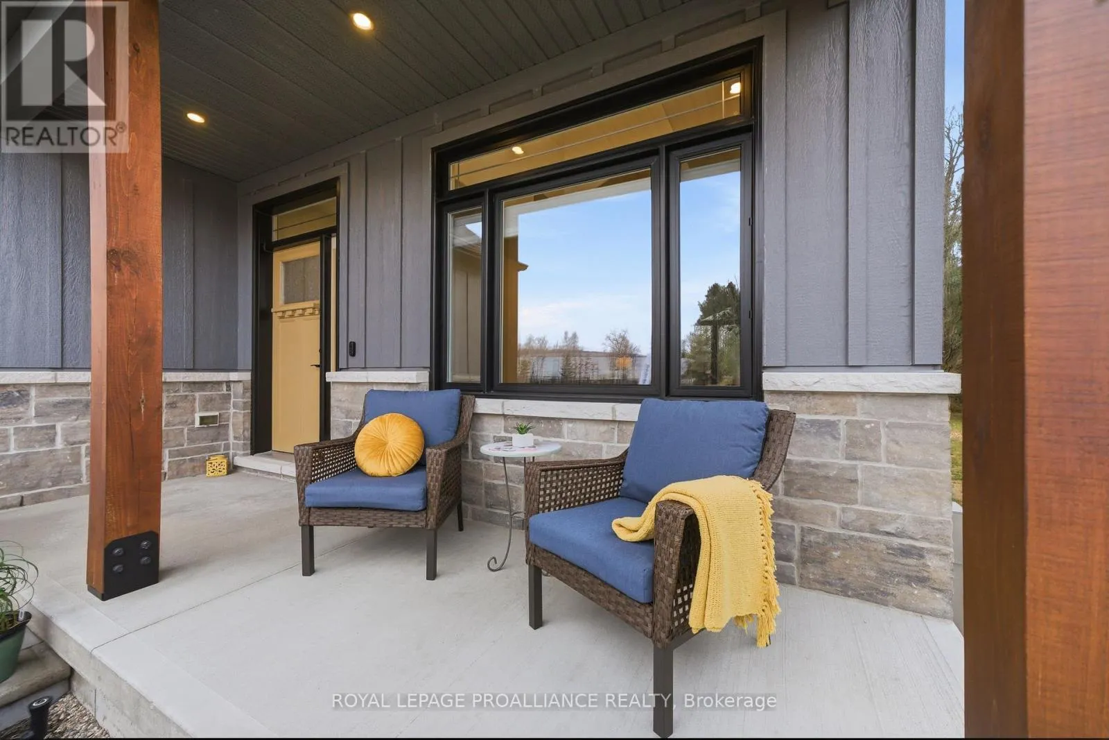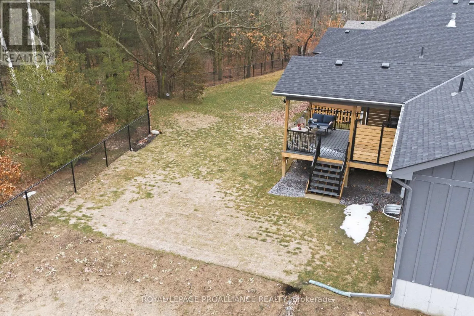 Telephone Road & Deerview Drive Welcome to 48 Deerview Drive in Quinte West-where modern comfort meets a peaceful, nature-inspired setting just minutes from the 401. Perfectly positioned in a sought-after neighbourhood west of Trenton, this newer home offers full city services, including Bell Fibe, while delivering a rare sense of privacy with protected green space behind-no rear neighbours, just trees and tranquility. Step inside and you're immediately drawn to the stunning wall of windows that frames the backyard like artwork, filling the home with natural light. The open-concept main floor features vaulted ceilings, upgraded flooring, and a warm, inviting living space anchored by a gas fireplace. The kitchen and living area flow seamlessly, ideal for both everyday living and entertaining. Designed with comfort in mind, the home includes a heated ensuite bathroom floor, a main floor office (or optional second bedroom), and a spacious primary retreat. Downstairs, the fully finished basement expands your living space with a large rec room, second gas fireplace, additional bedroom, and full bathroom-perfect for guests or extended family visits. Outdoor living is just as impressive, with composite decking, sleek glass railings with built-in blue lighting, a hot tub, and a beautifully landscaped yard featuring an in-ground sprinkler system in the front yard. This is a home for those looking to simplify without compromise-offering style, function, and a peaceful backdrop to enjoy for years to come. (id:27476)