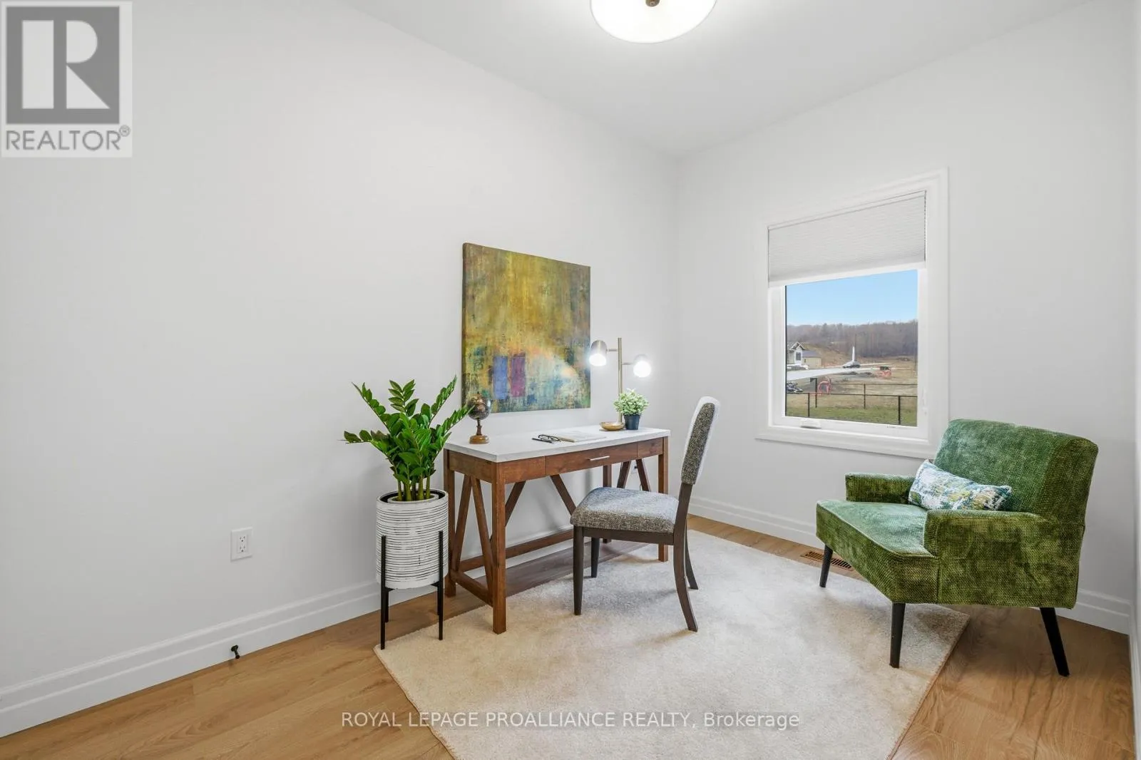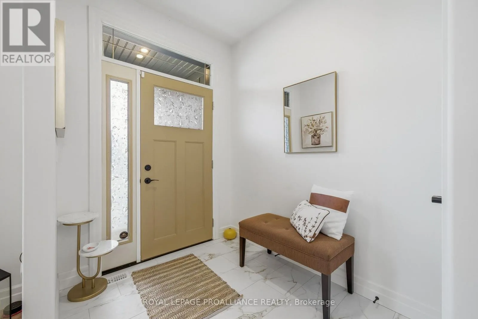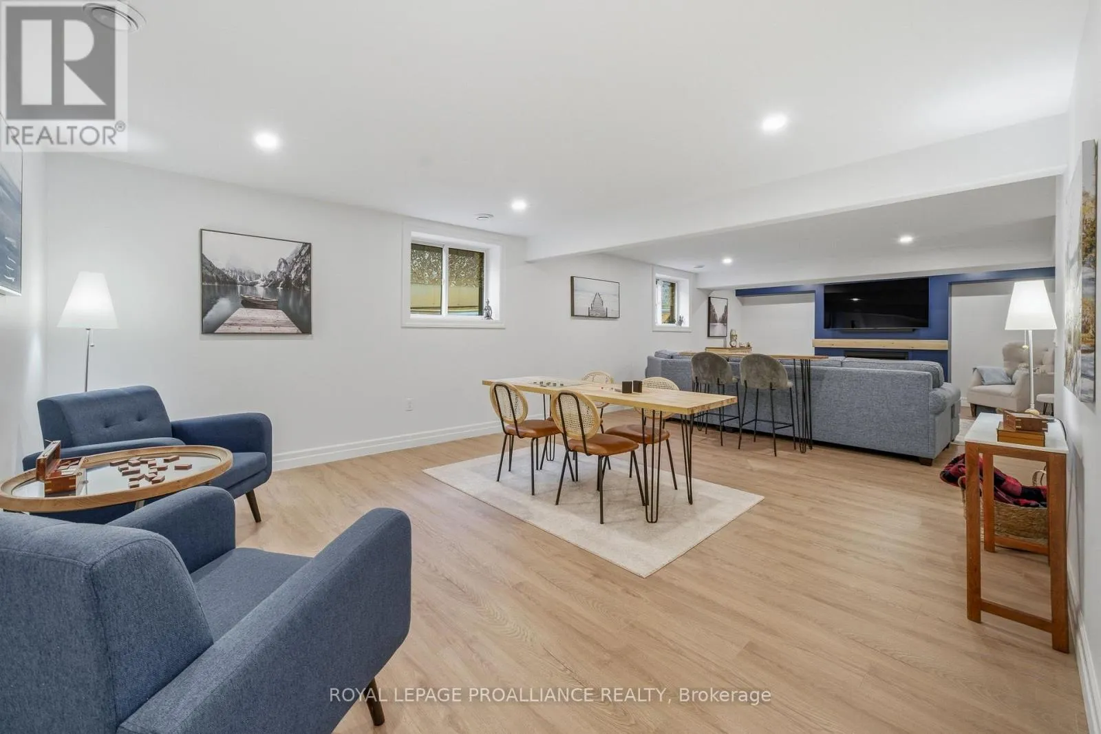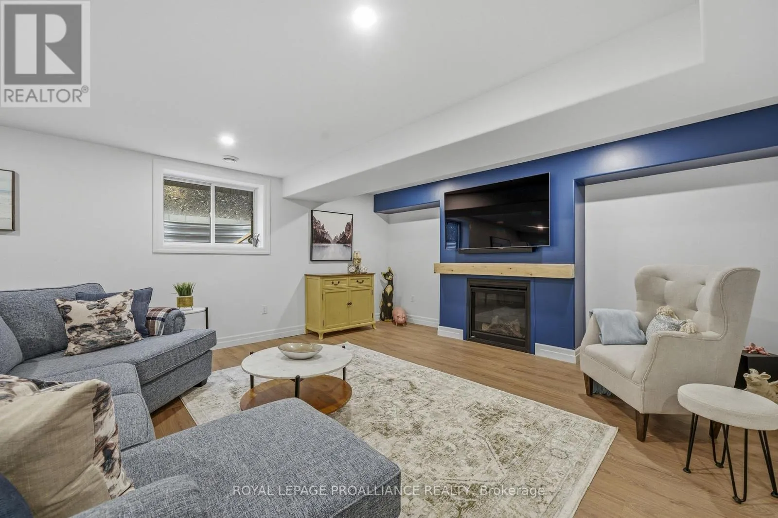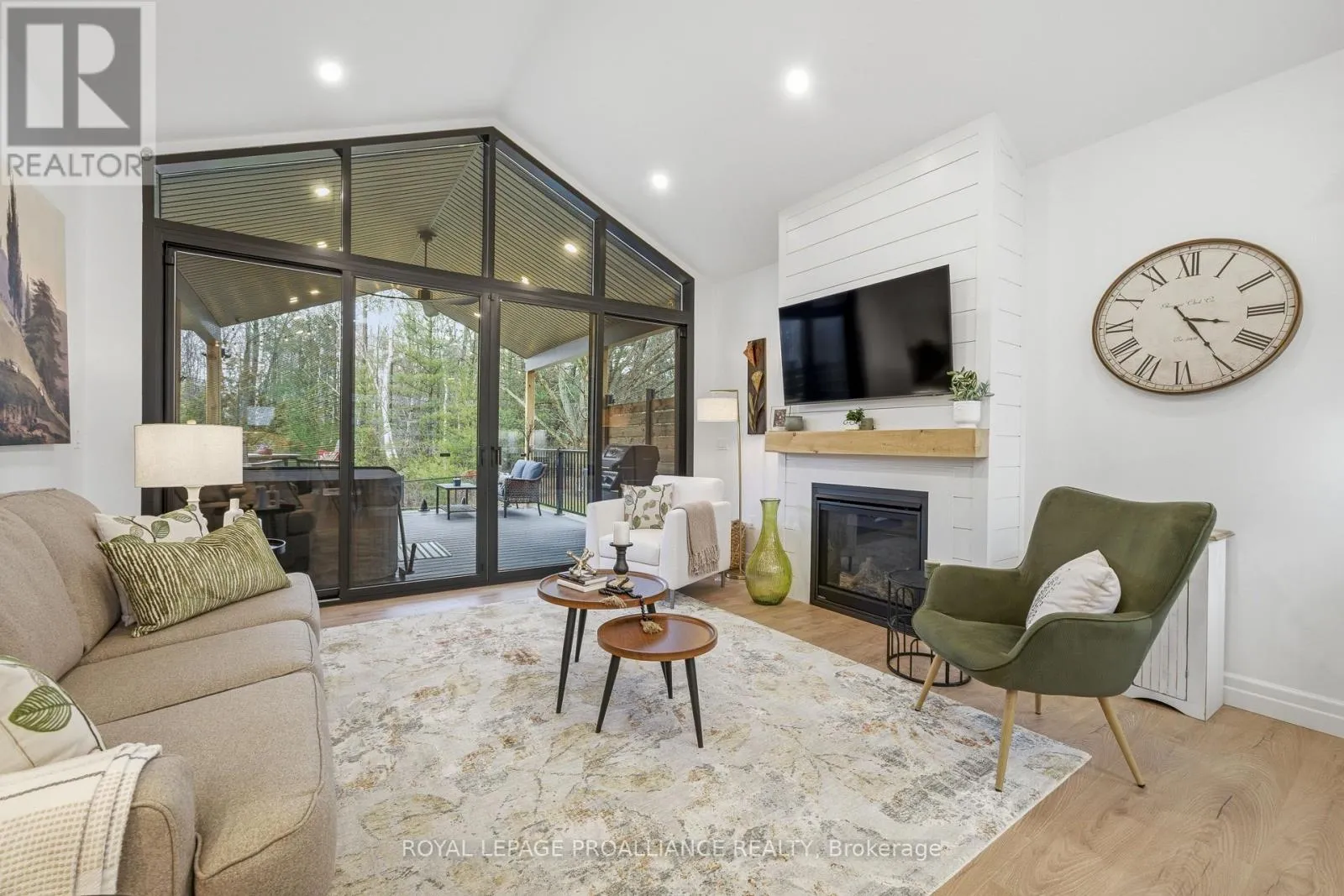 Telephone Road & Deerview Drive Welcome to 48 Deerview Drive in Quinte West-where modern comfort meets a peaceful, nature-inspired setting just minutes from the 401. Perfectly positioned in a sought-after neighbourhood west of Trenton, this newer home offers full city services, including Bell Fibe, while delivering a rare sense of privacy with protected green space behind-no rear neighbours, just trees and tranquility. Step inside and you're immediately drawn to the stunning wall of windows that frames the backyard like artwork, filling the home with natural light. The open-concept main floor features vaulted ceilings, upgraded flooring, and a warm, inviting living space anchored by a gas fireplace. The kitchen and living area flow seamlessly, ideal for both everyday living and entertaining. Designed with comfort in mind, the home includes a heated ensuite bathroom floor, a main floor office (or optional second bedroom), and a spacious primary retreat. Downstairs, the fully finished basement expands your living space with a large rec room, second gas fireplace, additional bedroom, and full bathroom-perfect for guests or extended family visits. Outdoor living is just as impressive, with composite decking, sleek glass railings with built-in blue lighting, a hot tub, and a beautifully landscaped yard featuring an in-ground sprinkler system in the front yard. This is a home for those looking to simplify without compromise-offering style, function, and a peaceful backdrop to enjoy for years to come. (id:27476)