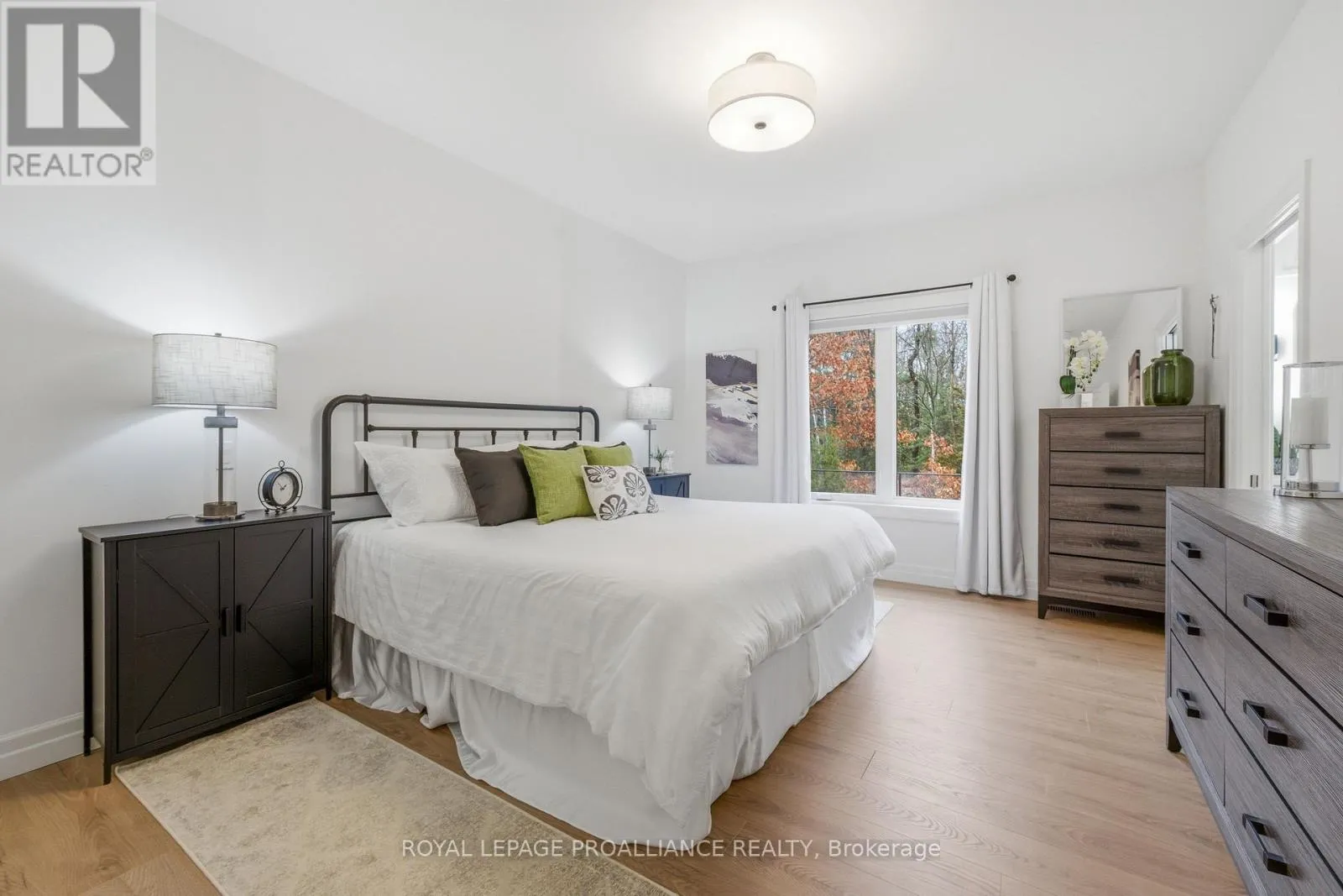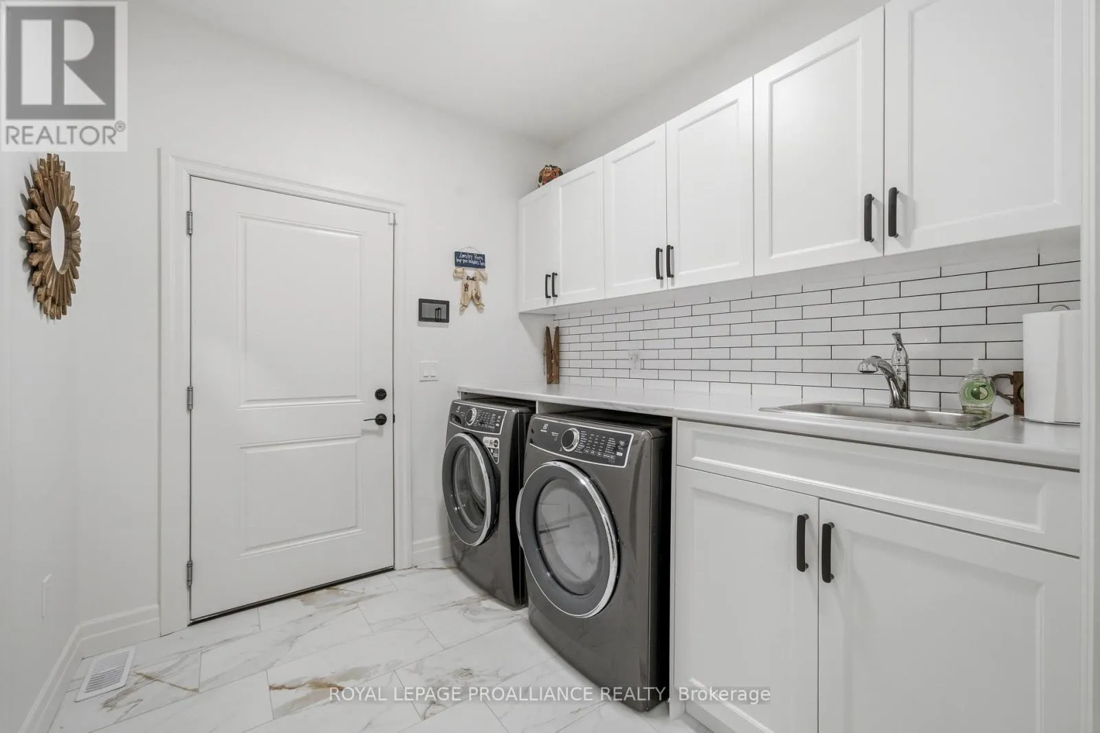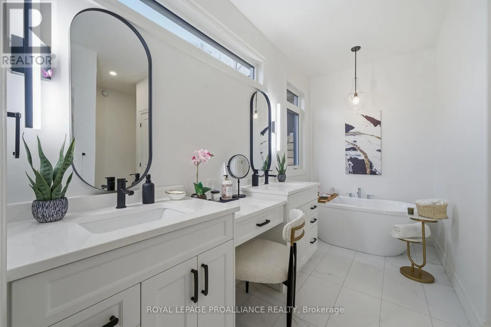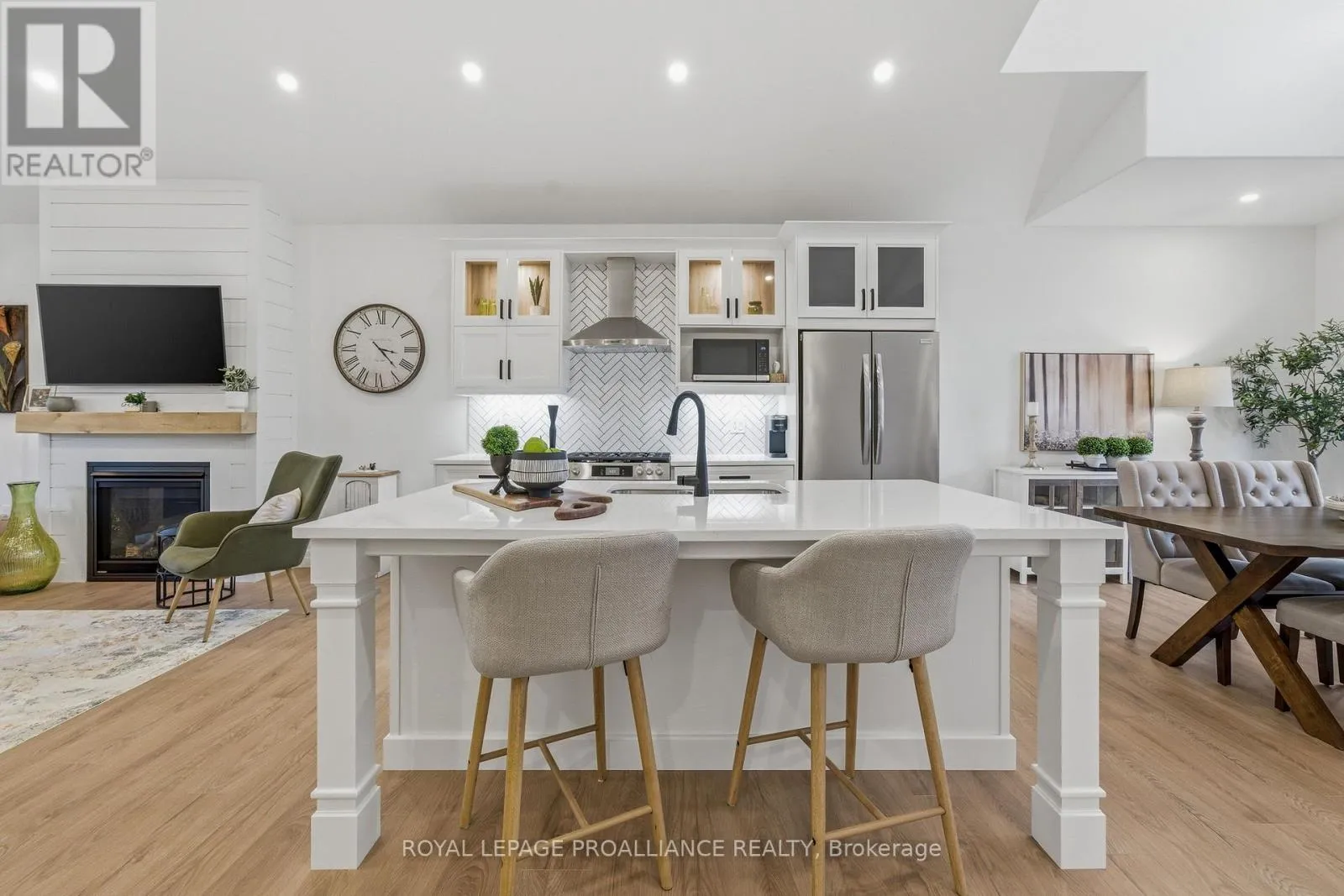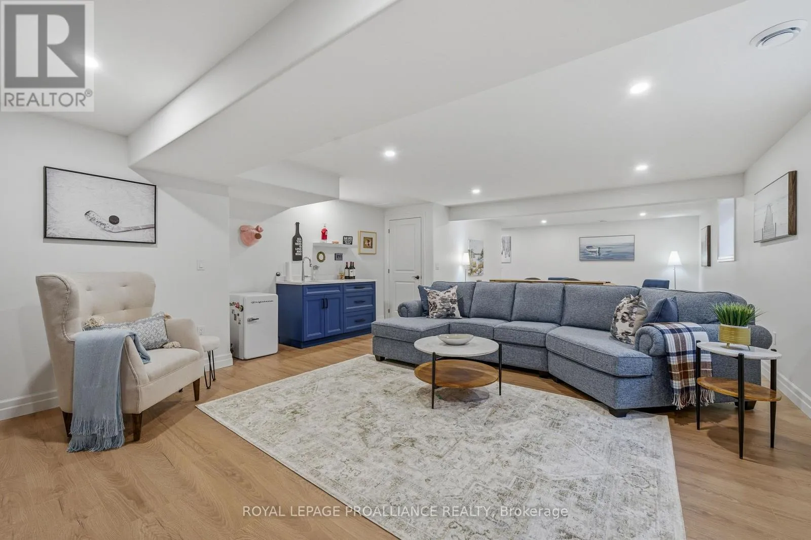 Telephone Road & Deerview Drive Welcome to 48 Deerview Drive in Quinte West-where modern comfort meets a peaceful, nature-inspired setting just minutes from the 401. Perfectly positioned in a sought-after neighbourhood west of Trenton, this newer home offers full city services, including Bell Fibe, while delivering a rare sense of privacy with protected green space behind-no rear neighbours, just trees and tranquility. Step inside and you're immediately drawn to the stunning wall of windows that frames the backyard like artwork, filling the home with natural light. The open-concept main floor features vaulted ceilings, upgraded flooring, and a warm, inviting living space anchored by a gas fireplace. The kitchen and living area flow seamlessly, ideal for both everyday living and entertaining. Designed with comfort in mind, the home includes a heated ensuite bathroom floor, a main floor office (or optional second bedroom), and a spacious primary retreat. Downstairs, the fully finished basement expands your living space with a large rec room, second gas fireplace, additional bedroom, and full bathroom-perfect for guests or extended family visits. Outdoor living is just as impressive, with composite decking, sleek glass railings with built-in blue lighting, a hot tub, and a beautifully landscaped yard featuring an in-ground sprinkler system in the front yard. This is a home for those looking to simplify without compromise-offering style, function, and a peaceful backdrop to enjoy for years to come. (id:27476)