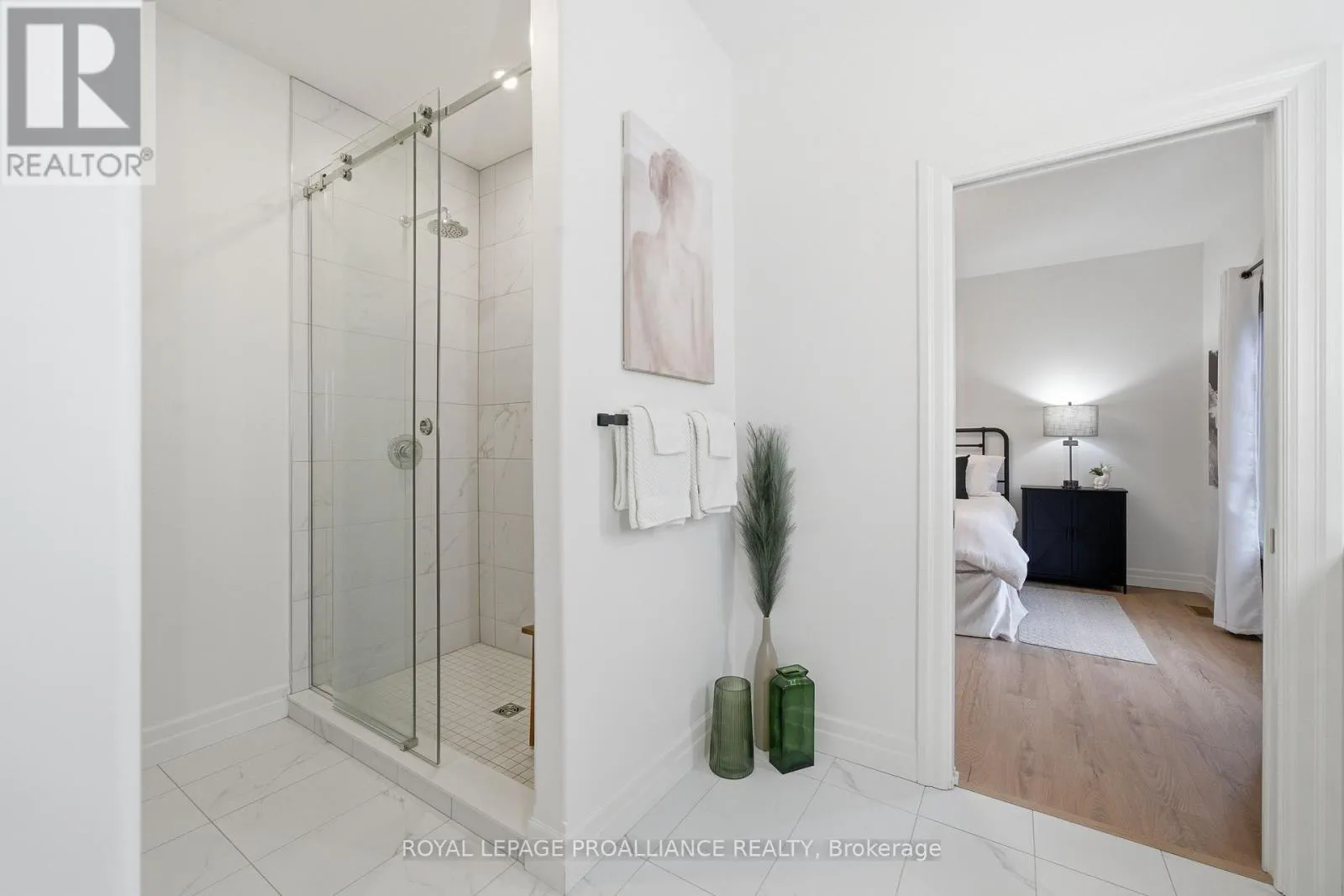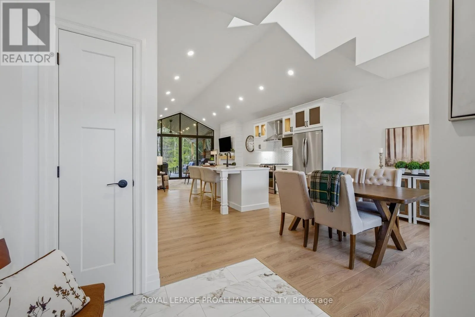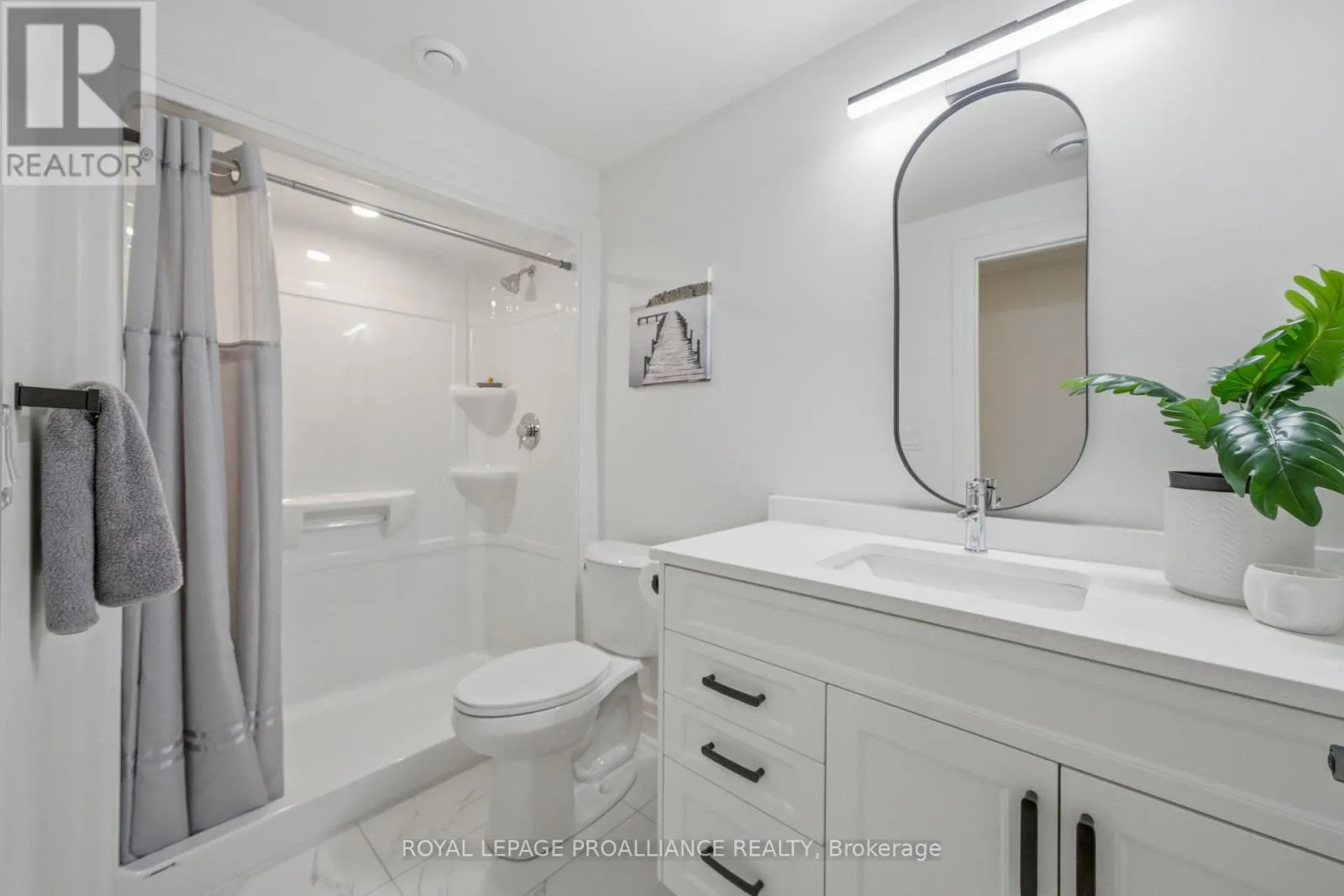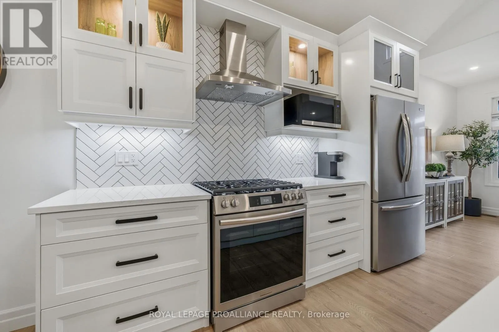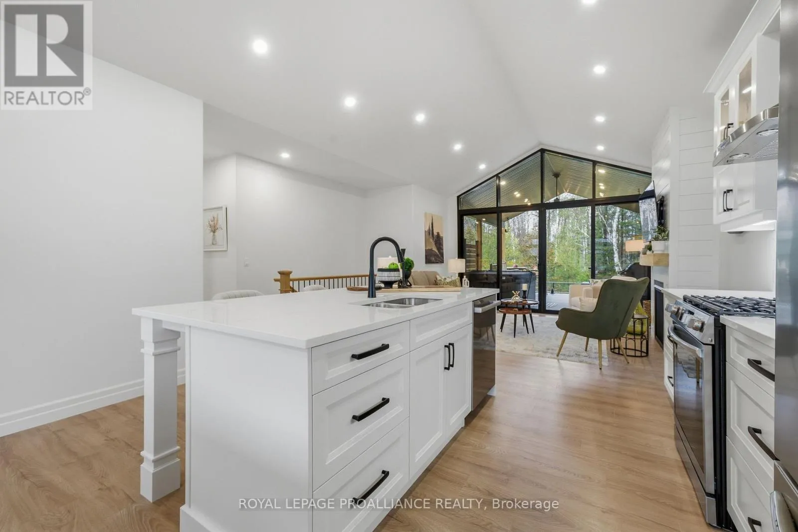 Telephone Road & Deerview Drive Welcome to 48 Deerview Drive in Quinte West-where modern comfort meets a peaceful, nature-inspired setting just minutes from the 401. Perfectly positioned in a sought-after neighbourhood west of Trenton, this newer home offers full city services, including Bell Fibe, while delivering a rare sense of privacy with protected green space behind-no rear neighbours, just trees and tranquility. Step inside and you're immediately drawn to the stunning wall of windows that frames the backyard like artwork, filling the home with natural light. The open-concept main floor features vaulted ceilings, upgraded flooring, and a warm, inviting living space anchored by a gas fireplace. The kitchen and living area flow seamlessly, ideal for both everyday living and entertaining. Designed with comfort in mind, the home includes a heated ensuite bathroom floor, a main floor office (or optional second bedroom), and a spacious primary retreat. Downstairs, the fully finished basement expands your living space with a large rec room, second gas fireplace, additional bedroom, and full bathroom-perfect for guests or extended family visits. Outdoor living is just as impressive, with composite decking, sleek glass railings with built-in blue lighting, a hot tub, and a beautifully landscaped yard featuring an in-ground sprinkler system in the front yard. This is a home for those looking to simplify without compromise-offering style, function, and a peaceful backdrop to enjoy for years to come. (id:27476)