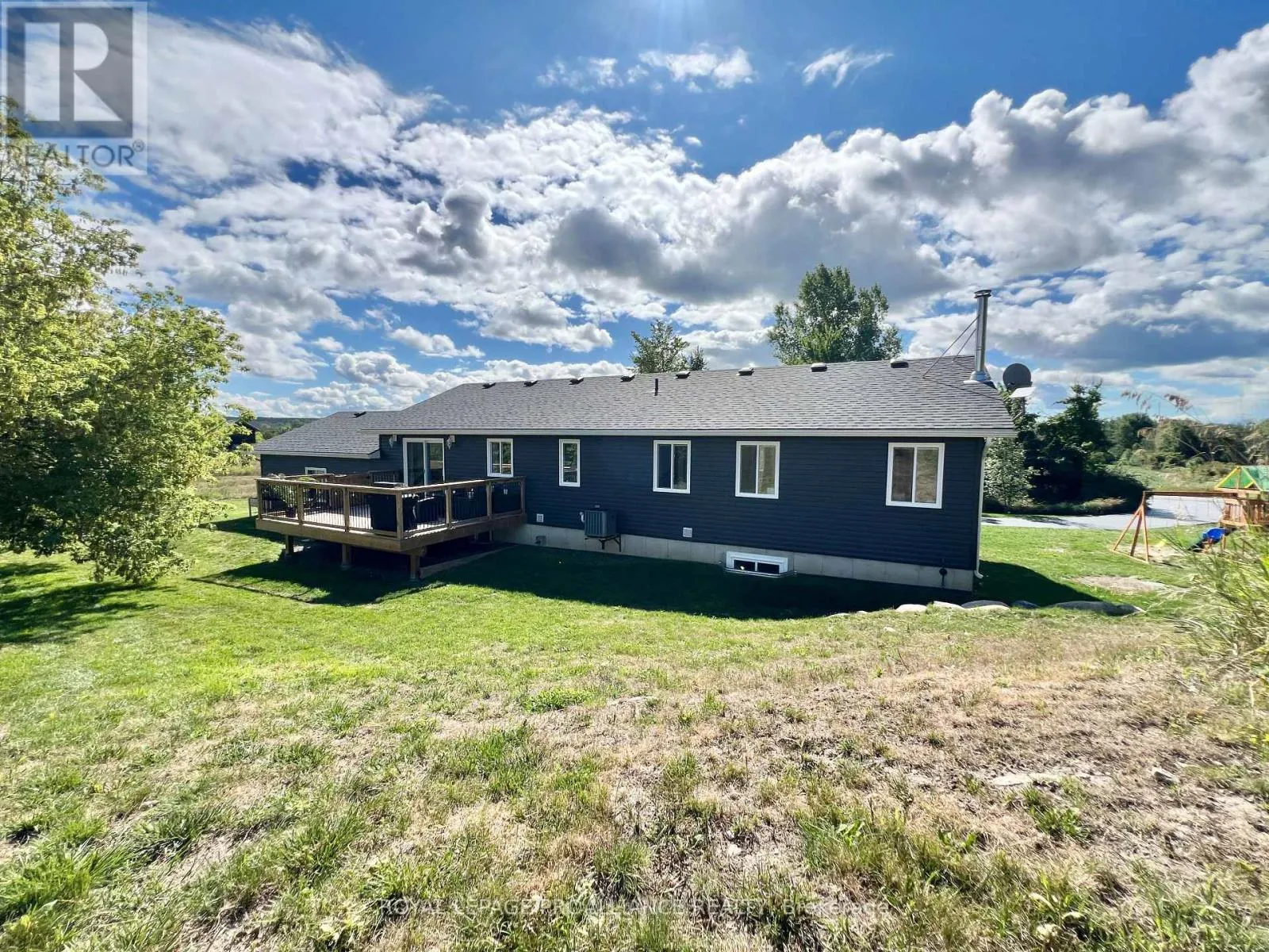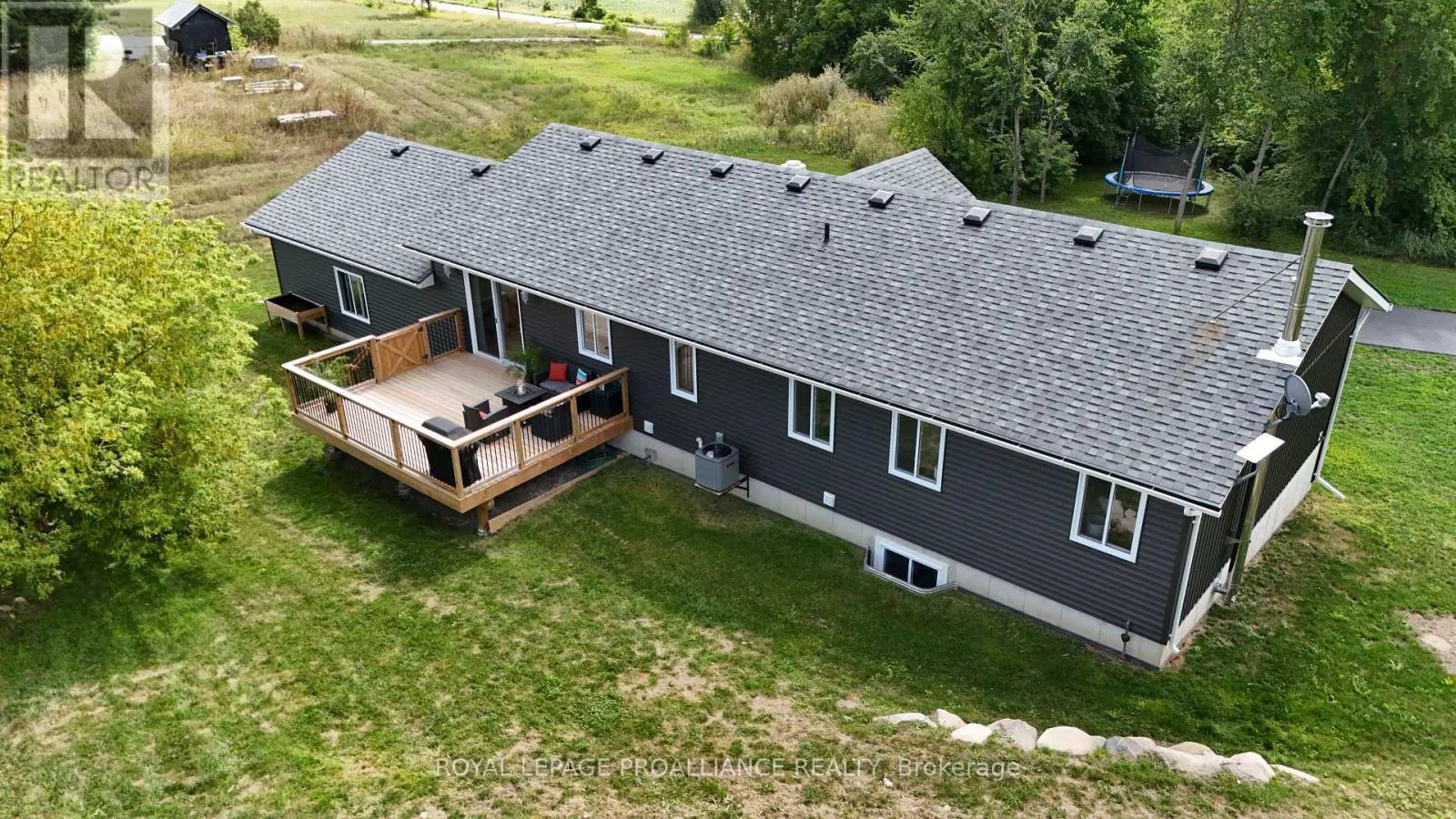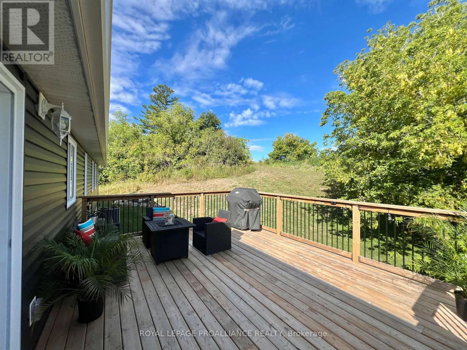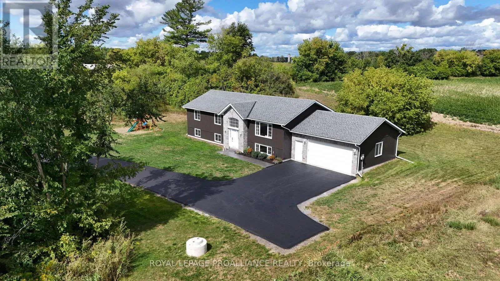 Cross Streets: Free Rd/Mapleview Rd. ** Directions: Hwy 33 to Cty Rd 5, West to Will Hohnson Rd, North on Mapleview Rd to Free Rd. Nestled on a scenic 1-acre lot just outside Frankford, this 2023 custom-built bungalow is sure to impress. Surrounded by rolling hills, open fields, and fresh country air, the setting offers exceptional privacy and a peaceful backdrop where mornings begin with sunrise views and evenings end beneath star-filled skies. This property offers convenient access to CFB Trenton. Stockdale Public School (JK-8) is also just minutes away, making school drop-offs a breeze. The exterior showcases stone accents, a paved driveway, stamped concrete walkway, and an oversized insulated double car garage with inside entry. Inside, the 1,630 sq ft layout features soaring vaulted ceilings and large windows that fill the home with natural light. The kitchen stands out with quartz countertops, a centre island, and a walkout to the rear deck, ideal for entertaining. The main floor includes three bedrooms and two full baths, highlighted by a spacious primary suite with a walk-in closet and a luxurious ensuite with double vanity and custom tile shower. Soft, neutral finishes flow throughout, making it move-in ready. The basement is largely finished, offering a 4-piece bath, bedroom, and laundry area, while the rec room-complete with a wood stove-remains an open canvas ready for your personal touch, whether that's a kitchen for an in-law suite, wet bar, home theatre, or cozy retreat. Enjoy year-round recreation with nearby golf, skiing, and trails, plus excellent boating and fishing on the Trent River just minutes away at German's Landing public boat launch. (id:27476)