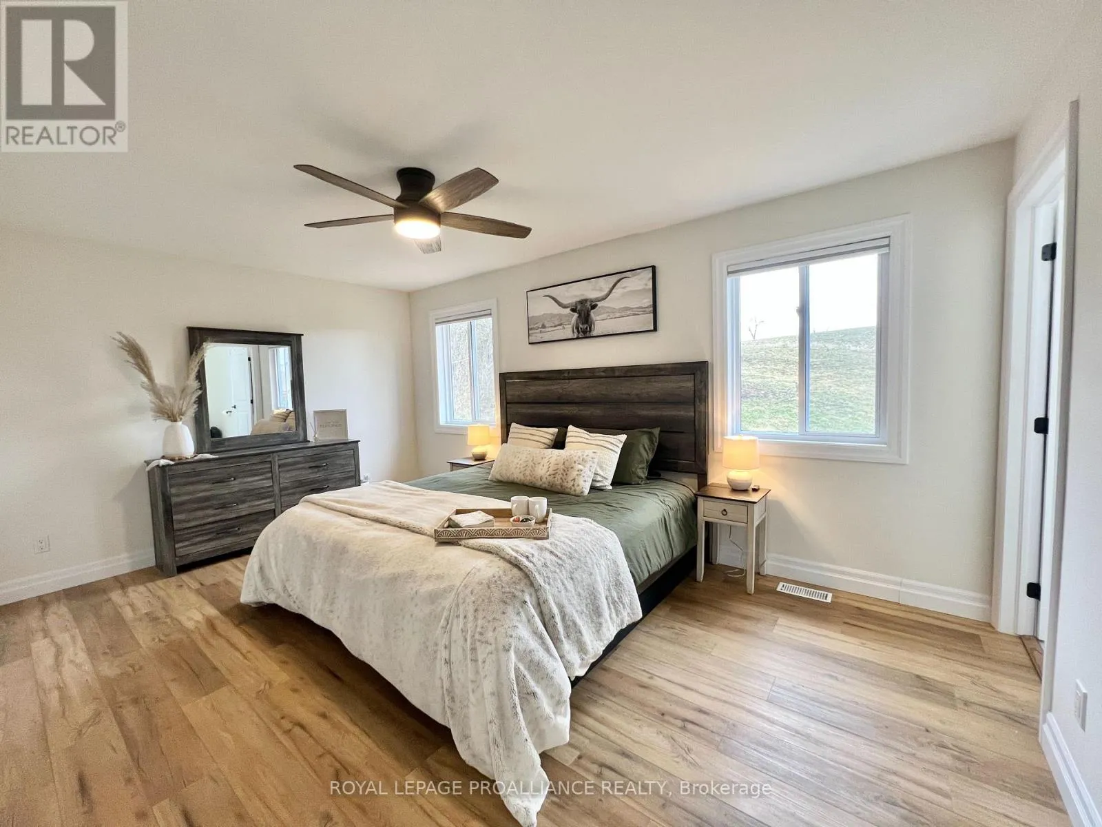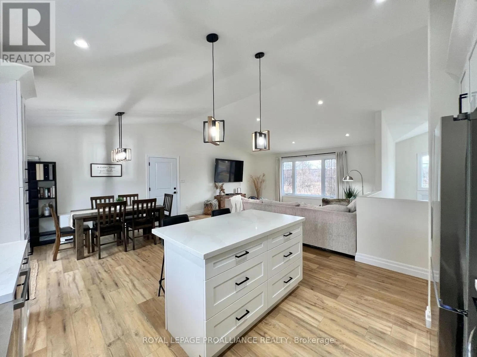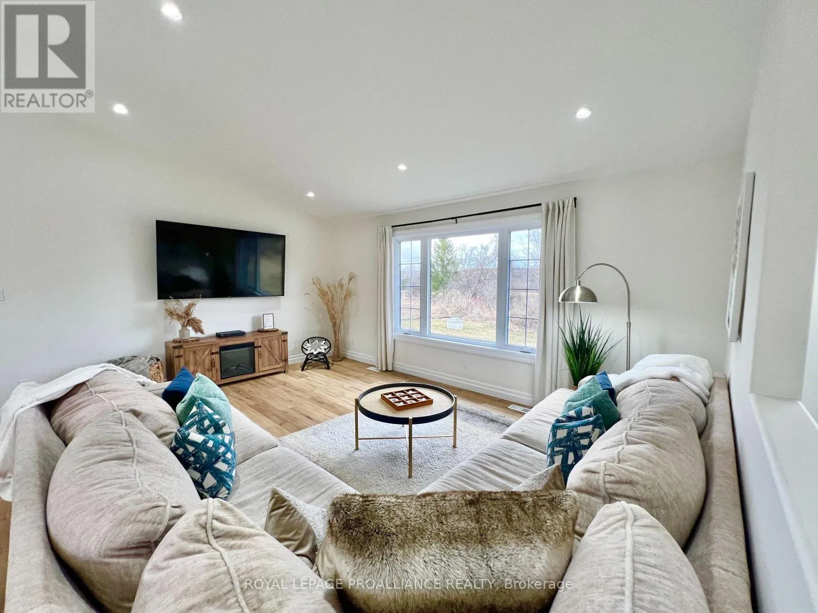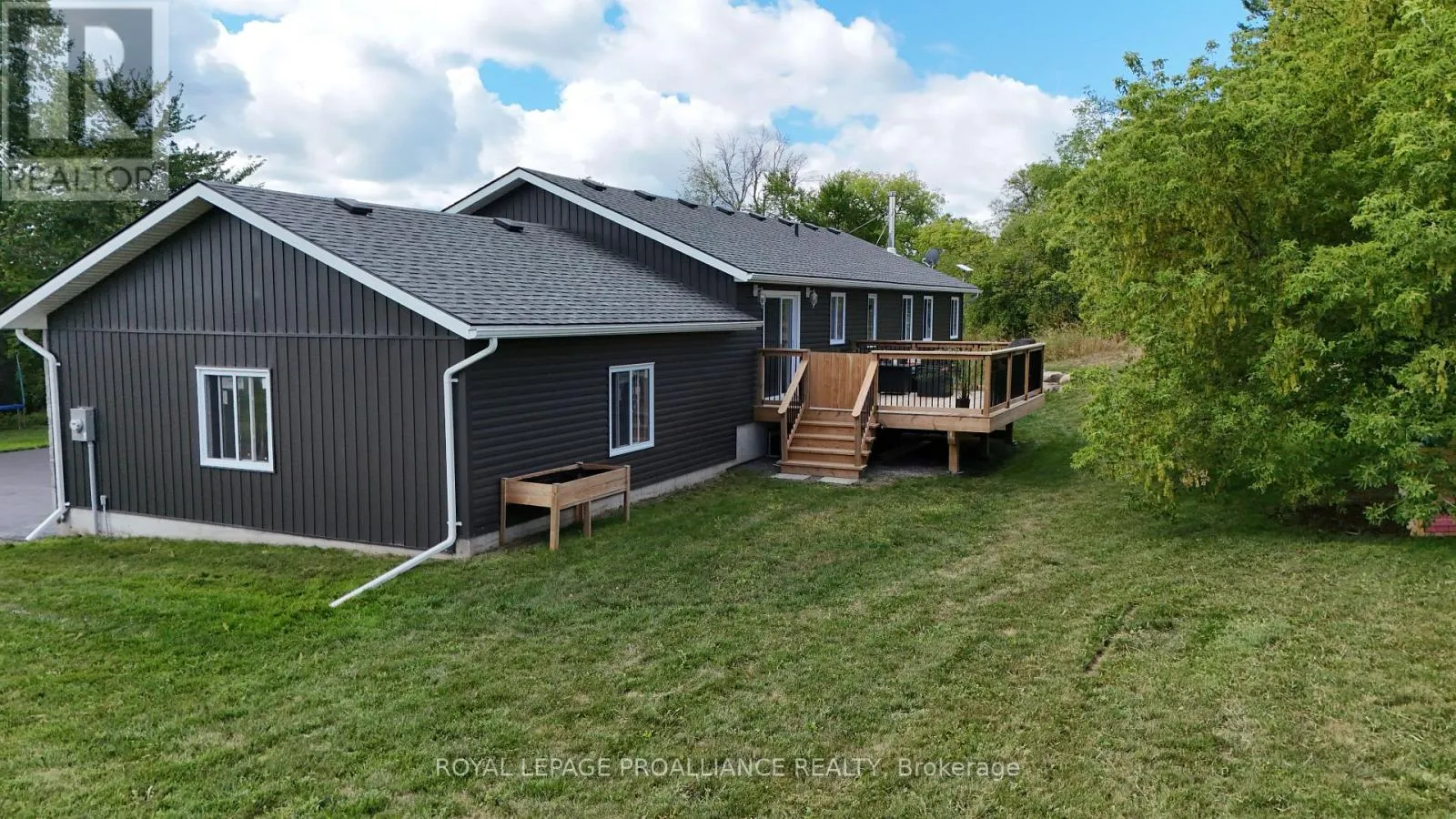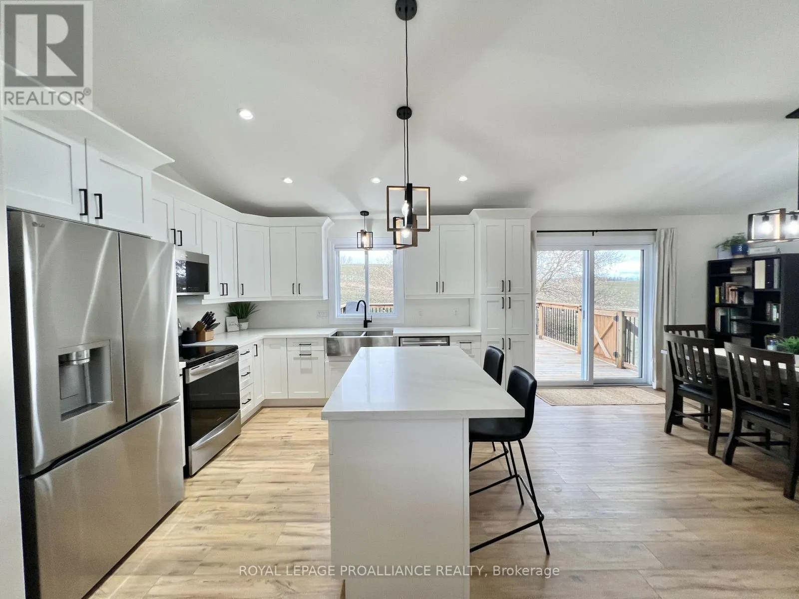 Cross Streets: Free Rd/Mapleview Rd. ** Directions: Hwy 33 to Cty Rd 5, West to Will Hohnson Rd, North on Mapleview Rd to Free Rd. Nestled on a scenic 1-acre lot just outside Frankford, this 2023 custom-built bungalow is sure to impress. Surrounded by rolling hills, open fields, and fresh country air, the setting offers exceptional privacy and a peaceful backdrop where mornings begin with sunrise views and evenings end beneath star-filled skies. This property offers convenient access to CFB Trenton. Stockdale Public School (JK-8) is also just minutes away, making school drop-offs a breeze. The exterior showcases stone accents, a paved driveway, stamped concrete walkway, and an oversized insulated double car garage with inside entry. Inside, the 1,630 sq ft layout features soaring vaulted ceilings and large windows that fill the home with natural light. The kitchen stands out with quartz countertops, a centre island, and a walkout to the rear deck, ideal for entertaining. The main floor includes three bedrooms and two full baths, highlighted by a spacious primary suite with a walk-in closet and a luxurious ensuite with double vanity and custom tile shower. Soft, neutral finishes flow throughout, making it move-in ready. The basement is largely finished, offering a 4-piece bath, bedroom, and laundry area, while the rec room-complete with a wood stove-remains an open canvas ready for your personal touch, whether that's a kitchen for an in-law suite, wet bar, home theatre, or cozy retreat. Enjoy year-round recreation with nearby golf, skiing, and trails, plus excellent boating and fishing on the Trent River just minutes away at German's Landing public boat launch. (id:27476)