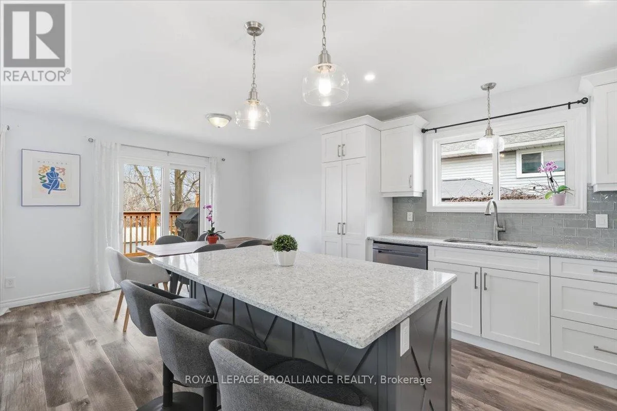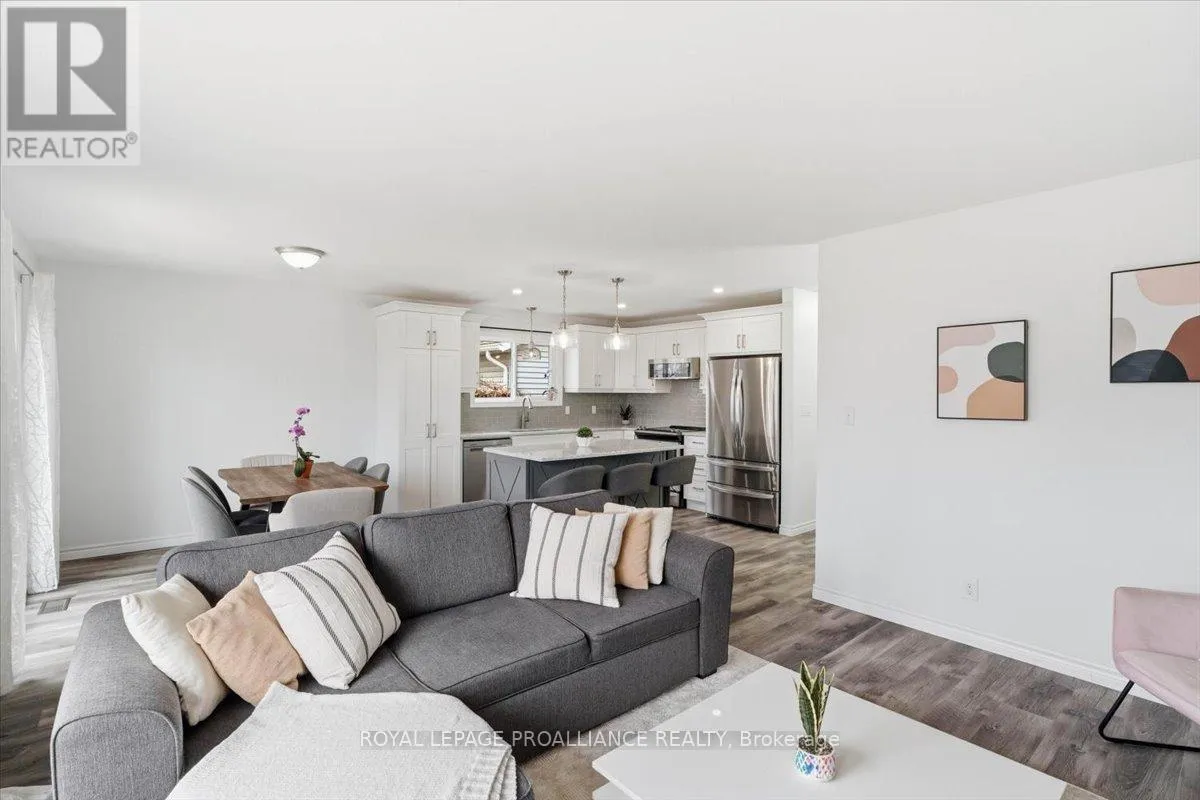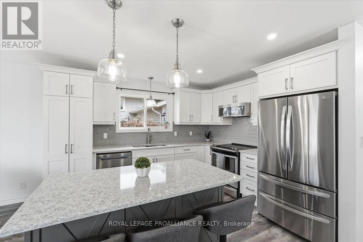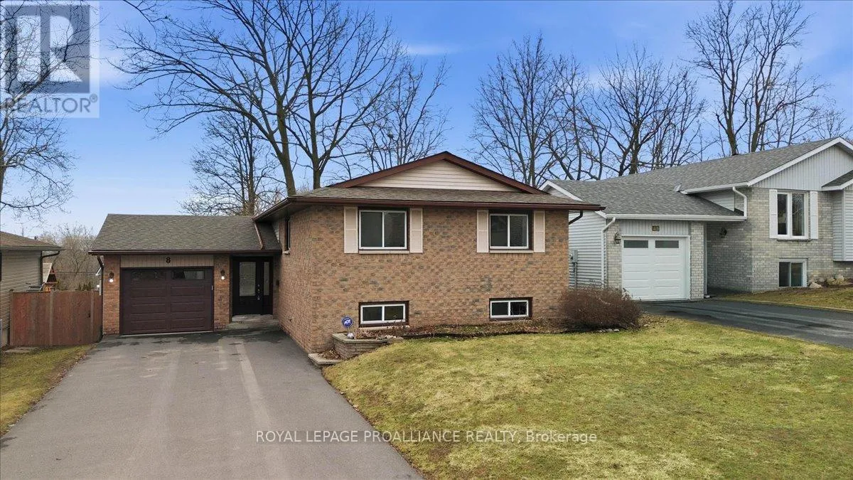 North Murray Street to Reid Street Welcome to 8 Loraine Ave in Quinte West, a spacious and well-maintained raised bungalow tucked away on a quiet, family-friendly street. This 4 bedroom, 2 bath home offers a functional layout with room for everyone. Step into the large, welcoming foyer with convenient access to the attached single car garage. The updated kitchen features an open-concept design, perfect for everyday living and entertaining. The dining room flows seamlessly onto a generous upper deck and steps down to a lower covered deck, offering additional outdoor living space rain or shine. The main level includes three comfortable bedrooms and a full 4-piece bathroom. Downstairs, the fully finished basement boasts a spacious rec room with a cozy gas fireplace, a fourth bedroom and a versatile den or home office. You'll also find a 3-piece bathroom, ideal for guests, teens, or working from home. A great opportunity to own a move-in ready home in a desirable location, close to amenities, schools and all that Quinte West has to offer. (id:27476)