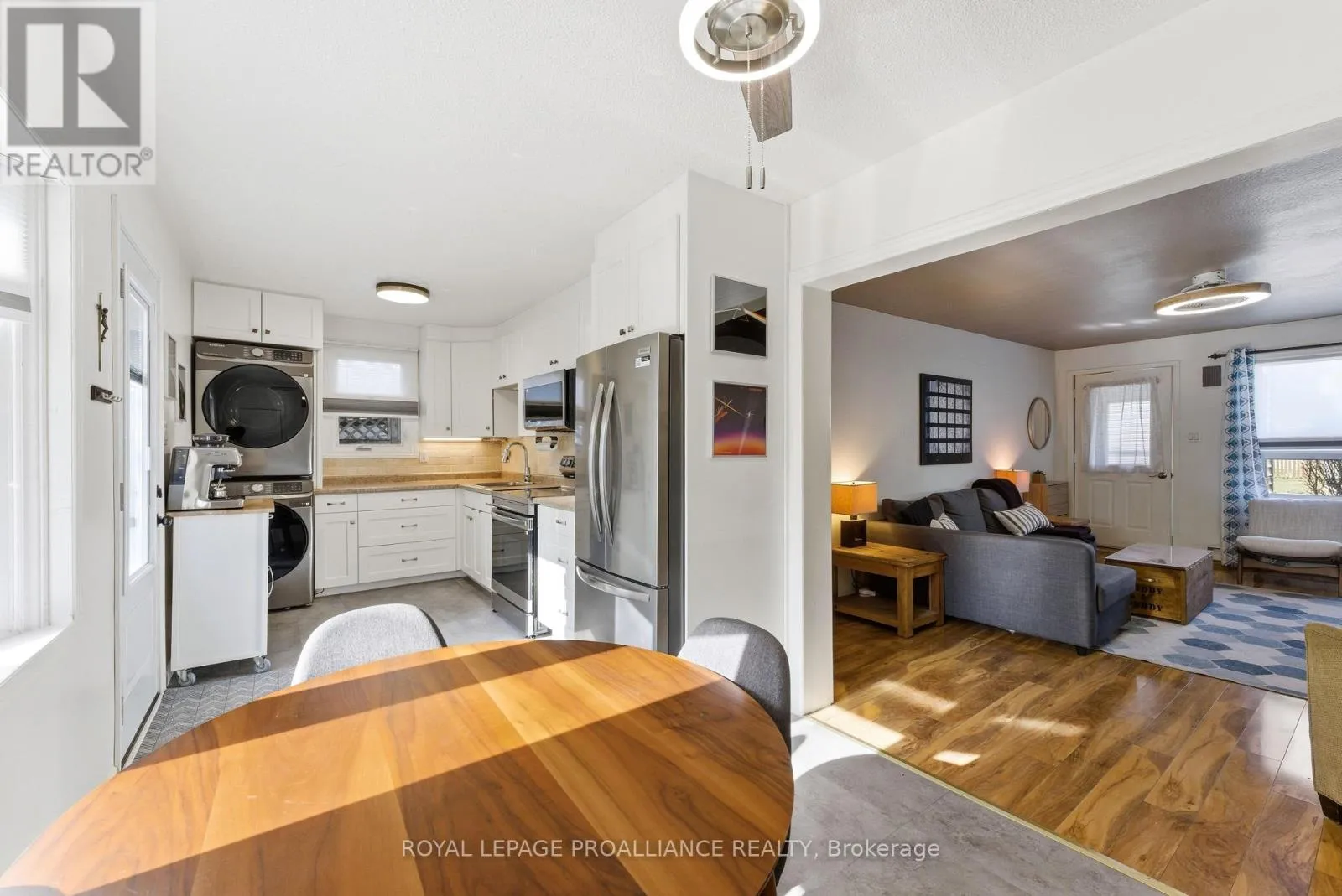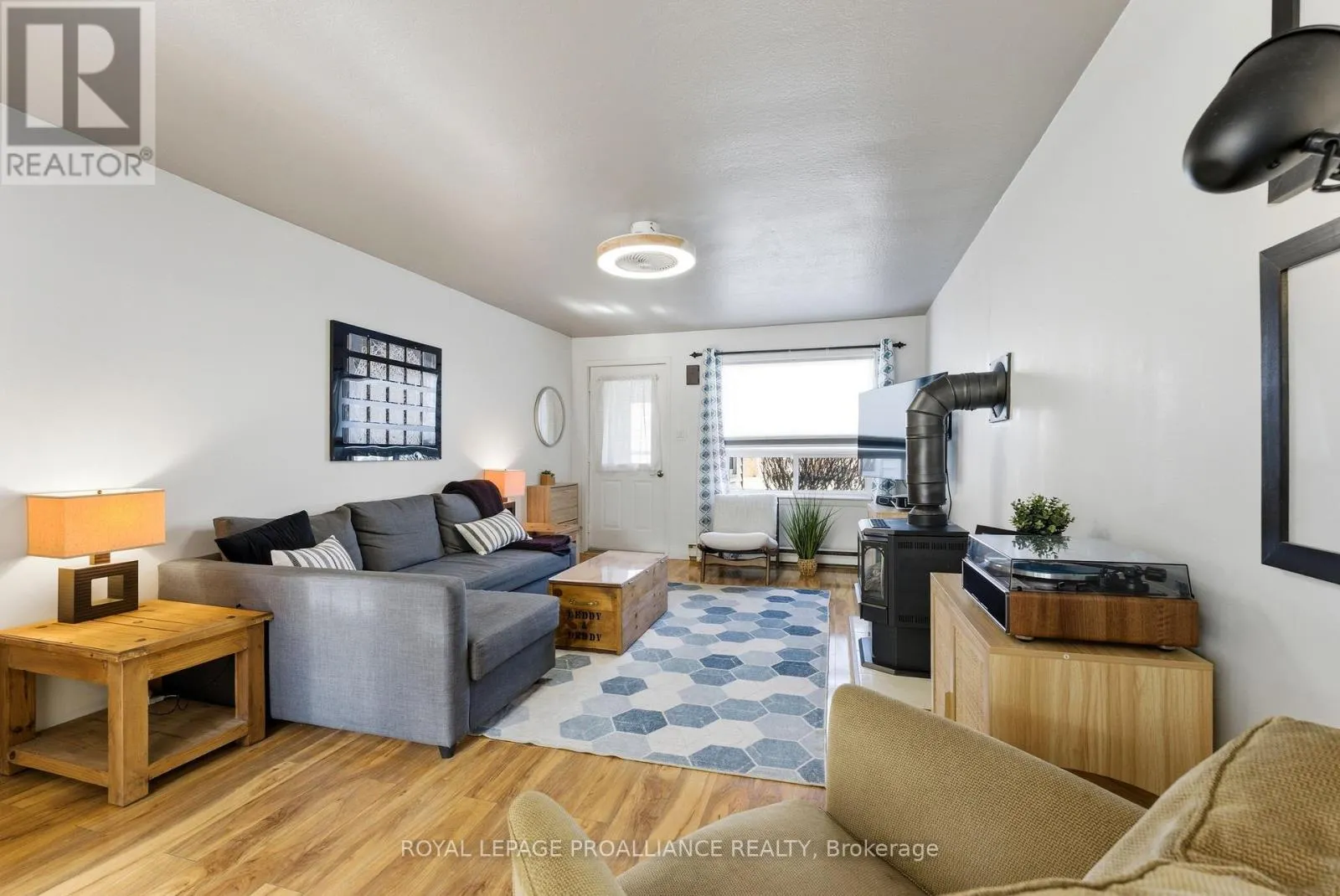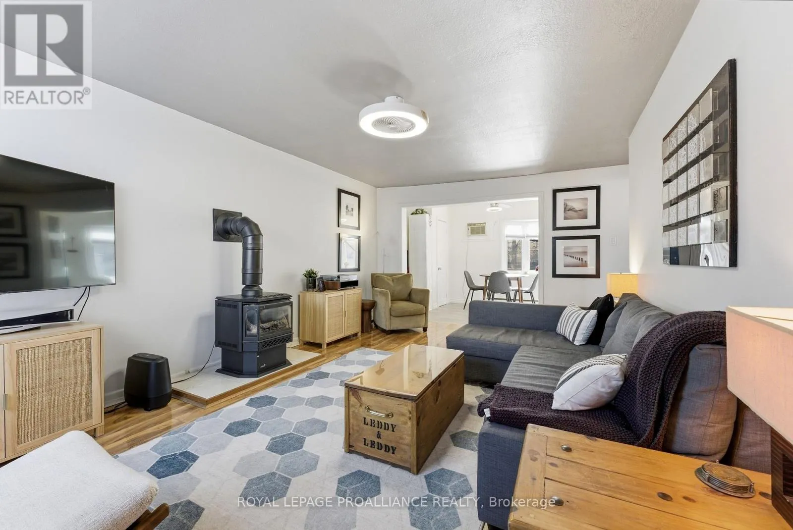 Front Street & Guelph Street Welcome to 23 Guelph Street in the heart of Trenton, this updated 2-bedroom, 1-washroom bungalow offers more than meets the eye. Featuring an open-concept layout and a cozy fireplace, the space feels inviting, functional, and perfectly suited for modern living. The kitchen is both stylish and practical, flowing seamlessly into the main living area and offering direct access to the fully fenced backyard. With a gas BBQ hookup already in place, outdoor cooking and entertaining can be enjoyed year-round without the hassle of propane tanks. Recent updates include a new roof (2025) and updated windows, providing added confidence for years ahead. A standout feature of this property is the parking and storage: two separate driveways plus a drive-in shed with an electric garage door, perfect for bicycles, motorcycles, or even a small vehicle. Location adds to the appeal. Just steps from the Trent River, enjoy scenic walks, cycling, or quiet moments by the water all less than a minute from your front door. Conveniently located just minutes to CFB Trenton, making it an excellent option for military members and those seeking easy access to the base. Whether you're entering the market or looking to right-size, this home offers comfort, convenience, and a lifestyle that's easy to enjoy. This is a must-see. (id:27476)