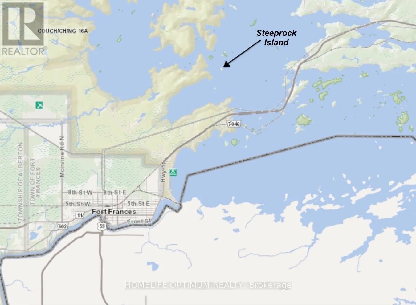 Cross Streets: Just outside and between the mouths of Stanjikoming Bay & Haymarsh Bay. ** Directions: From the City of Fort Frances, the Subject Island sits roughly 7km by boat. The GPS coordinate for the Island is 48.67050, -93.32732. This 6.75-acre island is located roughly 7km northeast of the city of Fort Frances. The island is made Canadian Shield and has a good mix of trees including Poplar, birch & Pine throughout the island. There are no structures on this island, but since it is located in an UNORGANIZED TOWNSHIP, you are free to build what you like. The contour map shows that the island sits between 340 Meters above sea level (MASL) and as high as 351 (MASL), on the southern portion of the island. Rainy Lake has a surface area of 360 square miles (932 km2) that straddles the border between the United States and Canada. The elevation of the lake ranges between 336.7 - 337.75 (MASL). Rainy Lake is home to some world class fishing. Some species include Walleye, Smallmouth Bass, Northern Pike, Black Crappie, Muskie and Yellow Perch (Just to name a few). (id:27476)