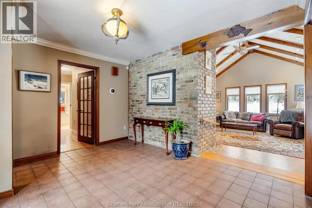 Rare Opportunity: Panoramic Views Without the Waterfront Taxes! Discover privacy & tranquility at the end of a quiet dead-end road on this stunning one-acre estate. This well maintained brick ranch offers sweeping, panoramic views of Lake Erie from multiple vantage points. Step into the heart of the home: a renovated kitchen in 2020 featuring sleek quartz countertops, flowing effortlessly into a great room anchored by a beautiful fireplace. Outdoor living is a dream with professionally landscaped gardens, a peaceful koi pond with a calming waterfall, and 3 distinct outdoor retreats: a screened-in back porch, a dining-side patio, and a private covered balcony off the primary suite overlooking the water features with Lake views. The property boasts 3+1 bedrooms and 3 full baths, including a lower-level in-law suite with a separate entrance through the oversized double garageâperfect for multi-generational living or guests. Main floor laundry. Additional features include a large shop/shed with hydro, 200 amp service, and massive storage capacity with room to finish even more living space. Enjoy the lakeside lifestyle with significantly lower taxes! Contact your favourite local REALTOR®, or the Listing REALTOR® for your private viewing. It's a beautiful day to get you moving! (id:27476)