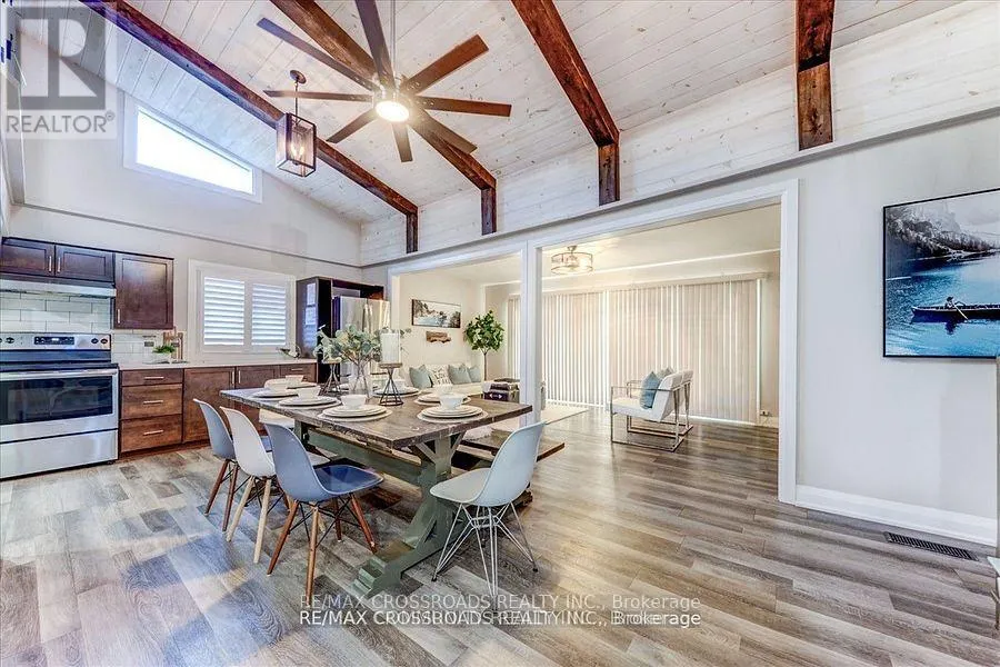 Williams Rd & Victoria Park FOR LEASE - Stunning 4-season waterfront cottage on Lake Couchiching. This beautifully upgraded, Turn-key waterfront cottage is fully winterized and offers the perfect blend of comfort, style and functionality. Featuring 4 spacious bedrooms, 2 full bathrooms, plus an additional shower. This open concept gem boasts vaulted ceilings with exposed wood beams, a modern kitchen with quartz countertops and over 50 feet of direct waterfront access. Step out onto the large deck with panoramic lake views, or relax on your private dock-perfect for boating, fishing, or enjoy the peaceful surroundings. Additional features include: Detached oversized double garage with loft storage, new high volume septic system (May 2023), UV and water treatment systems (2022), Partially renovated basement with sump pump (2022). New California shutters throughout (2022). Brand New bedroom sets, BBQ (2022), and updated sofa sets (2025). Fully furnished and ready to move in, Municipal gas, central A/C, high-speed internet, and garbage collection. Just minutes from Lake Simcoe, Walking distance to the casino, and close to all major amenities. Looking for AAA tenants who will appreciate and care for this exceptional property. Ideal for professionals, executives or families seeking a premium waterfront lifestyle (id:27476)