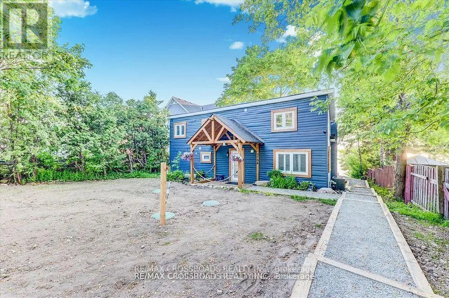 Williams Rd & Victoria Park Beautiful 4-season waterfront cottage on Lake Couchiching!!. Turn-key and fully winterized, this stunning open-concept cottage features 4 bedrooms, 2 full bathrooms, and an additional shower. Enjoy over 50 feet of water frontage, a spacious deck with panoramic views, and your own private dock. The vaulted ceilings with exposed wood beams and a modern kitchen with quartz countertops create a warm and inviting interior. Property includes an oversized detached double garage with loft storage, new high volume septic system (May 2023), UV and water treatment systems (2022), and a partially renovated basement with sump pump (2022). Comes fully furnished with new California shutters throughout (2022). Municipal gas, central A/C, garbage pick up, and high-speed internet. Also includes brand new bedrooms sets & BBQ (2022) and sofa sets (2025). Located steps from a clean private beach and minutes to boating and fishing on Lake Simcoe. Walking distance to the casino. Licensed for rental use (ONLY one in the area) - ideal for personal enjoyment or income generation. A rare opportunity for lakeside living or investment! (id:27476)