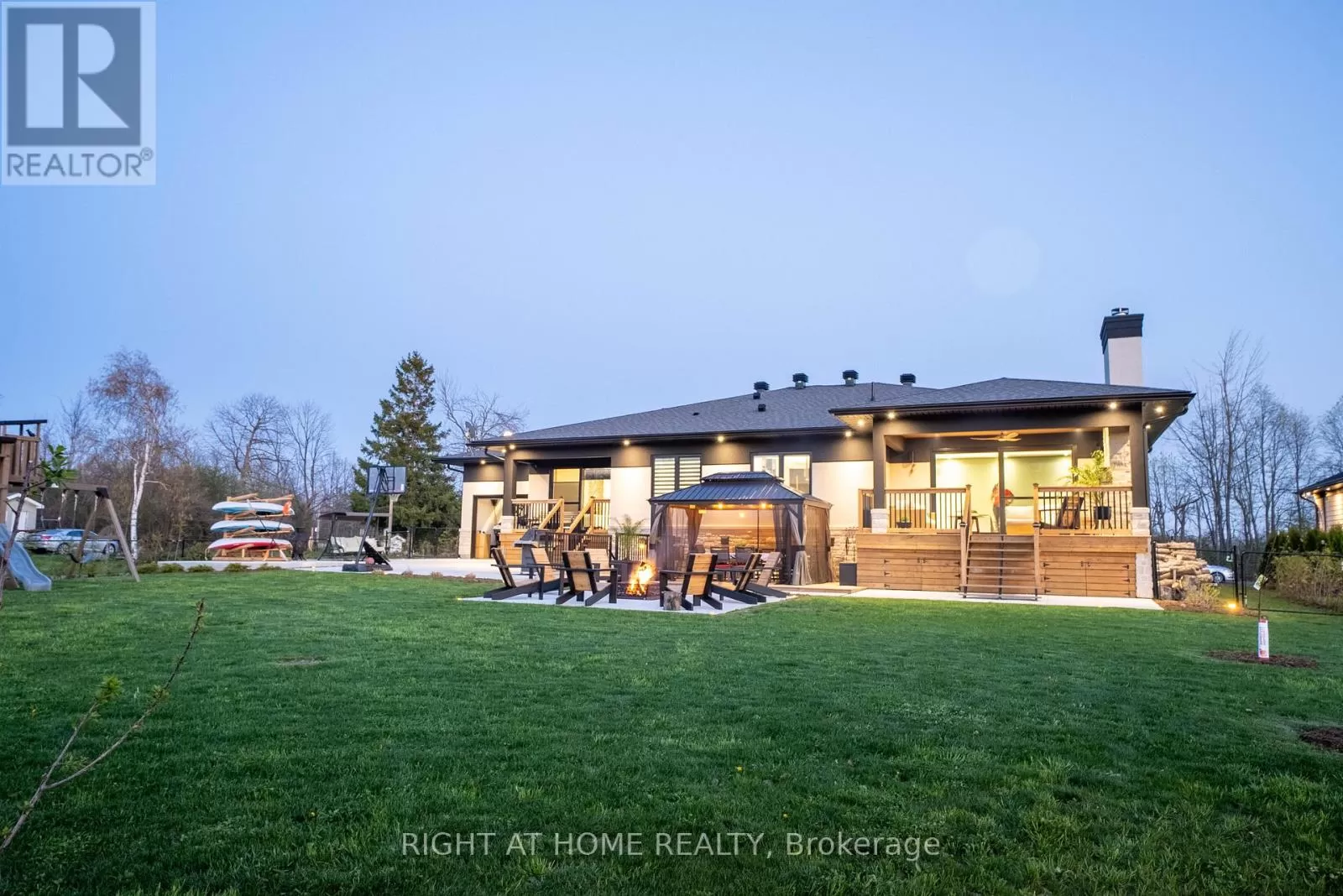Cross Streets: Ramara Rd 47 and Concession Rd A. ** Directions: Google maps/waze. Just about an hour from Toronto, Modern luxury meets lakeside serenity. Welcome to your dream retreat where tranquil living and refined luxury meet in perfect harmony. Custom built in 2023 with uncompromising attention to detail, this extraordinary residence offers approximately 5000 sq ft of exquisitely finished living space, thoughtfully designed for comfort, style, and connection to nature. Step inside and discover a stunning layout featuring 5 spacious bedrooms, 4 spa inspired bathrooms, a private gym, and a resort style sauna and steam room that accommodate up to approximately 12 guests, your personal wellness oasis. Crafted with meticulous precision and premium finishes throughout, this home features top-of-the line appliances, solid core doors with high-end ball bearing hinges, 7 1/4 inch baseboards, custom millwork and cabinetry, triple pane european windows and exterior doors, white oak engineered hardwood and heated marble inspired epoxy flooring, three Napoleon fireplaces total (2 indoor, 1 outdoor), and built in speaker system creating warmth and ambiance throughout. Outdoors the luxury continues with three stylish sitting areas, previously mentioned Napoleon fireplace, a fire pit area, and illuminated concrete walkways. Boasting a 3 car garage that can accomodate a boat or motorized toys, two versatile sheds include built in chicken coop and dog run, while a concrete pad with electrical hook-up awaits your future swim spa. Just steps from the lake and only a few houses from the community boat launch and water access, this home is ideally situated for those who appreciate nature, privacy and premium living. Every element of this property has been carefully curated- no expense spared, no detail overlooked. This is more than a home; it's a lifestyle. Come experience it for yourself. This is the lakeside luxury you have been waiting for. (id:27476)