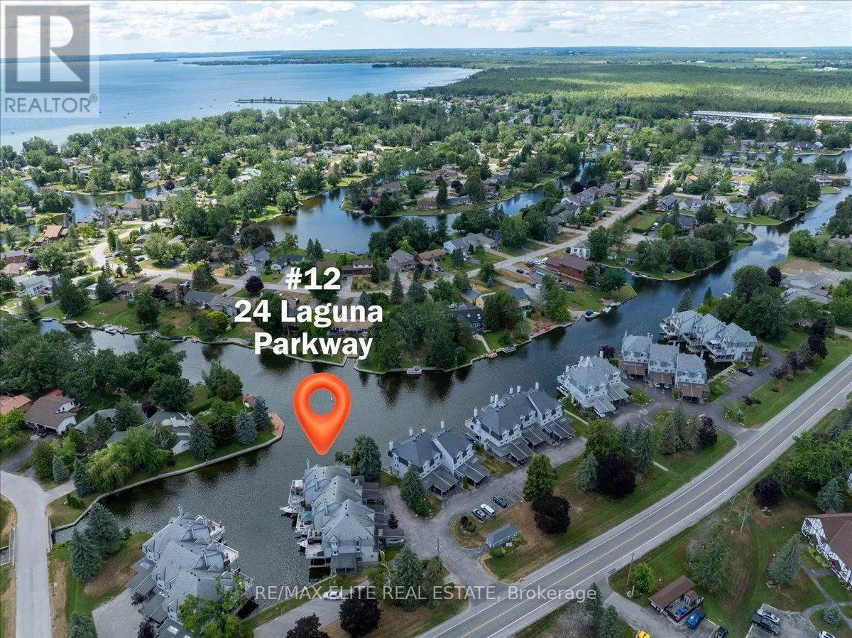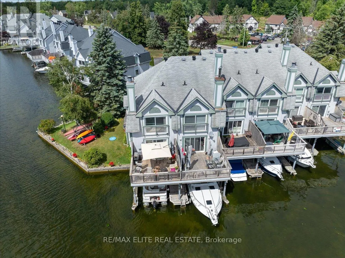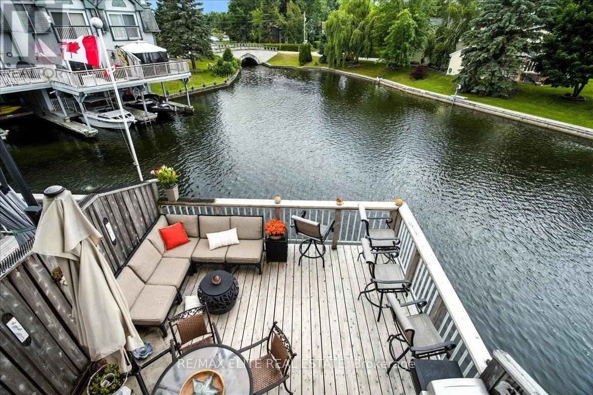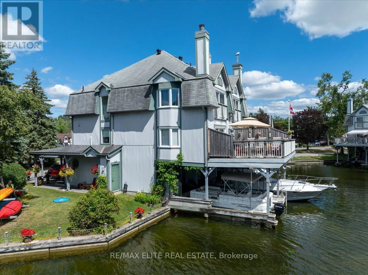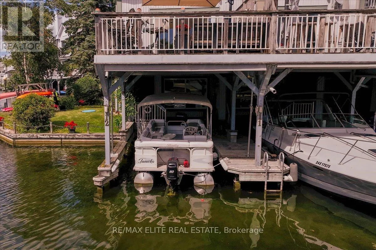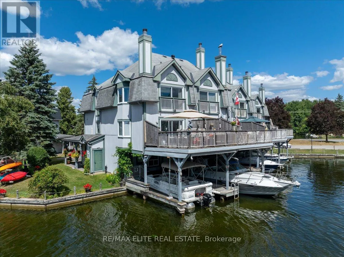 Hwy 12/Simcoe Rd/Laguna Pkwy Welcome to one of Lagoon City's most desired townhomes THE ONE. This special end-unit retreat offers unparalleled panoramic views from sunrise to sunset. With full southern exposure and a prized canal-edge position, this exceptional home is filled with natural light, fresh breezes, well-circulated water flow, and an extraordinary waterfront lifestyle. Tucked beside a beautifully maintained side yard and enhanced by its ultra-private setting, this home also offers extra space for watercraft parking on the opposite side of your personal , covered boat slip. A true boaters dream, this townhouse opens directly onto a scenic canalsystem that leads to Lake Simcoe, and from there, to the expansive Trent-Severn Waterway. Inside, you'll find a thoughtful layout across three levels, featuring 3 bedrooms, 4 bathrooms, and a bright, airy bonus room that walks out directly to your dock. The living and dining areas are sunlit and spacious, framed by oversized windows that showcase calming water views and ever-changing skies. Step out onto your large private deck, perfect for entertaining or simply soaking in the peaceful setting. The primary suite is a retreat of its own, with a sun-filled bay window, sliding doors to a Juliet balcony, and sweeping views of a picturesque bridge and the canal below. A walk-in closet leads to a spa-like ensuite, complete with jet tub and bidet for elevated comfort. Notable extras include a private carport, ample storage, and access to all the amenities the community has to offer: marina, tennis and pickleball courts, two sandy beaches, community center, and more, all within walking distance. Less than 25 minutes to Orillia and Casino Rama, and just over an hour from Toronto, this is effortless four-season living with the soul of a getaway and the comfort of home. (id:27476)