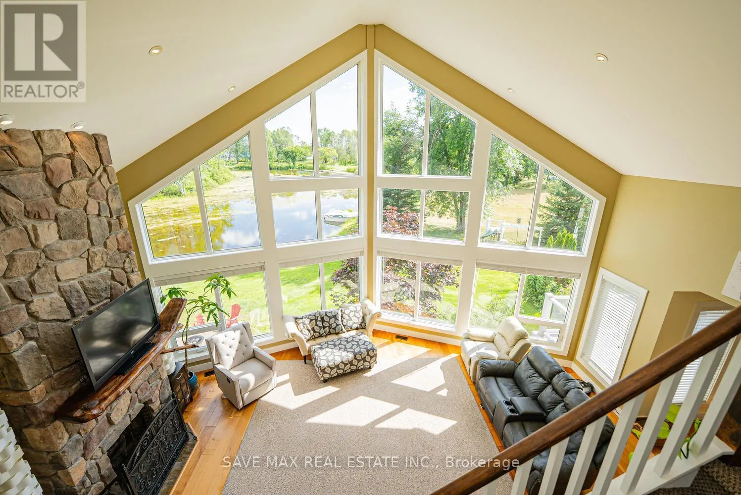 Cross Streets: Bonnie Beach- Edgehill- Leo. ** Directions: BONNIE BEACH - EDGEHILL - LEO CRESCENT. Experience luxurious Waterfront Living in this stunning custom-engineered Viceroy home located in the prestigious Valharbour Estates on Lake Simcoe. Nestled in a sheltered lagoon with direct access to boating, fishing, skating, and all-season water sports, this beautifully crafted residence offers over 3,800 sq. ft. of total space ( All levels combined ) with breathtaking views from every level. Featuring 3 spacious bedrooms (2 on Upper level and 1 in the lower level) , 3 full 4-piece bathrooms, soaring 20FT cathedral ceilings, and floor-to-ceiling high windows for enjoying picturesque views , youll enjoy spectacular sunsets and natural light throughout the day. Entertain with ease in additional all-season Muskoka Room off the kitchen, complete with a second balcony access. Property comes with huge open-concept loft that can be used for anything you desire like ((((4th Bedroom , Media/ Entertainment Room , Office , Family room or anything as per your own choice)))). The walkout lower level is bright & offers an in-law suite potential With High 11FT high ceilings areas to have amazing Water views. This home combines comfort, style, and efficiency. Enjoy access to private beaches, green spaces, boat launch, basketball court, and playgrounds. This house comes just at a short ride to Casino Rama & Orillia town with access to Costco, Walmart, marinas, schools, and all leading amenities .. This is truly a rare opportunity to live your best life on the water. Do Not Miss !! (id:27476)