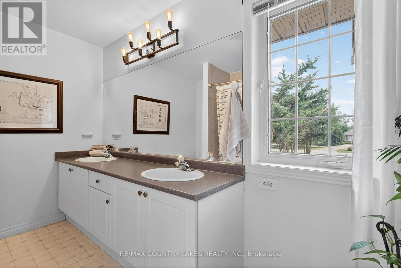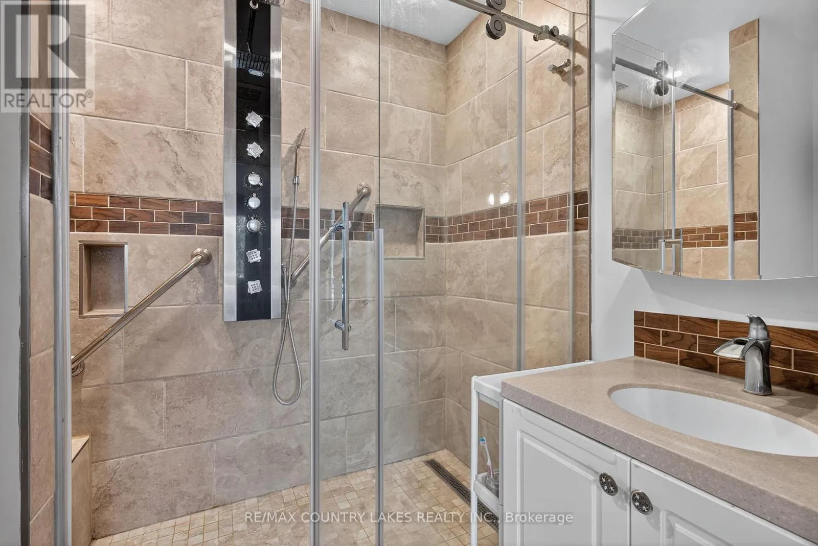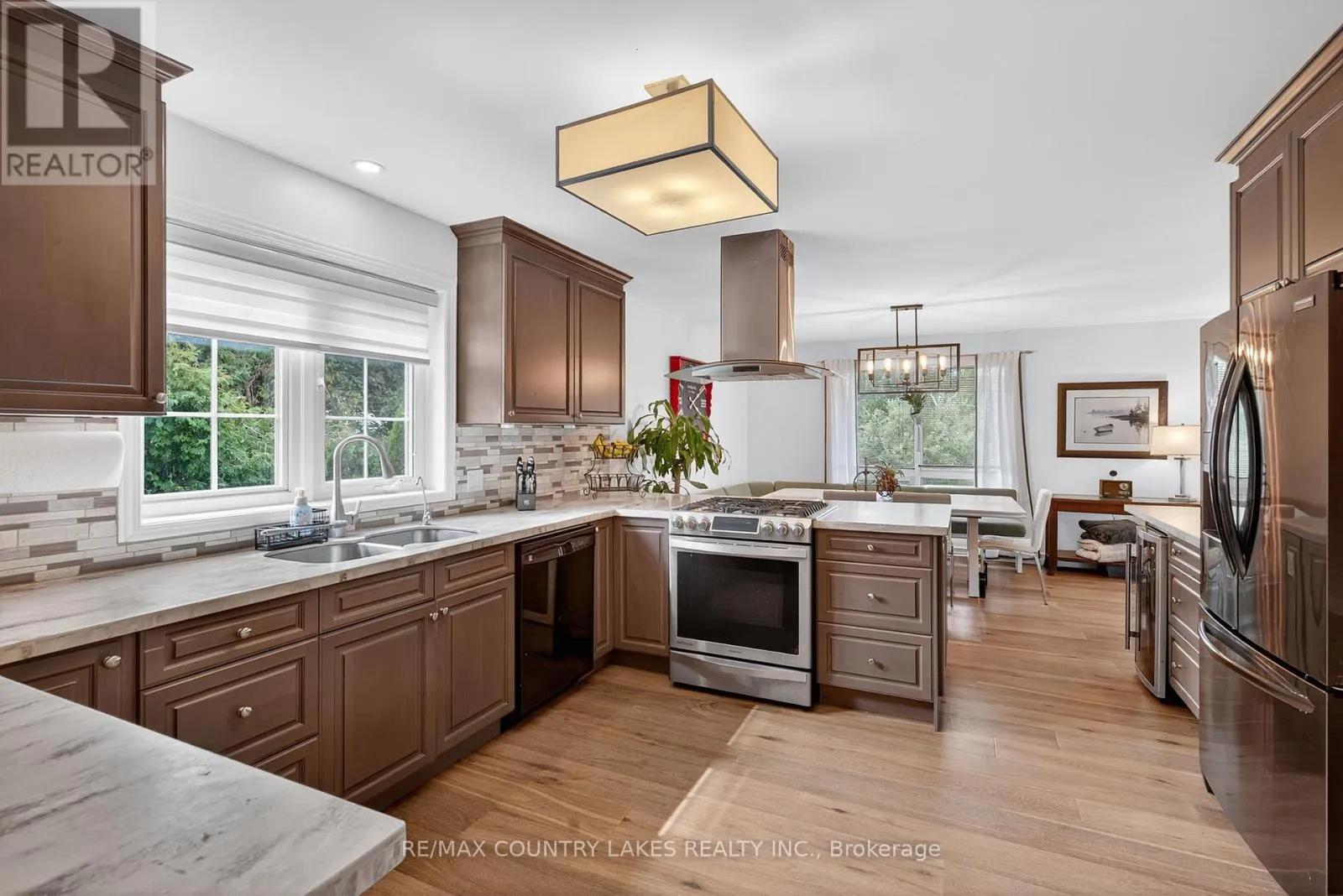 Cross Streets: sideroad 20/Bayshore Village. ** Directions: hwy 12. sideroad 20. Your search is over with this 5 bedroom, upgraded family home in Bayshore Village, on the shores of Lake Simcoe. Enter into the spacious foyer which leads to the large living room, open concept kitchen and dining rooms. Walk out to your large deck with wheelchair ramps for your convenience and a fenced in area for a dog run. Kitchen features include, granite counters, island with bar fridge, vinyl plank flooring, pot lights, gas stove. Relax in the living room overlooking your back deck and large patio with firepit for those cozy evenings, and a gas fireplace. 3 bedrooms on the main floor with 2 full baths. The lower level brings more entertaining or family room for games nights, movie nights or just for a separate area to relax. Tons of storage along with 2 bedrooms and bath for teenagers or guests. Primary bedroom offers an upgraded ensuite and large windows. Double heated garage for all your needs. Hardwood, vinyl plank and tile flooring throughout this home. Bayshore membership includes: golf, saltwater heated pool, tennis or pickleball, rec centre and Bell Fiber discount program. Association Fee of $1100.00 annually. (id:27476)