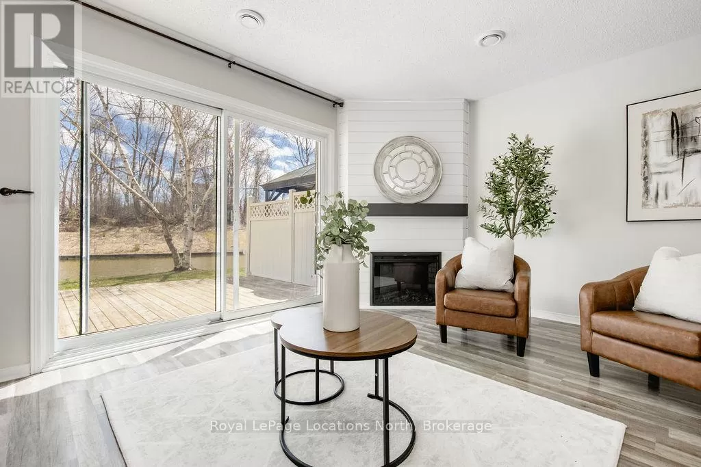 Cross Streets: Simcoe Road and Laguna Parkway. ** Directions: Simcoe Road to Laguna Parkway. Waterfront Townhome Living at Its Finest! Don't miss your chance to own this beautifully updated 3-bedroom, 2-bathroom waterfront townhome in one of the areas most sought-after complexes - complete with an outdoor swimming pool! Step inside to find newer flooring, a stylish shiplapped fireplace, fresh paint throughout, and an open-concept kitchen featuring stainless steel appliances, granite countertops, and modern finishes. The bright main living area walks out to a large deck overlooking the water - perfect for entertaining or soaking up peaceful views. Enjoy your morning coffee or evening wine while watching the boats go by, with your own private boat dock just steps away.The flexible layout offers a rare main floor primary bedroom (or ideal home office), plus an upper-level primary bedroom with serene river views and a 4-piece semi-ensuite. A third spacious bedroom also has amazing wardrobe storage, and a convenient second-floor laundry room completes the upper level.This is true four-season living- swimming, boating, fishing, ice fishing, hiking, and trail riding are all at your fingertips. Local resort amenities and green space right out your back door make it easy to relax and enjoy the lifestyle.Set sail from your canal-side dock and take the scenic route to Lake Simcoe, visiting friends and exploring the beauty of the waterways along the way.Whether you're looking for a weekend getaway or a year-round home, this waterfront gem checks all the boxes. Partial VTB available. (id:27476)