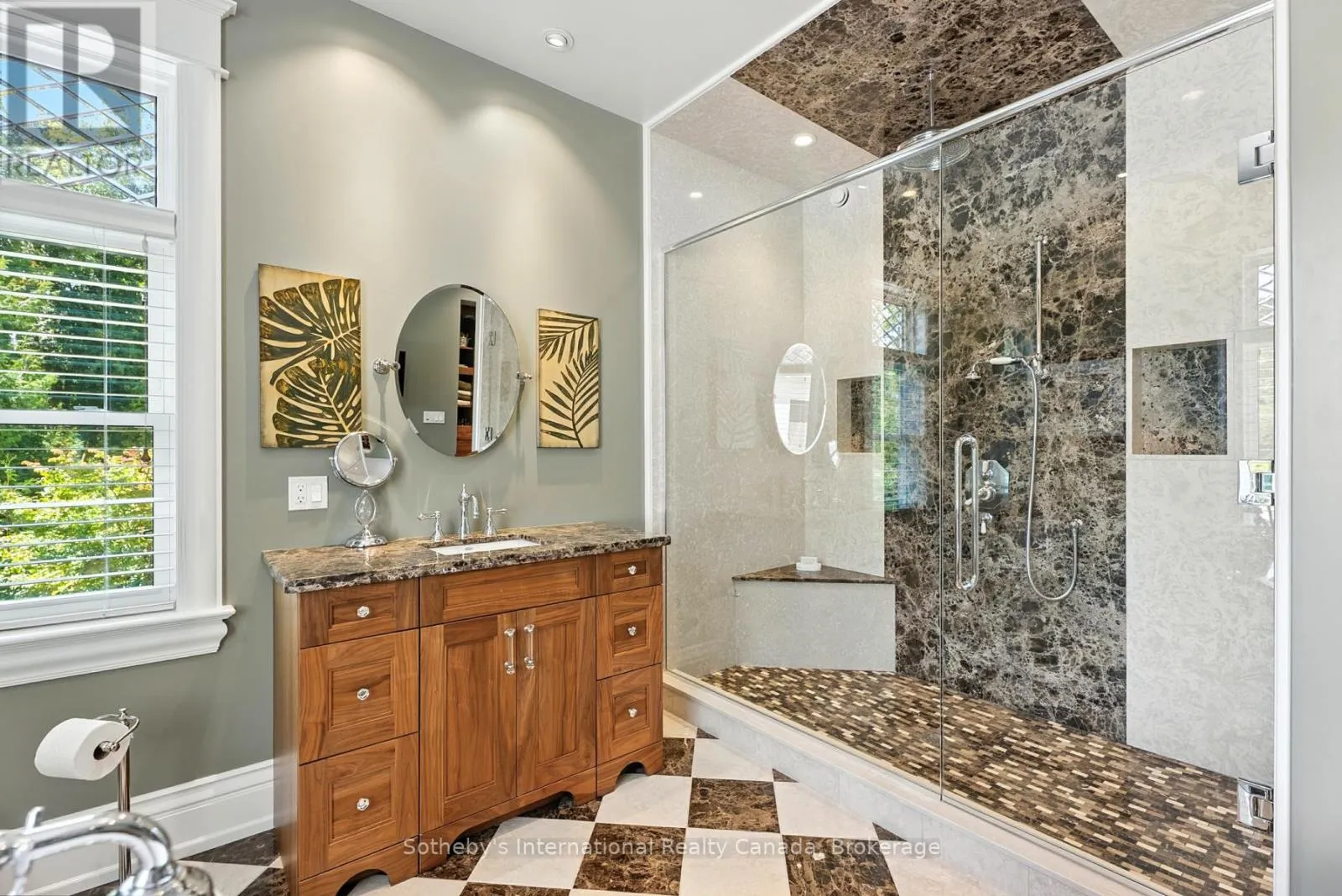 Cross Streets: Balsam Rd. ** Directions: HWY 11 to HWY 12 to Creighton St S. Curated with pure intention, exceptionally executed - here's a spectacular opportunity to own one of Lake Simcoe's most admirable waterfront estates! This custom-built residence offers over 6,000 sq ft of refined living space on 1.2 acres of professionally landscaped grounds. With 107 feet of prime WESTERN shoreline, the property is perfectly positioned for unforgettable sunsets and an unmatched lakeside lifestyle. Crafted by award-winning West Brennen Construction, the home blends timeless elegance with modern performance. Solid 8' walnut doors and flooring, intricate plaster and imported tin ceiling details, natural quartzite, granite, and leathered granite surfaces create a sense of warmth, sophistication, and enduring quality. The layout features four spacious bedrooms, a dedicated office, and five impeccably designed bathrooms, including a spa-like primary ensuite featured in House & Home magazine. The walk-out lower level offers 9.5' ceilings, a custom media room, a games area, and an English-style pub with cherry wood millwork, marble floors, and granite counters, the ultimate entertaining space. Smart home technology controls lighting, irrigation, and security, while premium mechanical systems, including 400-amp service and a 30KW Generac generator, provide year-round comfort and reliability. Outside, park-inspired landscaping surrounds an outdoor kitchen, waterfall feature, and a charming gazebo ready for a hot tub or lakeside lounging. The heated four-car garage with Rhino-coated floors and custom storage adds practicality to luxury. At the waters edge, a rare dry boathouse with finished space above offers excellent flexibility ideal for guests, a studio, or office, while two marine railways, deep water access, and twin 40' docks easily accommodate a 28' boat and Seadoos. With flawless craftsmanship, modern functionality, and an unbeatable waterfront setting, this property offers a truly elevated lifestyle where every detail has been thoughtfully executed. (id:27476)