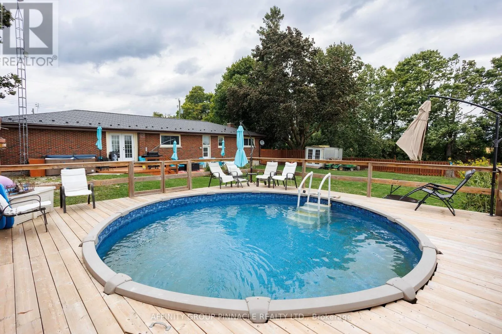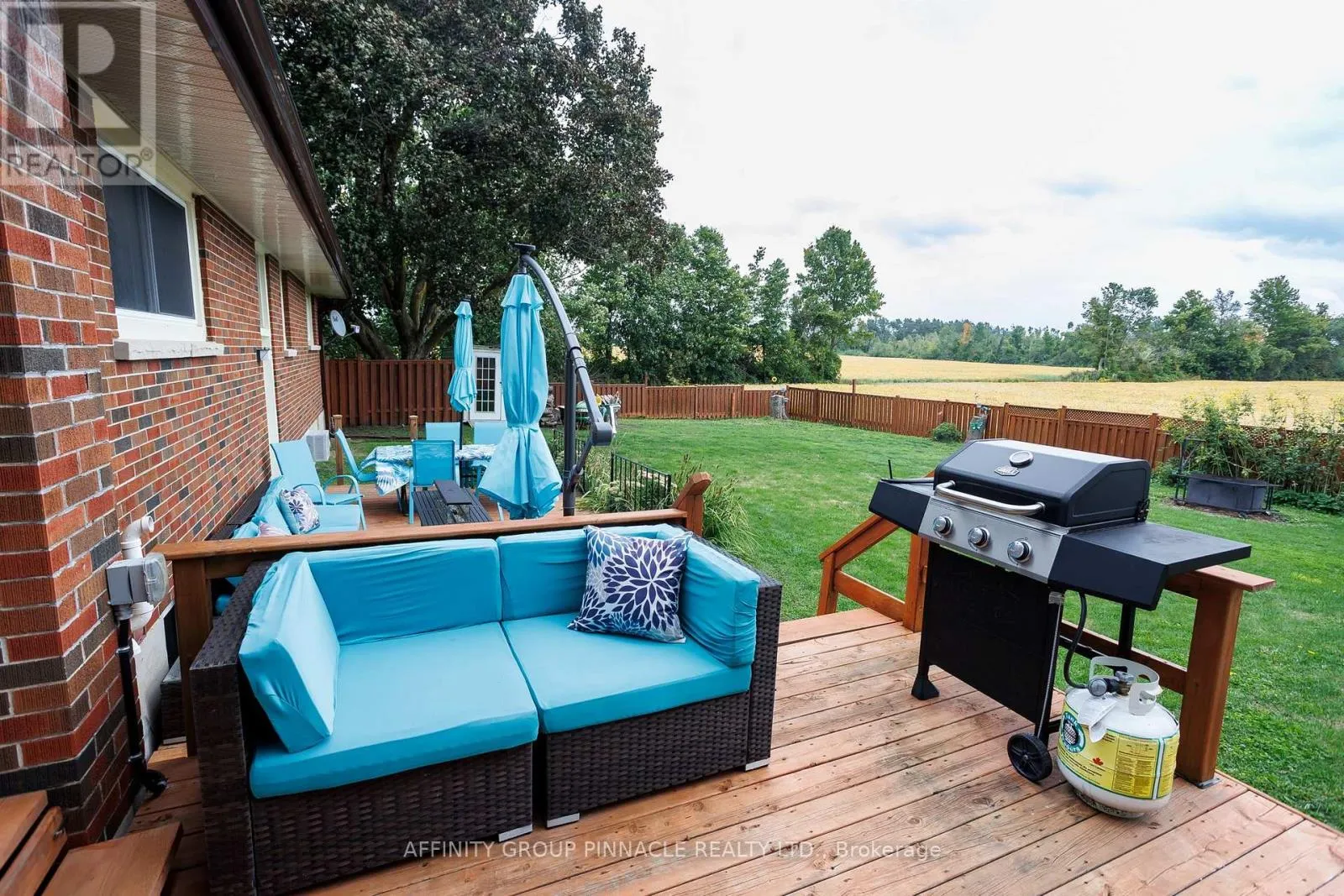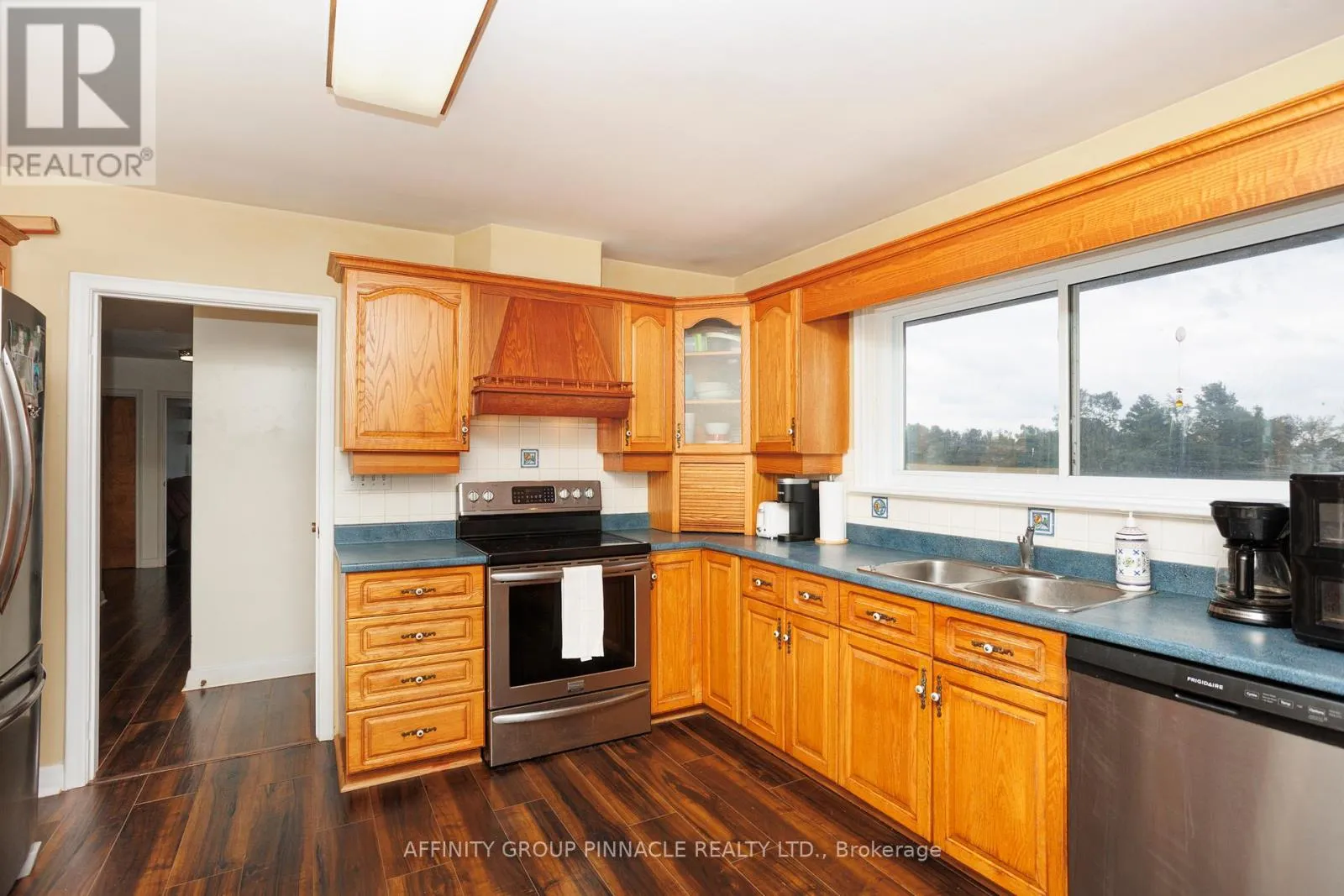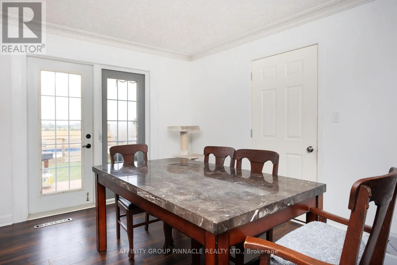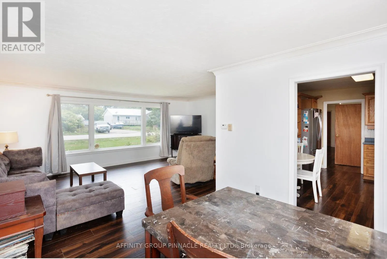 County Rd 169 to Conc Rd 10 Experience country living at its finest in this charming brick bungalow that backs onto a peaceful farmers field. Mature trees provide natural privacy, creating a serene atmosphere. The home boasts three spacious bedrooms and two bathrooms, complemented by a bright, inviting interior. The large eat-in kitchen and separate dining room are perfect for family gatherings, while a full, partially finished basement offers additional living space. Recent updates include a newer steel tile roof, new breaker electric panel, new windows and exterior doors, fully fenced yard and a newer furnace, ensuring comfort and efficiency. Conveniently located close to Orillia, the property features a separate entrance to the basement, leading to an open concept lower level with a kitchenette, offering excellent in-law potential. An oversized, heated and insulated garage provides ample space for vehicles and storage, making this home ideal for families seeking both comfort and functionality. (id:27476)