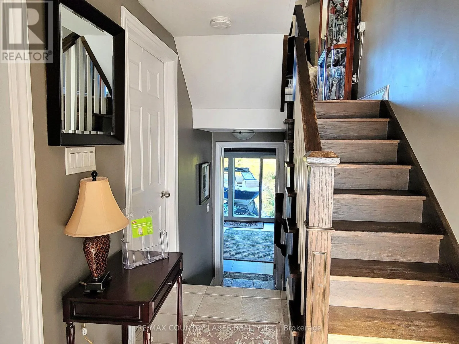 Laguna Pkwy/Paradise Blvd Welcome to Paradise! This beautifully updated 3-level end-unit condo offers modern comfort and serene surroundings. Features include a propane fireplace, furnace, and hot water tank. The spacious living room boasts soaring 11-ft ceilings, while the dining area overlooks the living space for an open, airy feel. Enjoy a large deck with stunning views of the water and wildlife and no back neighbours for ultimate privacy. Inside, you'll find laminate flooring, quartz counters, and an abundance of windows that fill the home with natural light. Just a 2-minute walk to our private beach and only a 5-minute boat ride to Lake Simcoe. A true pride-of-ownership home you'll instantly fall in love with! (id:27476)