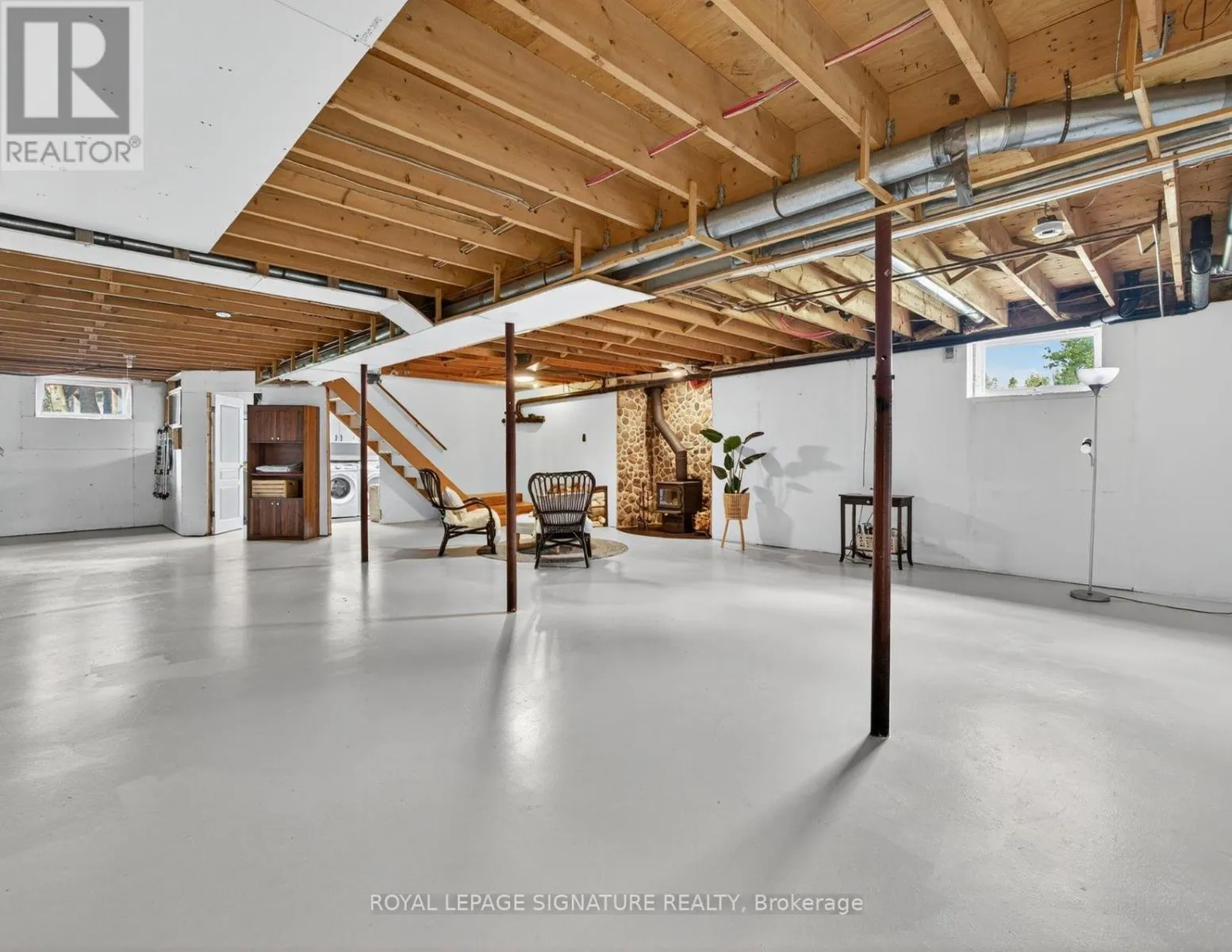 Cross Streets: HWY 12/ Concession Rd. 1. ** Directions: Turn off HWY 12, follow East Concession Rd. 1. **Escape to Your Private Country Retreat! Embrace unlimited potential on 100 sq acres in Brechin, ideal for equestrian, tree, cattle, crop, hobby farming, eco-tourism + more. This charming 1,524 sf Royal Home bungalow, built in 1991, features a spacious open-concept gourmet kitchen with new appliances and a generous dining area overlooking beautifully landscaped gardens perfect for entertaining. The front foyer with a double closet and a convenient 2-piece powder room, ideal for farm life. Unwind in the living room by the stunning stone wood-burning fireplace, creating a cozy atmosphere. The main floor also includes three spacious bedrooms, each with closets and hardwood flooring. The private primary bedroom features a modern electric fireplace and 3 large windows showcasing the breathtaking farmland. The expansive 4-piece bathroom boasts a luxurious step-in shower, a custom stone vessel sink on a butcher block countertop, and a classic clawfoot tub. The basement, filled with natural light from above-grade windows, offers vast potential for work and recreation, including a finished office/bedroom with an electric fireplace. Step outside to enjoy the great outdoors! The oversized, insulated, heated two-car garage with 100 AMP 4 breaker pony panel, perfect for all your tools and equipment. Equestrian enthusiasts will love the two paddocks, run in shed and round pen, while trails weave through the property for sustainable farming, trail rides, and hiking. A self-contained insulated cabin with a covered porch features a newly installed with high-efficiency wood stove, nestled beside the original farm silo and an operational hand pump well. This cabin allows for future expansion plans, as it can serve as a second dwelling. Benefit from the MFTIP (Managed Forest Tax Incentive Program) for property tax savings. This property is a dream for those seeking a rural oasis close to Lake Simcoe and the Trent Severn without sacrificing city proximity to the GTA. (id:27476)
