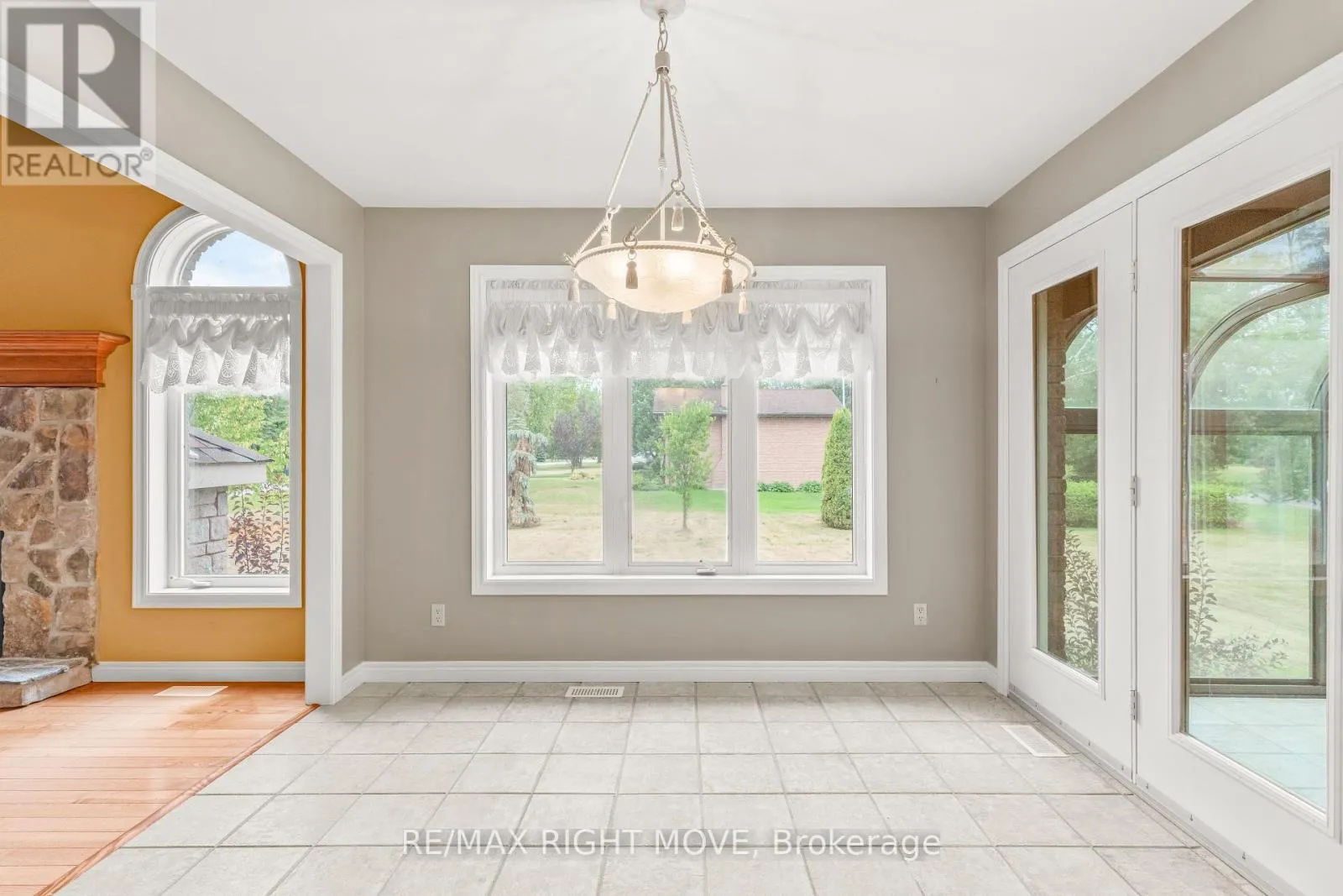 Cross Streets: Thicketwood place / Bayshore Dr. ** Directions: Head North on Highway 12 from Brechin ,take left on concession 7 and head west , when you reach the end of conc 7 turn left on side rd 20 , turn right on bayshore dr , follow bayshore drive until you reach 3 Thicketwood on the left hand side . Just steps from Lake Simcoe, this meticulously maintained 1,662 sq. ft. bungalow sits on a private corner lot surrounded by mature trees and a stone-paver driveway. Inside, the home offers 3 bedrooms, 2 bathrooms, hardwood floors throughout, and 9 ft ceilings for a bright, open feel.The spacious eat-in kitchen provides generous counter and cabinet space-ideal for family meals or entertaining-and flows seamlessly into the main living area. A cozy 3-season sunroom and convenient main-floor laundry add to the everyday comfort.The unfinished basement with extra-high ceilings offers endless potential for a workshop, gym, or future living space also includes a rough in for a third bathroom and massive cold cellar . A 2-car garage with natural light and epoxy flooring and a whole-home Generac generator complete this move-in-ready home.Residents can join the community association (approx. $1,100/year for 2025) to enjoy pickleball and tennis courts, a 3-par golf course, saltwater pool, yoga, and access to three private harbours for boating. Located just 1.5 hours from Toronto and 20 minutes to Orillia, this property delivers lakeside living with year-round, family-friendly comfort. (id:27476)