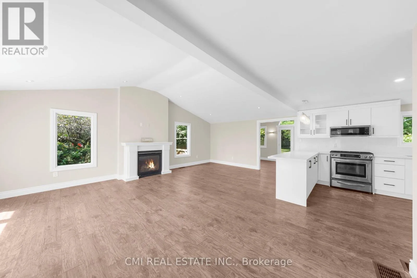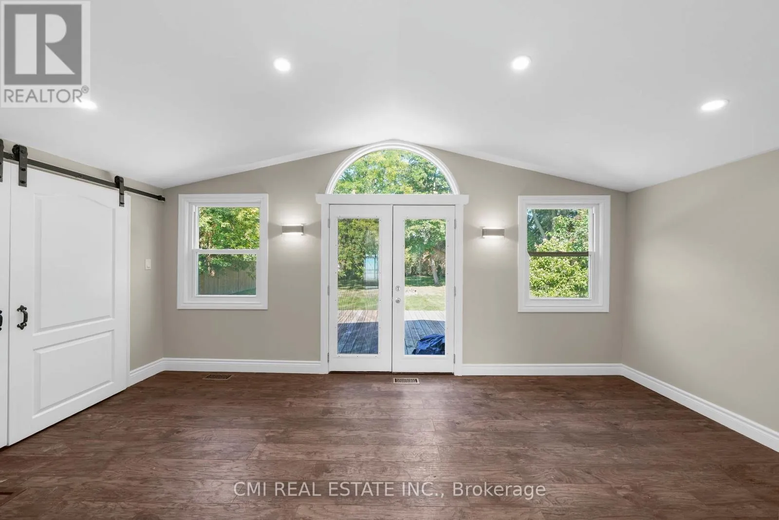 Ramara Rd 47 & Concession Rd B LAKEFRONT! Charming Bungalow located along the Shorelines of Lake Simcoe on a generous 82X208ft lot w/ private deeded access to the lake including private docks mins to top rated beaches, trails, schools, Hwy 12 & much more! Grand doublewide driveway, no sidewalk, provides ample parking for cars, RVs, boats & other recreational vehicles. Enter through the enclosed porch sunroom ideal for morning coffee or evening drinks offering gorgeous views of the lake. Step into the oversized living comb w/ dining room presenting an open-concept lay-out w/ tall cathedral ceilings & cozy fireplace O/L the lake. Entertainers Eat -in kitchen upgraded w/ SS appliances, custom tall cabinetry, stone counters, backsplash, & breakfast bar. Venture into the family room w/ French door WO to rear deck. Stroll past the kitchen into two large bedrooms & 1-3pc resort style bath. Primary bedroom w/ WI closet & ensuite laundry space (can be converted to ensuite bath w/ stacked laundry). Expansive backyard surrounded by mature trees provides privacy ideal for summer enjoyment plenty of opportunity to add in a pool or Hot tub. Do not miss the chance to purchase this move-in ready bungalow on the water! (id:27476)