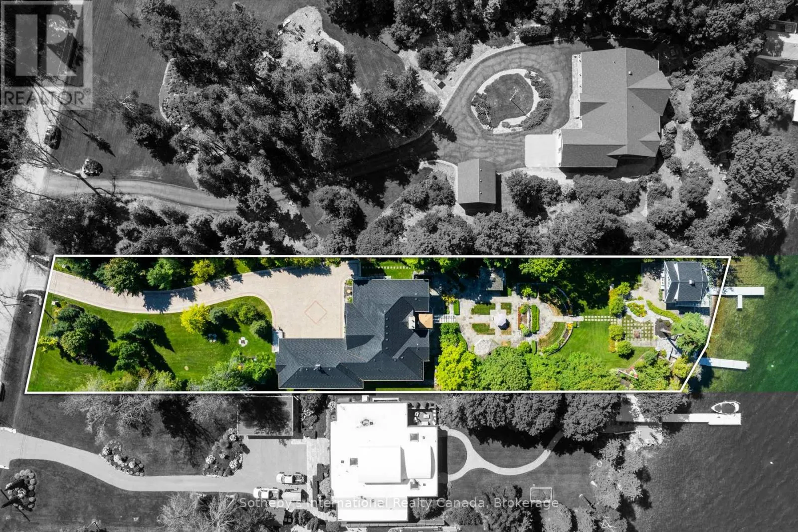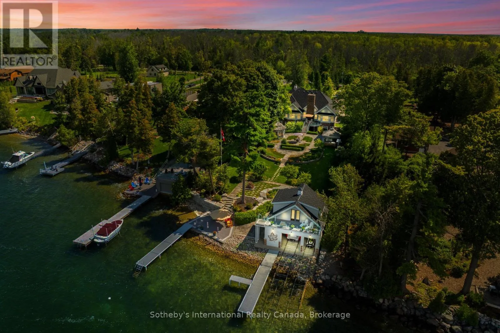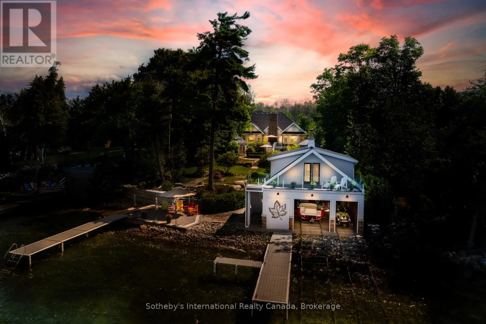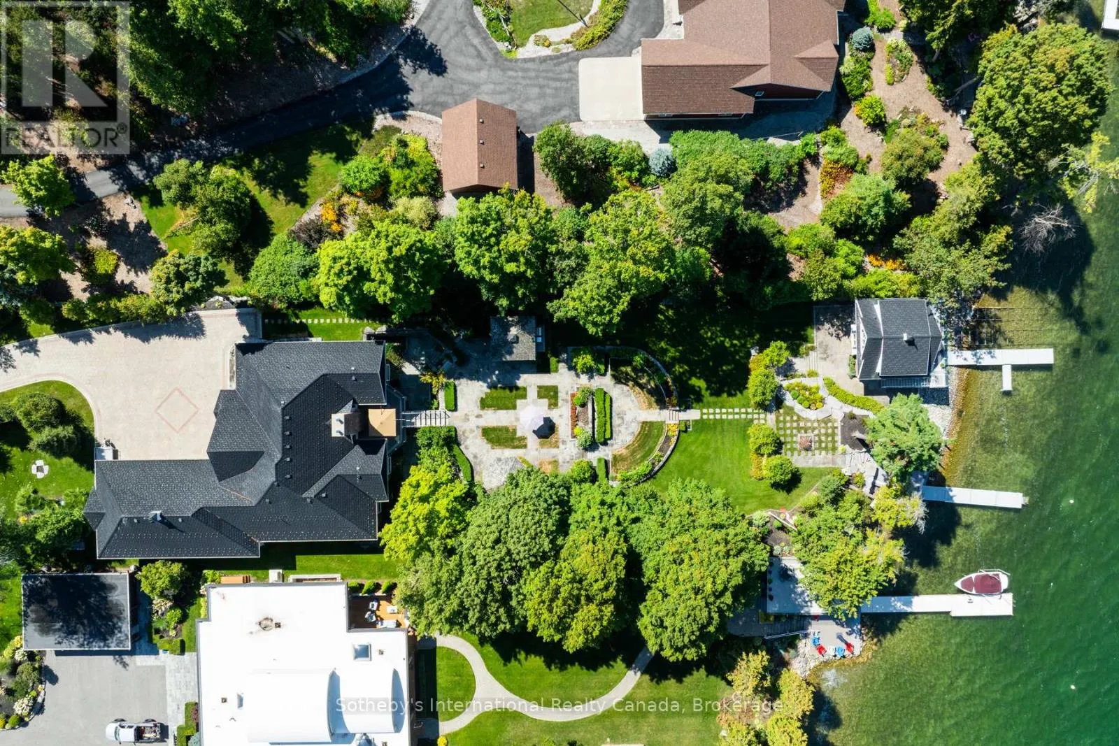 Cross Streets: Balsam Rd. ** Directions: HWY 11 to HWY 12 to Creighton St S. Curated with pure intention, exceptionally executed - here's a spectacular opportunity to own one of Lake Simcoe's most admirable waterfront estates! This custom-built residence offers over 6,000 sq ft of refined living space on 1.2 acres of professionally landscaped grounds. With 107 feet of prime WESTERN shoreline, the property is perfectly positioned for unforgettable sunsets and an unmatched lakeside lifestyle. Crafted by award-winning West Brennen Construction, the home blends timeless elegance with modern performance. Solid 8' walnut doors and flooring, intricate plaster and imported tin ceiling details, natural quartzite, granite, and leathered granite surfaces create a sense of warmth, sophistication, and enduring quality. The layout features four spacious bedrooms, a dedicated office, and five impeccably designed bathrooms, including a spa-like primary ensuite featured in House & Home magazine. The walk-out lower level offers 9.5' ceilings, a custom media room, a games area, and an English-style pub with cherry wood millwork, marble floors, and granite counters, the ultimate entertaining space. Smart home technology controls lighting, irrigation, and security, while premium mechanical systems, including 400-amp service and a 30KW Generac generator, provide year-round comfort and reliability. Outside, park-inspired landscaping surrounds an outdoor kitchen, waterfall feature, and a charming gazebo ready for a hot tub or lakeside lounging. The heated four-car garage with Rhino-coated floors and custom storage adds practicality to luxury. At the waters edge, a rare dry boathouse with finished space above offers excellent flexibility ideal for guests, a studio, or office, while two marine railways, deep water access, and twin 40' docks easily accommodate a 28' boat and Seadoos. With flawless craftsmanship, modern functionality, and an unbeatable waterfront setting, this property offers a truly elevated lifestyle where every detail has been thoughtfully executed. (id:27476)