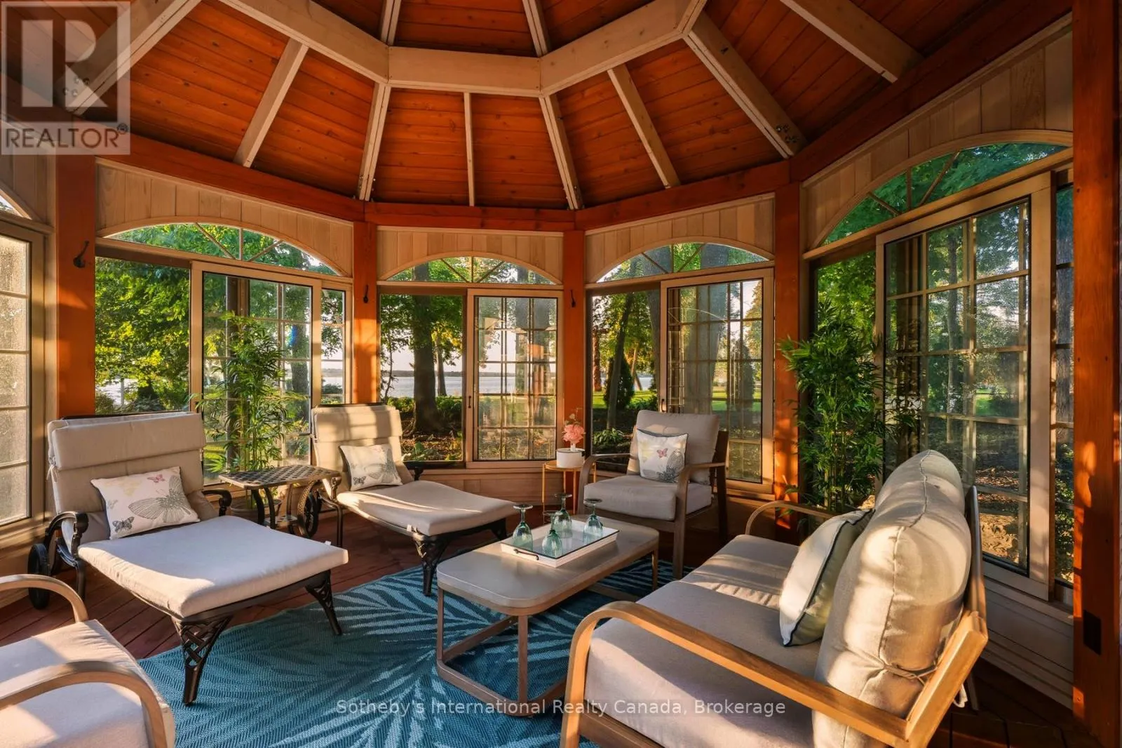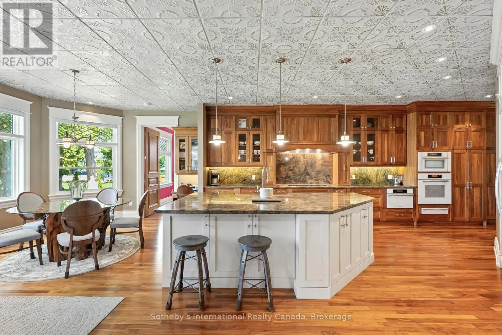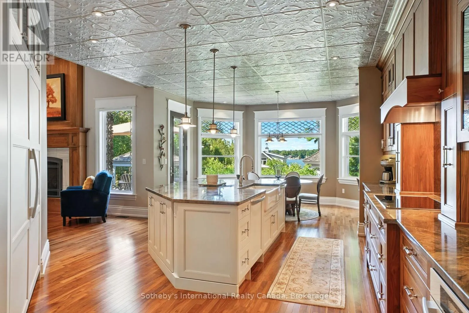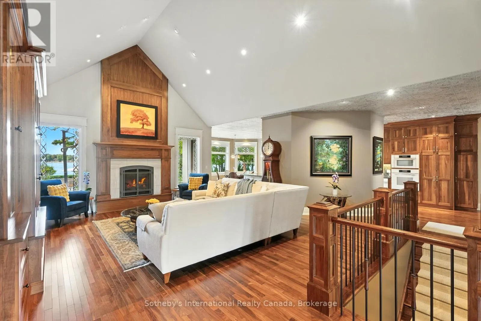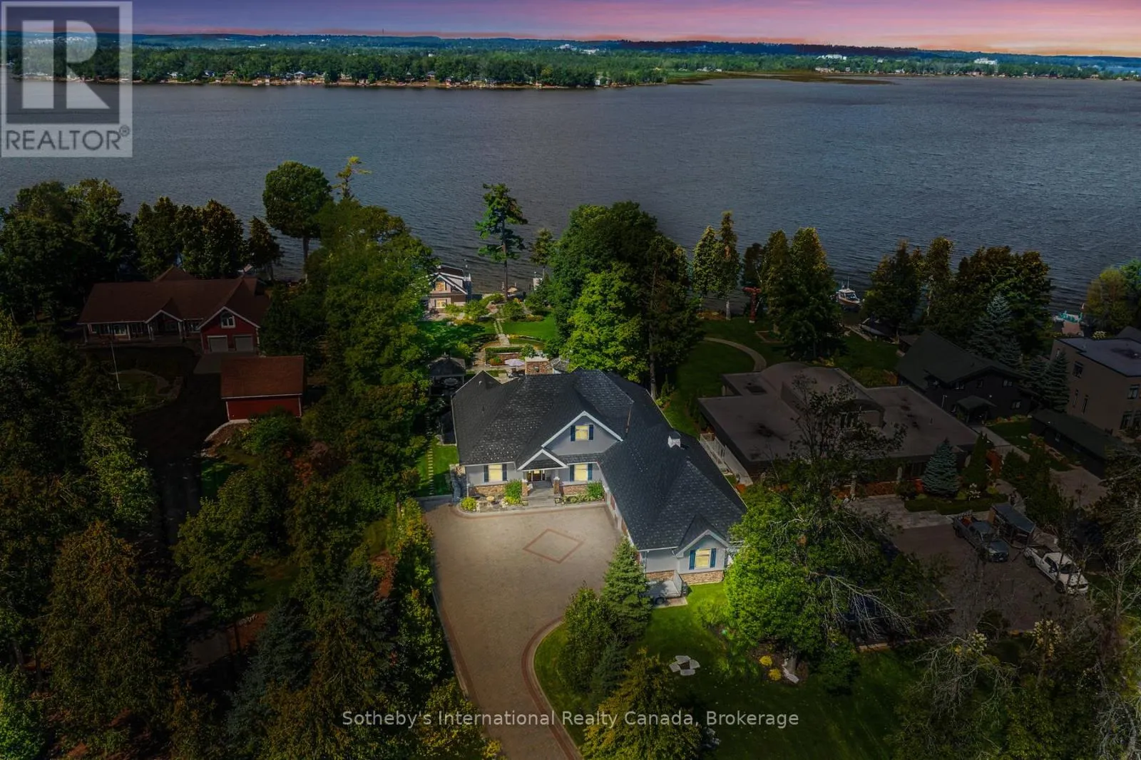 Cross Streets: Balsam Rd. ** Directions: HWY 11 to HWY 12 to Creighton St S. Curated with pure intention, exceptionally executed - here's a spectacular opportunity to own one of Lake Simcoe's most admirable waterfront estates! This custom-built residence offers over 6,000 sq ft of refined living space on 1.2 acres of professionally landscaped grounds. With 107 feet of prime WESTERN shoreline, the property is perfectly positioned for unforgettable sunsets and an unmatched lakeside lifestyle. Crafted by award-winning West Brennen Construction, the home blends timeless elegance with modern performance. Solid 8' walnut doors and flooring, intricate plaster and imported tin ceiling details, natural quartzite, granite, and leathered granite surfaces create a sense of warmth, sophistication, and enduring quality. The layout features four spacious bedrooms, a dedicated office, and five impeccably designed bathrooms, including a spa-like primary ensuite featured in House & Home magazine. The walk-out lower level offers 9.5' ceilings, a custom media room, a games area, and an English-style pub with cherry wood millwork, marble floors, and granite counters, the ultimate entertaining space. Smart home technology controls lighting, irrigation, and security, while premium mechanical systems, including 400-amp service and a 30KW Generac generator, provide year-round comfort and reliability. Outside, park-inspired landscaping surrounds an outdoor kitchen, waterfall feature, and a charming gazebo ready for a hot tub or lakeside lounging. The heated four-car garage with Rhino-coated floors and custom storage adds practicality to luxury. At the waters edge, a rare dry boathouse with finished space above offers excellent flexibility ideal for guests, a studio, or office, while two marine railways, deep water access, and twin 40' docks easily accommodate a 28' boat and Seadoos. With flawless craftsmanship, modern functionality, and an unbeatable waterfront setting, this property offers a truly elevated lifestyle where every detail has been thoughtfully executed. (id:27476)