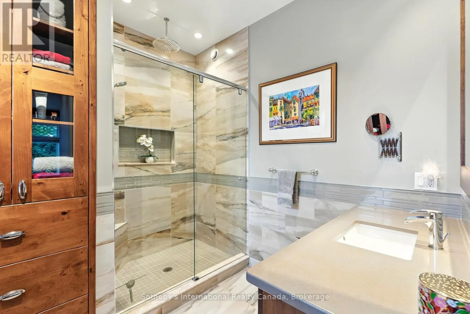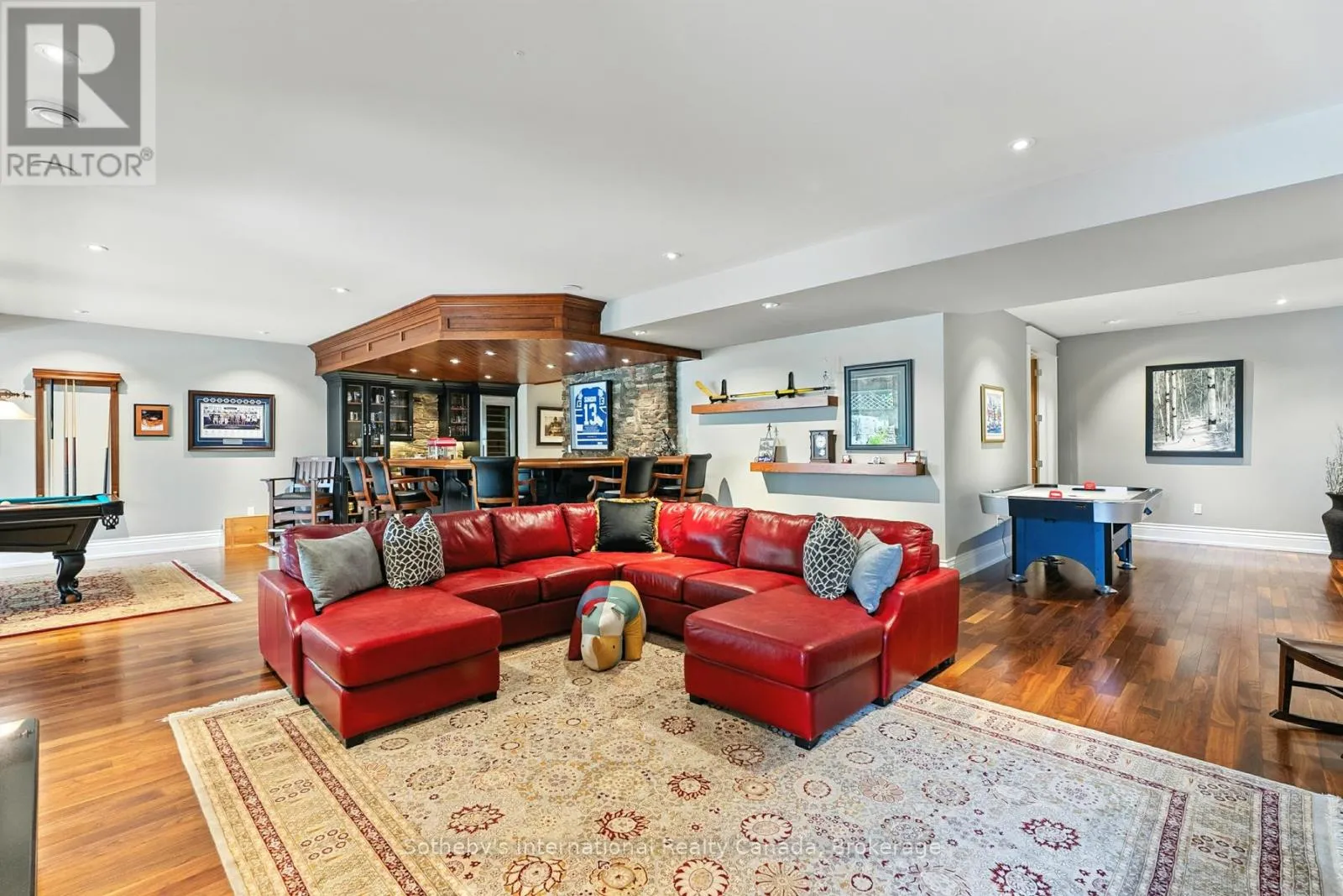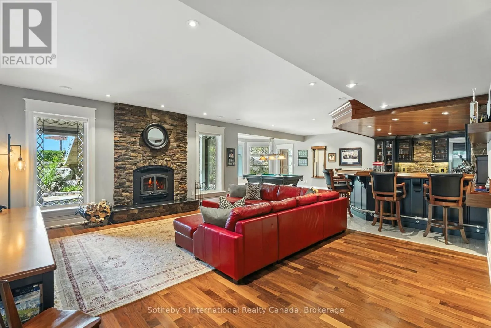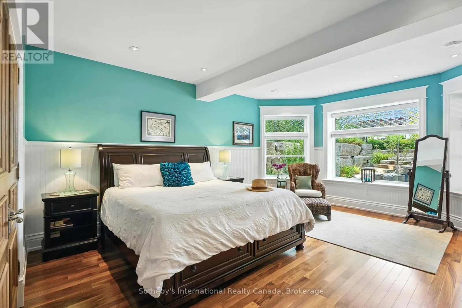 Cross Streets: Balsam Rd. ** Directions: HWY 11 to HWY 12 to Creighton St S. Curated with pure intention, exceptionally executed - here's a spectacular opportunity to own one of Lake Simcoe's most admirable waterfront estates! This custom-built residence offers over 6,000 sq ft of refined living space on 1.2 acres of professionally landscaped grounds. With 107 feet of prime WESTERN shoreline, the property is perfectly positioned for unforgettable sunsets and an unmatched lakeside lifestyle. Crafted by award-winning West Brennen Construction, the home blends timeless elegance with modern performance. Solid 8' walnut doors and flooring, intricate plaster and imported tin ceiling details, natural quartzite, granite, and leathered granite surfaces create a sense of warmth, sophistication, and enduring quality. The layout features four spacious bedrooms, a dedicated office, and five impeccably designed bathrooms, including a spa-like primary ensuite featured in House & Home magazine. The walk-out lower level offers 9.5' ceilings, a custom media room, a games area, and an English-style pub with cherry wood millwork, marble floors, and granite counters, the ultimate entertaining space. Smart home technology controls lighting, irrigation, and security, while premium mechanical systems, including 400-amp service and a 30KW Generac generator, provide year-round comfort and reliability. Outside, park-inspired landscaping surrounds an outdoor kitchen, waterfall feature, and a charming gazebo ready for a hot tub or lakeside lounging. The heated four-car garage with Rhino-coated floors and custom storage adds practicality to luxury. At the waters edge, a rare dry boathouse with finished space above offers excellent flexibility ideal for guests, a studio, or office, while two marine railways, deep water access, and twin 40' docks easily accommodate a 28' boat and Seadoos. With flawless craftsmanship, modern functionality, and an unbeatable waterfront setting, this property offers a truly elevated lifestyle where every detail has been thoughtfully executed. (id:27476)