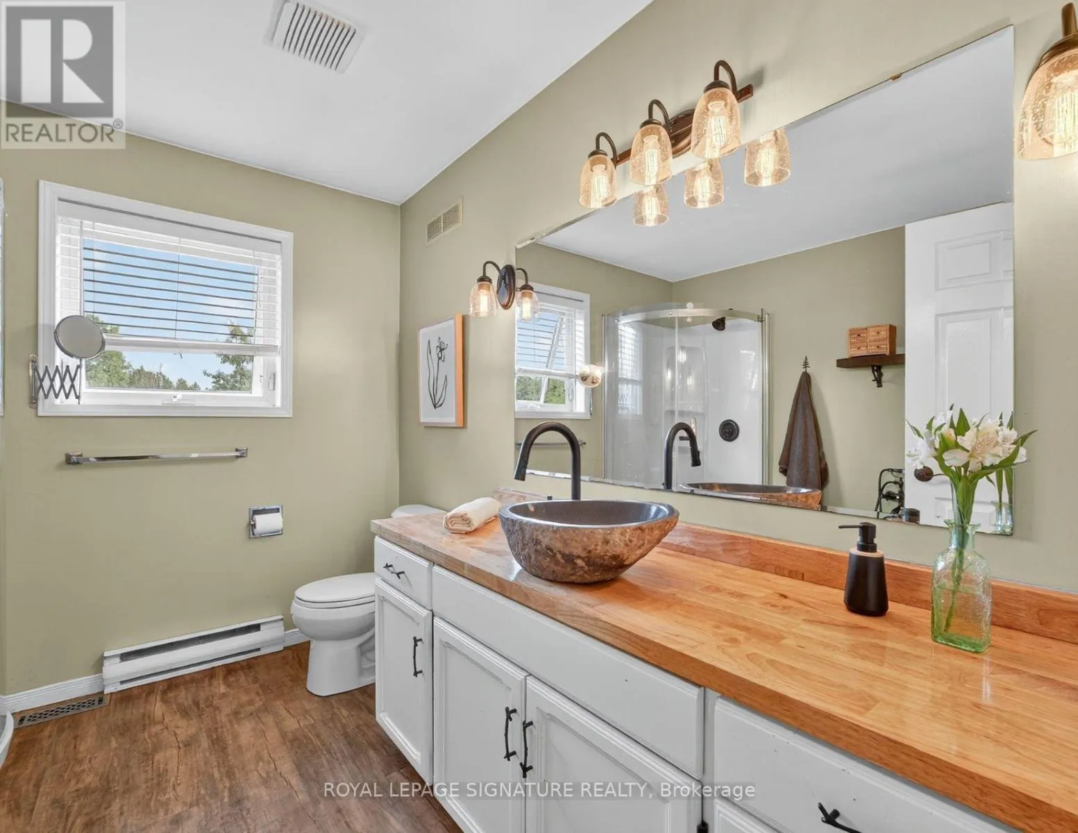 Cross Streets: HWY 12/ Concession Rd. 1. ** Directions: Turn off HWY 12, follow East Concession Rd. 1. **Escape to Your Private Country Retreat! Embrace unlimited potential on 100 sq acres in Brechin, ideal for equestrian, tree, cattle, crop, hobby farming, eco-tourism + more. This charming 1,524 sf Royal Home bungalow, built in 1991, features a spacious open-concept gourmet kitchen with new appliances and a generous dining area overlooking beautifully landscaped gardens perfect for entertaining. The front foyer with a double closet and a convenient 2-piece powder room, ideal for farm life. Unwind in the living room by the stunning stone wood-burning fireplace, creating a cozy atmosphere. The main floor also includes three spacious bedrooms, each with closets and hardwood flooring. The private primary bedroom features a modern electric fireplace and 3 large windows showcasing the breathtaking farmland. The expansive 4-piece bathroom boasts a luxurious step-in shower, a custom stone vessel sink on a butcher block countertop, and a classic clawfoot tub. The basement, filled with natural light from above-grade windows, offers vast potential for work and recreation, including a finished office/bedroom with an electric fireplace. Step outside to enjoy the great outdoors! The oversized, insulated, heated two-car garage with 100 AMP 4 breaker pony panel, perfect for all your tools and equipment. Equestrian enthusiasts will love the two paddocks, run in shed and round pen, while trails weave through the property for sustainable farming, trail rides, and hiking. A self-contained insulated cabin with a covered porch features a newly installed with high-efficiency wood stove, nestled beside the original farm silo and an operational hand pump well. This cabin allows for future expansion plans, as it can serve as a second dwelling. Benefit from the MFTIP (Managed Forest Tax Incentive Program) for property tax savings. This property is a dream for those seeking a rural oasis close to Lake Simcoe and the Trent Severn without sacrificing city proximity to the GTA. (id:27476)