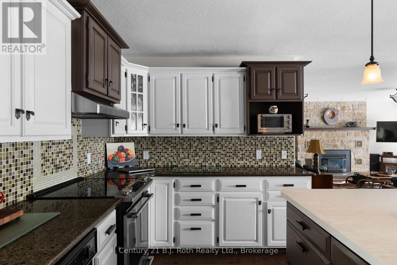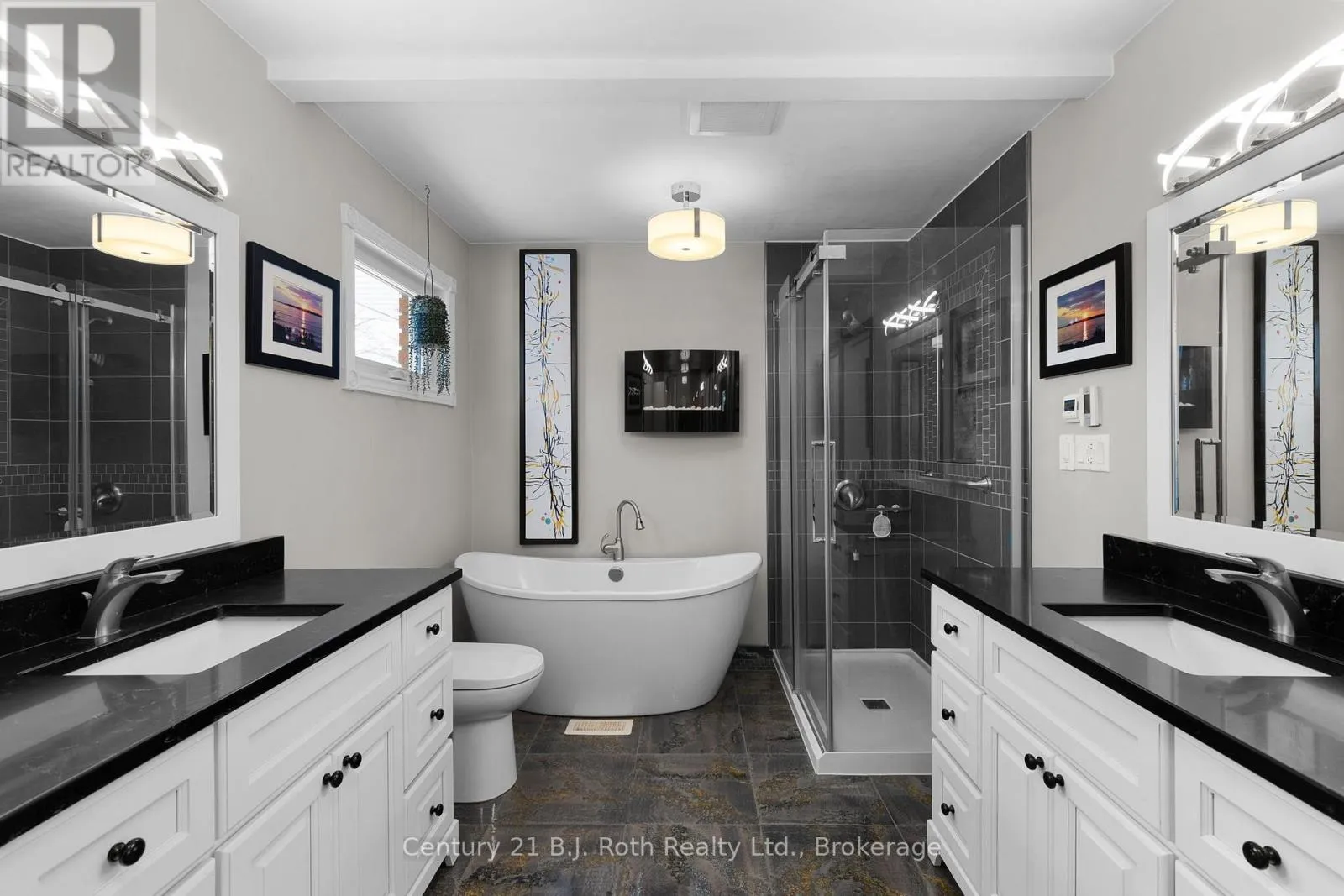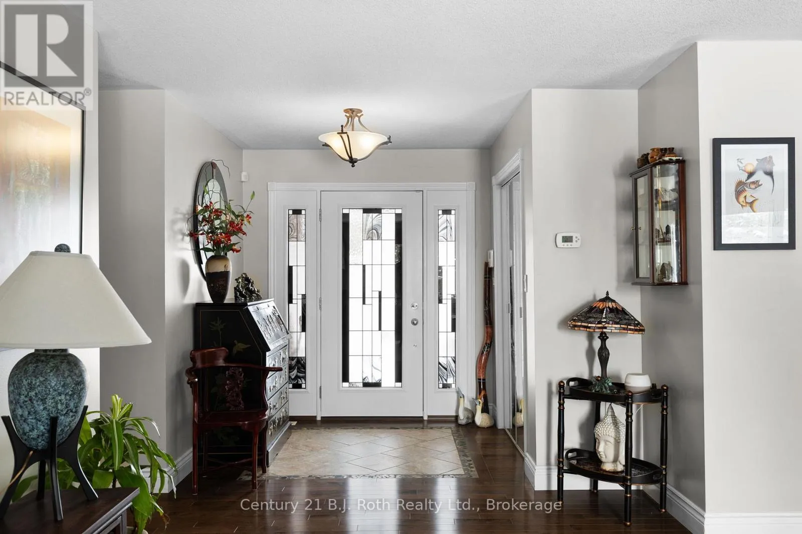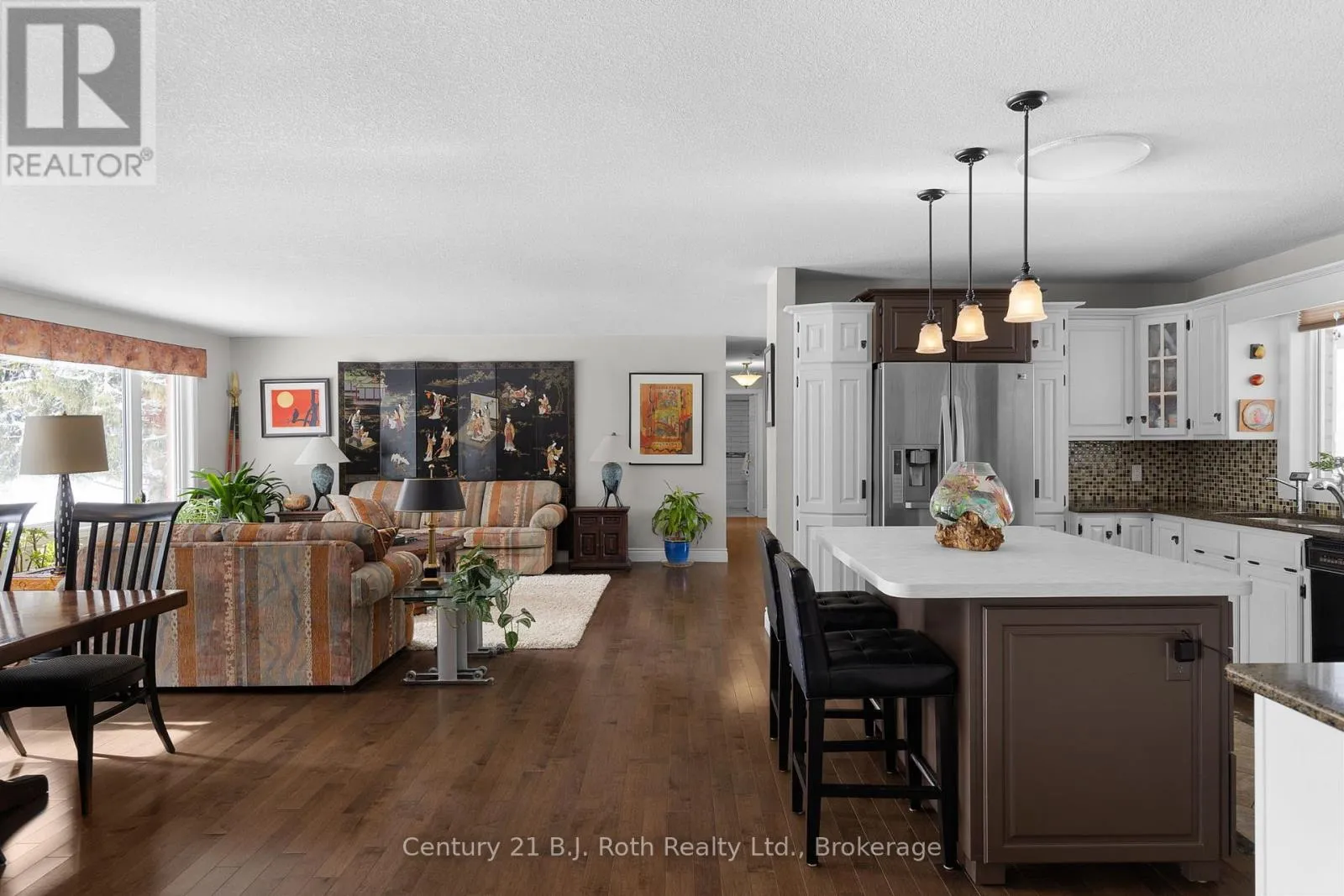 Cross Streets: Sideroad 20 & Bayshore Dr. ** Directions: Hwy 12 to Muley Point to Bayshore Village. Welcome to retreat-style living in the heart of Bayshore Village on sought-after Vicars Pond. This beautifully updated all-brick raised bungalow offers 2,256 sq ft of bright, open-concept living with three spacious main-floor bedrooms and thoughtful upgrades throughout. The quartz kitchen with custom island, heated tile floors and skylights, floods the home with warmth and light. The private primary suite feels like a spa escape, complete with a stunning 5-piece ensuite featuring heated floors, soaker tub, electric fireplace and custom closet system. A separate TV room with gas fireplace walks out to a raised deck overlooking beautifully landscaped grounds with irrigation from the pond and a raised vegetable garden. Extensive mechanical updates, whole-home water filtration, Generac generator, heated double garage, new windows and doors (2023) and new roof (2022) provide comfort and peace of mind. The MicroFIT solar system (33 panels) generates approximately $6,000 annually for the remaining 6 years - a valuable income stream transferable to the new owner. Beyond the home, enjoy a rich, vibrant lakefront lifestyle with five private shoreline parks, three protected harbour marinas, golf, pickleball, tennis, a brand new pool and an active clubhouse hosting events and activities year-round. Move in, exhale, and enjoy the all this wonderful community has to offer. (id:27476)