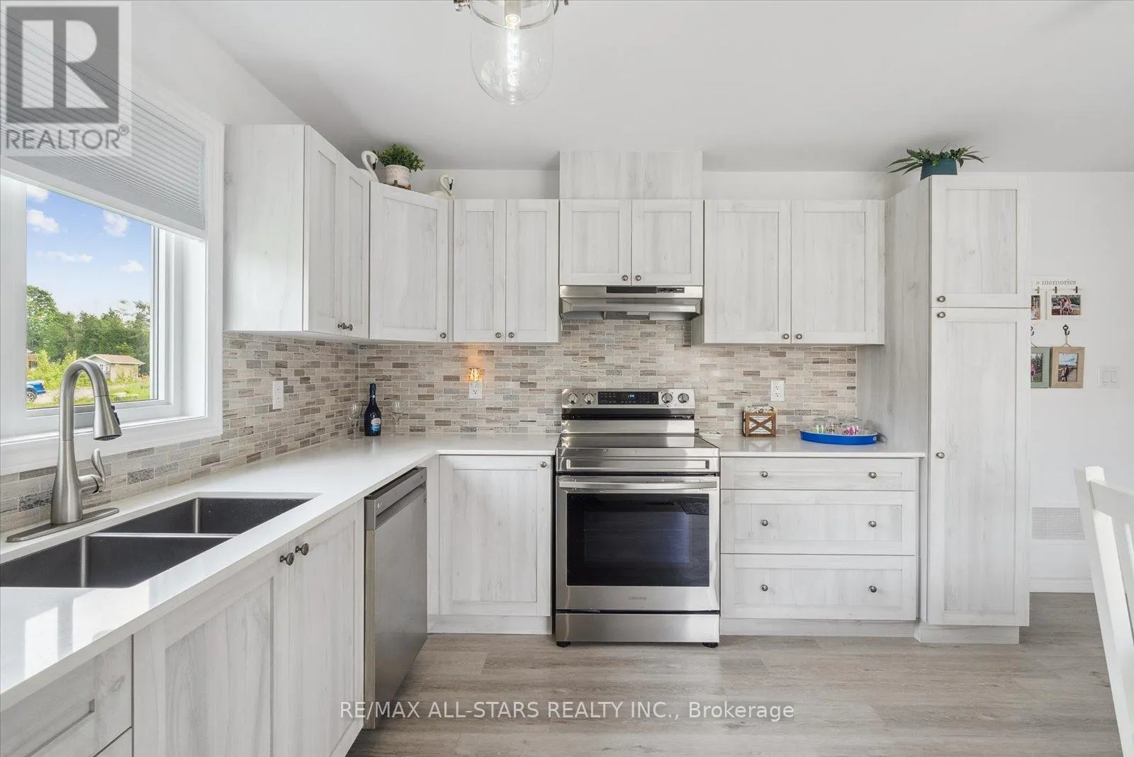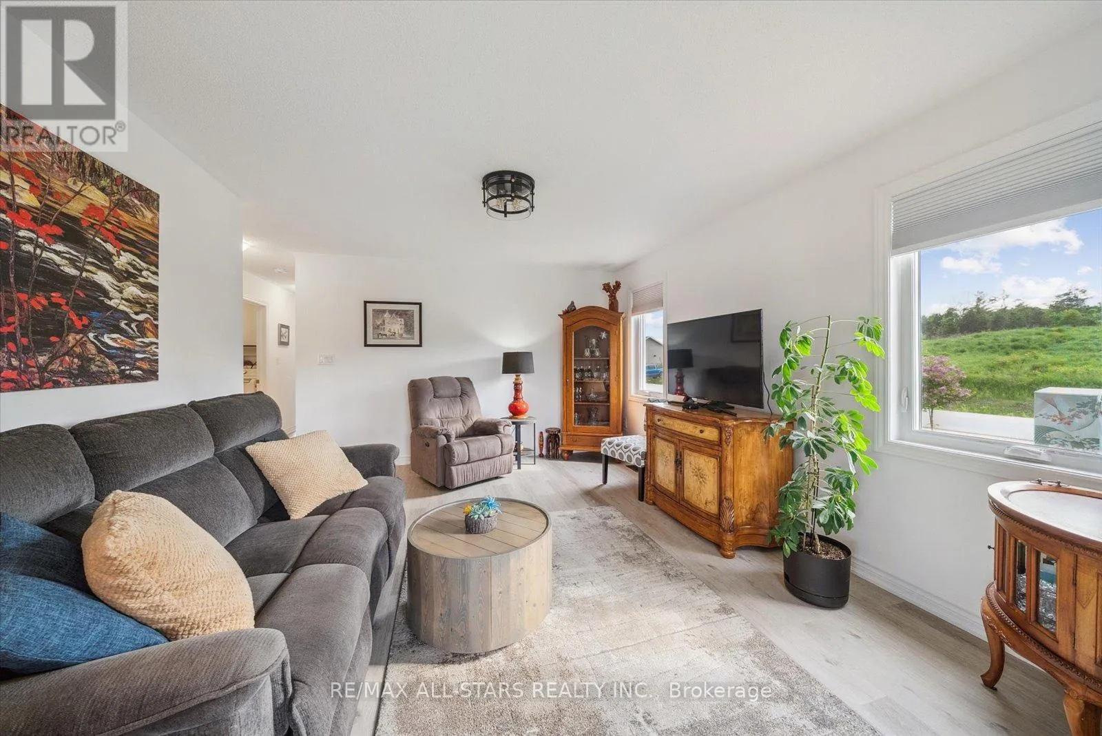 Concession Rd. 10 & Upterheights Dr. Discover this beautifully maintained 2-bedroom, 2-bathroom raised bungalow, ideally situated on a premium landscaped corner lot in the sought-after community of Lake Point Village. With charming curb appeal, a welcoming covered front porch and spacious two-tier deck, this delightful home offers comfort, style, and easy living. Step inside to a bright, generous foyer leading to a thoughtfully designed layout filled with natural light. The sun-filled living room flows seamlessly into a tastefully finished eat-in kitchen featuring quartz countertops, an under-mount sink, abundant cabinetry, and modern finishes-with a convenient walk-out to the yard, perfect for morning coffee or summer barbecues.The generous primary bedroom provides a peaceful retreat with a walk-in closet, built-in shelving, and private ensuite bath. A second bedroom and full bathroom offer flexible space for guests, hobbies, or a home office. Luxury vinyl flooring throughout, main floor laundry, and direct built-in access into the attached garage- complete with a custom pine feature wall, adding both style and practicality. Enjoy relaxing outdoors with a poured concrete patio, concrete walkway, and upgraded privacy screen with BBQ area. A custom-built cedar shed and expansive crawl space provide excellent additional storage, while the 14,000 kW Champion Generac generator provides for reliable backup power and adds valuable peace of mind. Meticulously maintained and designed for comfortable, low-maintenance living, this wonderful home is ideally located close to beaches, provincial parks, and local amenities, and just 15 minutes to Orillia and Casino Rama Resort. Enjoy the welcoming lifestyle and strong sense of community that make Lake Point Village such a special place to call home. (id:27476)