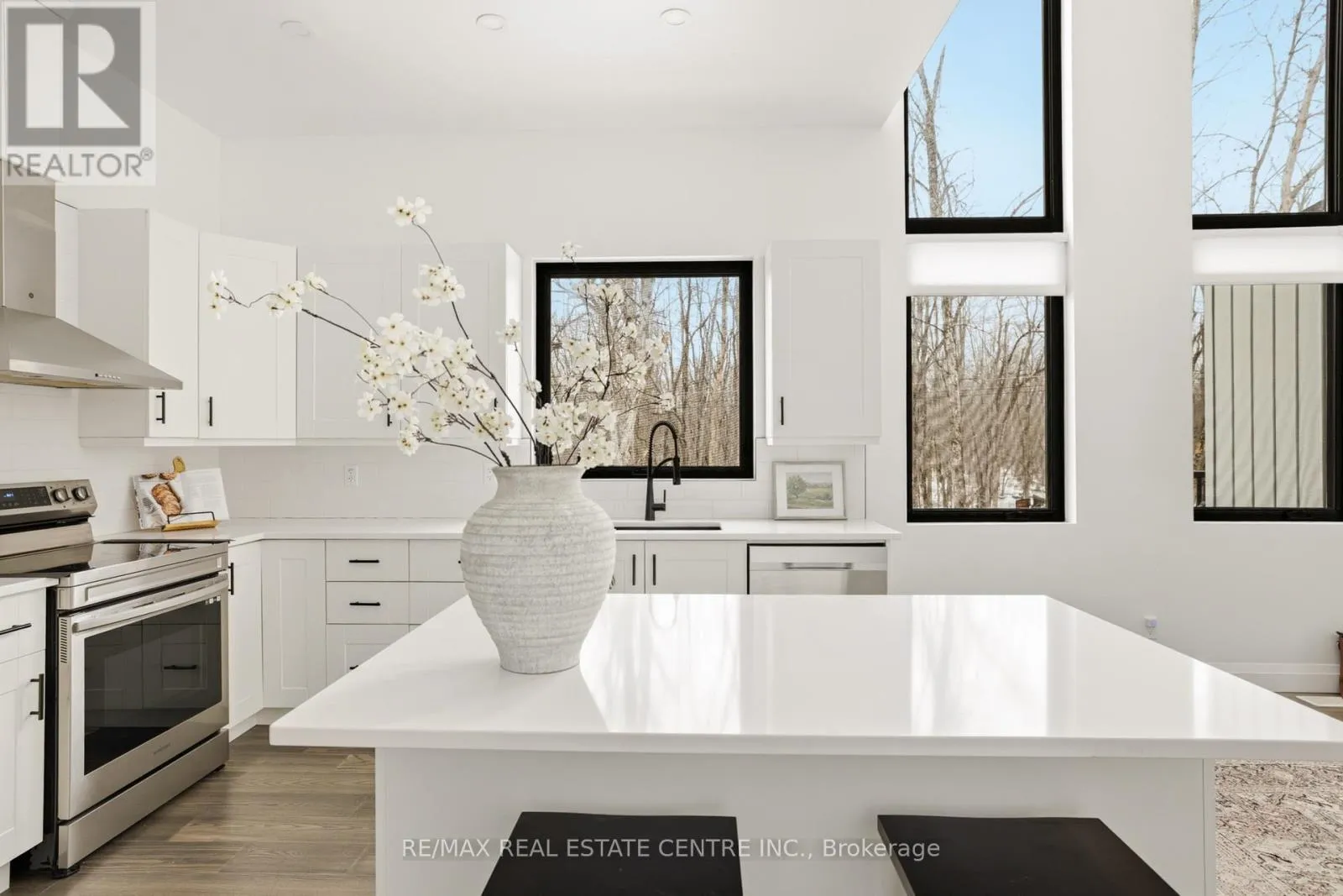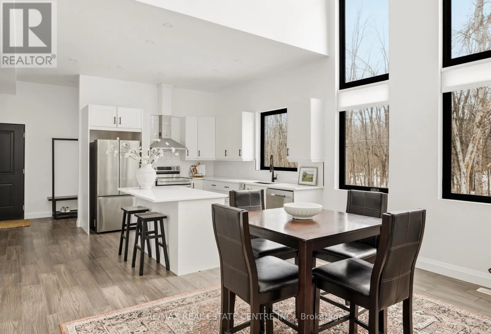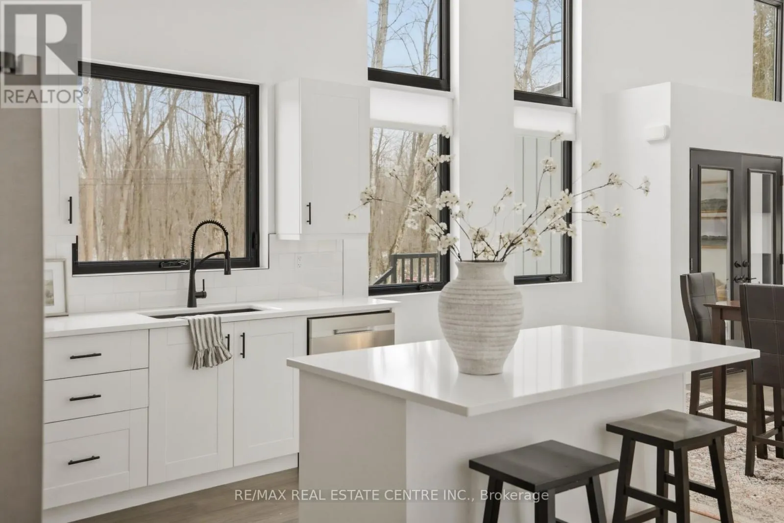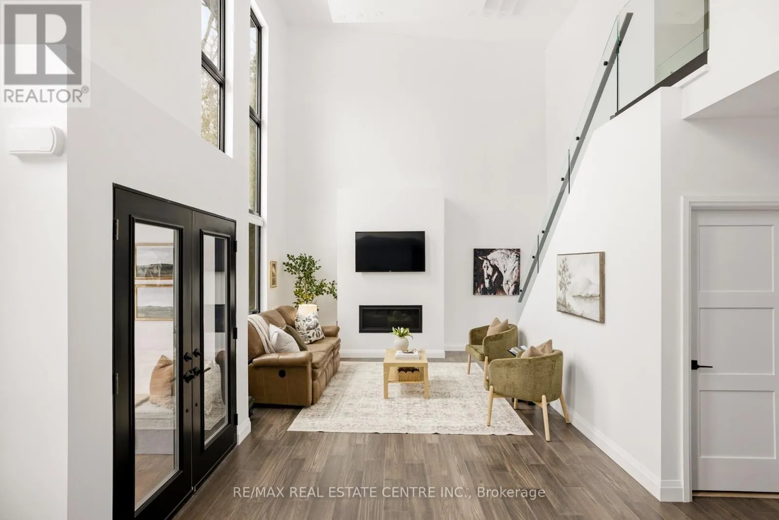 Cross Streets: Highway 12 & Concession 7. ** Directions: Highway 12 & Concession 7 to Louis Lane. There's a feeling the moment you arrive... quiet, private, surrounded by trees, and just steps from the lake. This custom built home was designed to feel different. Walk through the front doors and you are immediately struck by the scale. Soaring ceilings, walls of glass, and natural light that fills the entire space. The open concept main living area is both impressive and inviting, anchored by a fireplace and designed for real everyday living. The kitchen sits at the centre with quartz counters, a large island, and clean modern finishes that make it as functional as it is beautiful.Two bedrooms are tucked on the main level, ideal for guests, kids, or a home office. Upstairs, a glass staircase leads to a loft overlooking the main floor and a private primary retreat with a walkthrough closet and a stunning five piece ensuite with a soaker tub and glass shower. Built to last with steel construction, ICF foundation, and a metal roof. The unfinished basement offers nine foot ceilings and a rough in for a future bathroom. Set on a private 0.6 acre treed lot, this property offers space, privacy, and a lifestyle that feels removed while still being under twenty minutes to Orillia and an easy drive to the GTA. Not just a home, a place to slow down, unwind, and live differently. (id:27476)