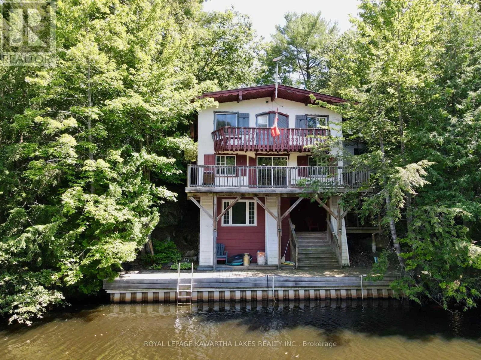 FAIRGROUNDS & BIRCH Escape the city and experience true waterfront living on the Black River. Set on a private, tree-lined lot with over 100 feet of direct frontage, this chalet-style property offers a peaceful setting, deep shoreline, and your own private dock-perfect for boating, paddling, or simply unwinding by the water. Surrounded by nature, the property invites you to slow down and enjoy the outdoors-whether it's morning coffee on the balcony, evenings by the river, or relaxing in the cedar sauna. Inside, the home offers a functional layout with multiple walk-outs that connect you to the natural surroundings, along with warm touches like hardwood flooring and a cozy propane fireplace. With a detached garage, ample parking, and a separate bunkie for guests or additional space, the property provides a solid foundation for those looking to create something special in a sought-after waterfront location. Just minutes to Washago and a short drive to Orillia, this is a rare opportunity to secure direct waterfront and make it your own. (id:27476)