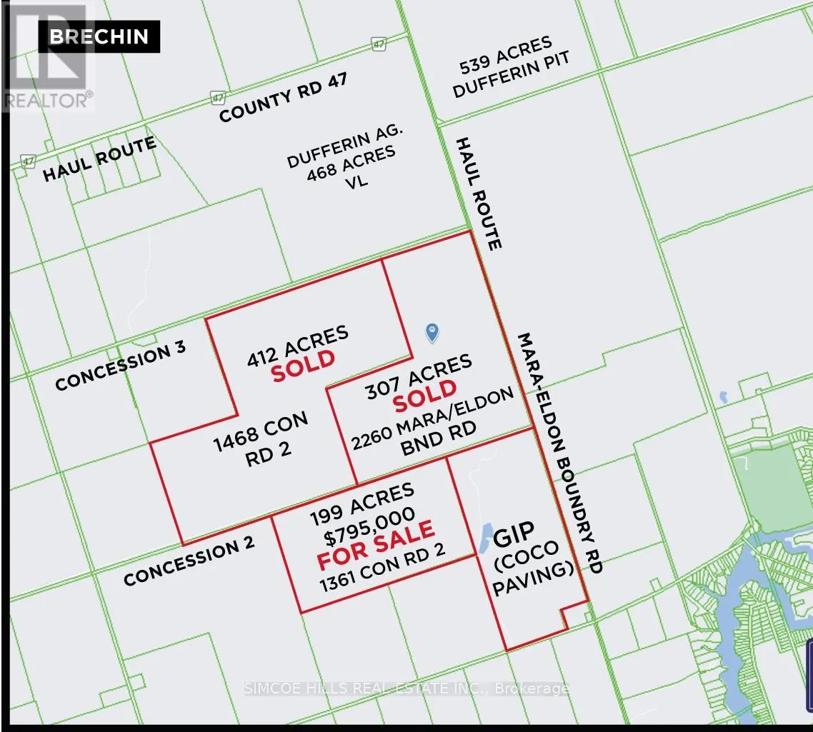 Cross Streets: Hwy 12 and Con Rd 2. ** Directions: Hwy 12 to Con 2. NEW PRICE! Last 6/10K of Con Rd 2 is "unassumed" by the Twp of Ramara. The road is not maintained or plowed in the winter. Because it is unassumed you would be unable to obtain a Buidling Permit, The property is most suited for a quarry operation (id:27476)