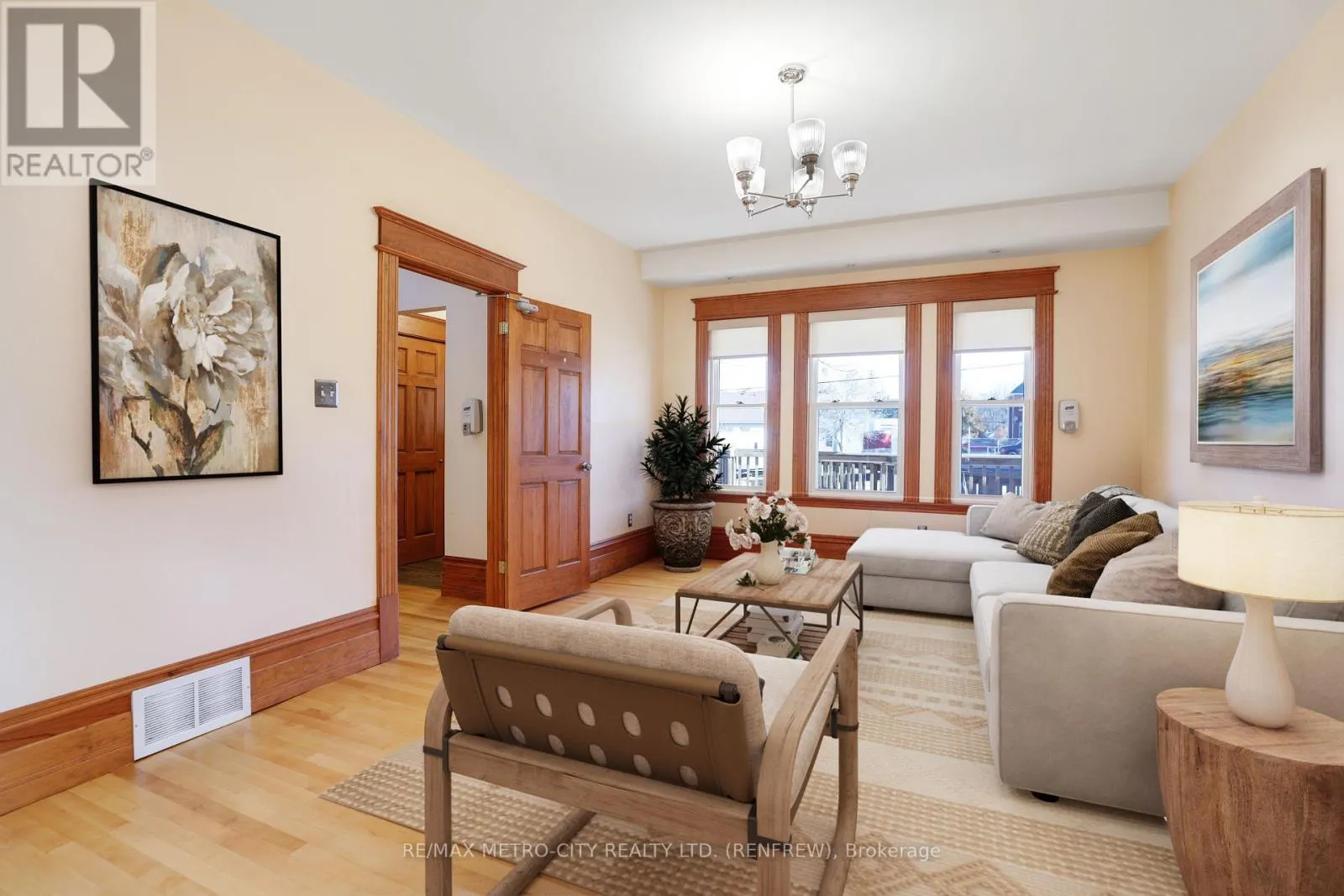 Cross Streets: Argyle St North. ** Directions: Follow Raglan St to Argyle & follow to #94. Seize a truly unique opportunity to own a magnificent 3-storey solid brick building in a prime location just steps from downtown Renfrew. This stately property offers the best of both worlds with its C1 and Residential zoning, making it perfect for an owner-operator, a live-work setup, or a savvy investor. Meticulously maintained and boasting a recent new roof and numerous high-end upgrades, this turn-key building is ready for its next chapter. Designated for both commercial and residential use, providing unlimited flexibility (e.g., professional offices, boutique retail, high-end residence, or a combination). A spacious layout featuring 4 large bedrooms and 3 beautifully finished bathrooms. High ceilings, exquisite original wood trim finished to perfection, and a timeless, warm ambiance throughout. The main floor offers a versatile open concept, complete with laundry facilities and ample space that was recently utilized by an internal medicine specialist, demonstrating its suitability for various professional services. The property also features wheelchair accessibility and two separate entrances for optimal client/tenant flow. A full, functional kitchen makes it an ideal place to call home. The expansive 3rd floor is an unfinished, open-concept loft, offering a blank slate for an incredible primary suite, a grand home office, an artist's studio, or additional rental income potential. Enjoy the convenience of being close to downtown Renfrew, offering easy access to local amenities, shops, and restaurants. The property's recent upgrades ensure peace of mind for years to come. Don't miss the chance to invest in this architectural gem that blends historic beauty with modern functionality. Schedule your private viewing today! (id:27476)