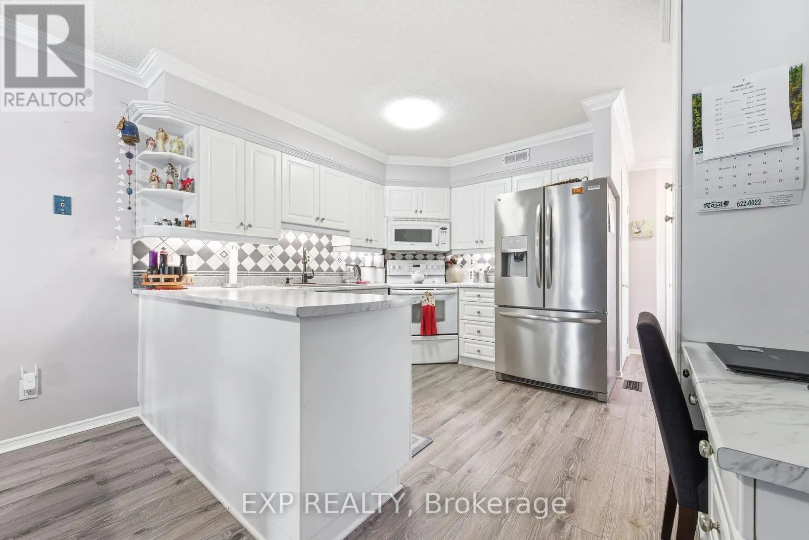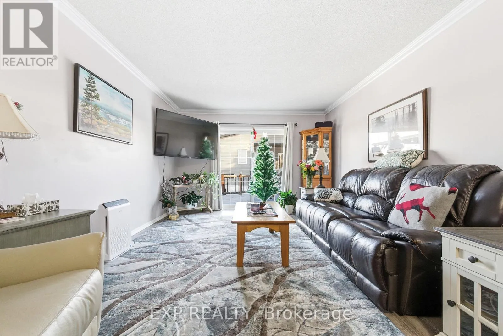 Cross Streets: Mayhew St and Hall Ave. ** Directions: FRom Hwy 17, Take O'Brien Rd exit. At the second stop light , turn right onto Gillan Rd. Follow Gillan Rd to Ave Hall, left onto Hall Ave and then immediately left on to Mayhew ST. Corner of Hall AVe and Mayhew St. Welcome to this beautifully maintained end-unit bungalow garden home, offering comfort, convenience and a more carefree lifestyle. The double driveway allows extra parking space for guests or multi-vehicle households. Step inside to a bright, inviting layout with two bedrooms and 2 full baths, perfect for downsizing, first time buyers or anyone seeking easy one-level living. The open concept kitchen/dining/living area opens onto full width rear deck, which becomes another living space in the nice weather. An exterior storage shed adds bonus storage for seasonal items or gardening tools. The finished lower level offers a generous family room, providing fabulous flexibility for movie nights, a hobby area, gym or additional living space. This home truly checks all the boxes- don't miss your opportunity! Please allow 24 hr irrevocable on all offers. (id:27476)