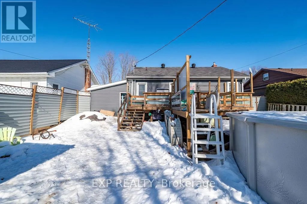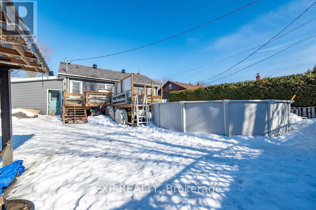 Cross Streets: Veterans Memorial Blvd & New Street. ** Directions: From highway 17, turn onto O'Brien Road. O' Brien Road turns into Veteran's Memorial Blvd. Follow to New Street and Turn Right. Step into this charming vintage-eclectic bungalow that perfectly blends character, comfort, and functionality. This inviting 2-bedroom, 1-bath home offers a warm and welcoming atmosphere with thoughtfully designed creative storage solutions throughout, making the most of every space. Enjoy the added convenience of main floor laundry, making everyday living easy and efficient.The kitchen is a standout for home chefs, featuring a gas range and double wall oven, ideal for preparing family meals or entertaining with ease. Downstairs, the basement offers excellent potential to be fully finished, providing the opportunity to expand your living space to suit your needs.Outside, the home continues to impress with beautiful curb appeal and a spacious, private fully fenced backyard designed for summer enjoyment. Relax or entertain on the generously sized deck, take a dip in the above-ground pool featuring walk-in stairs for easy access, and make use of the convenient natural gas BBQ hookup for effortless outdoor cooking. (id:27476)