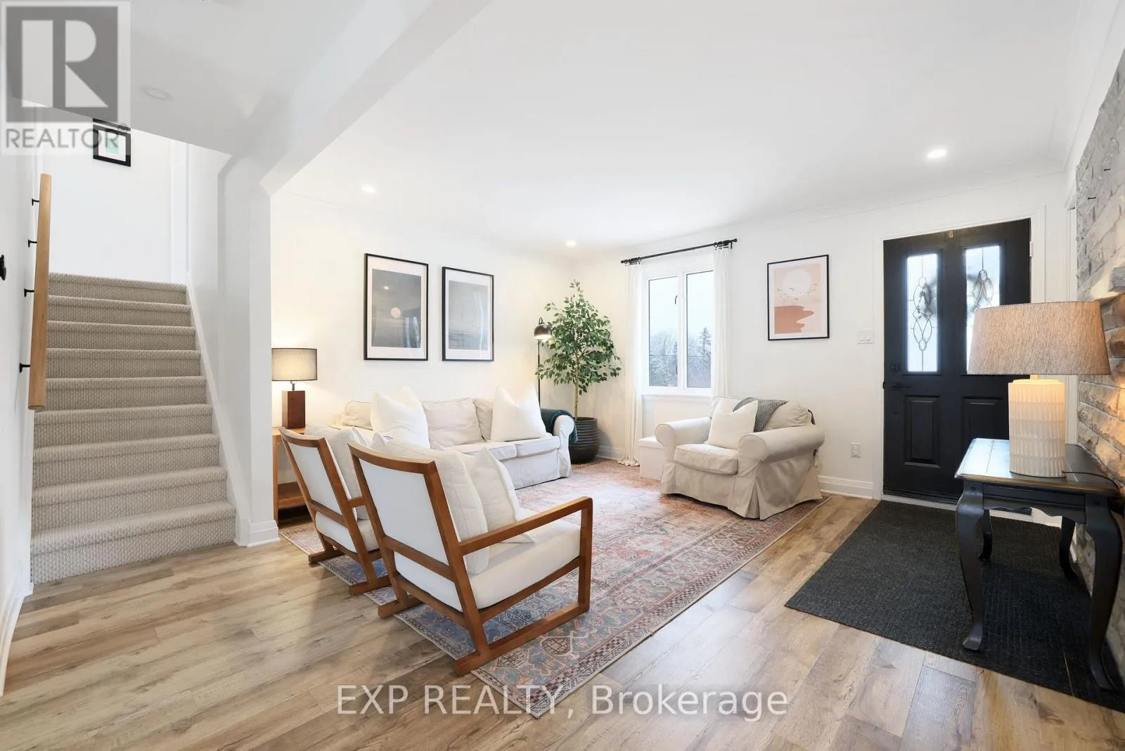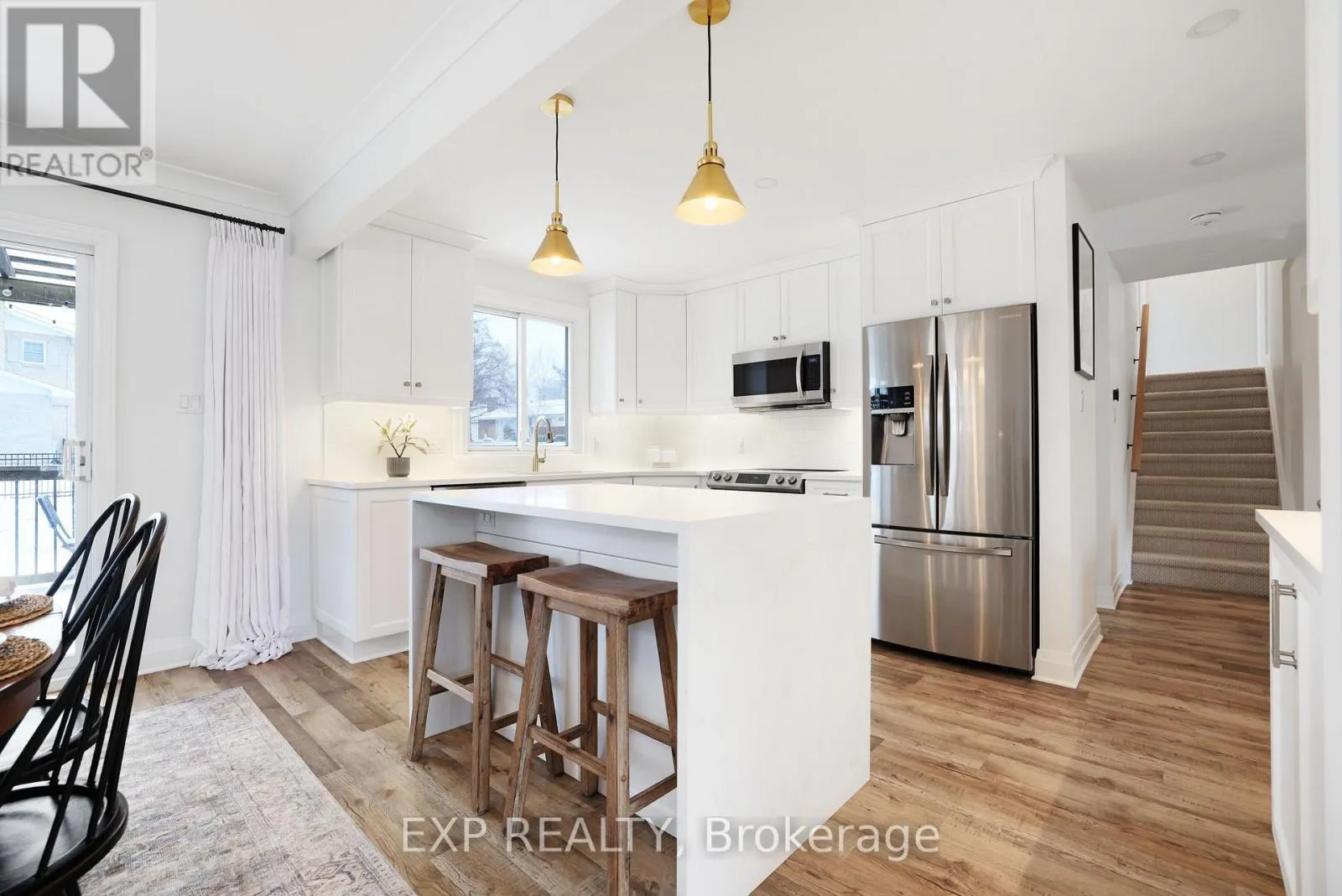 Cross Streets: Munroe. ** Directions: From Munroe ave. take Stevenson Cres. Not just renovated - refined, reimagined, and ready to impress. Set on a generous corner lot in one of the area's most desirable neighbourhoods, this fully transformed home offers both presence and practicality, with dual driveways, an attached garage, and a layout designed for modern living. Inside, a Scandinavian-inspired palette of soft, creamy tones creates a calm, cohesive feel throughout. The main level features a bright living room that flows into a beautifully redesigned kitchen with quartz countertops and stainless steel appliances. The spacious dining area extends through patio doors to a large outdoor patio - complete with pergola which steps onto a newly built deck and privacy wall - creating a seamless extension for outdoor entertaining. A warm sitting area with a stone fireplace adds character and flexibility to the space. The split-level design offers architectural interest and function, including a light-filled loft ideal for a home office or optional bedroom. Upstairs, the fully renovated main bath showcases a soaker tub, walk-in tiled shower, and timeless finishes. The primary bedroom is generously sized, with additional well-appointed bedrooms nearby. The fully finished lower level adds versatility with a family room, extra bedroom, and 3-piece bath - perfect for guests, teens, or multi-generational living. With a brand new roof (2026) and a complete interior renovation, this home offers true peace of mind and a move-in-ready lifestyle. Ideally located, walkable to downtown shops, restaurants, and everyday conveniences and steps to Central Public School. Refined, and entirely renewed - this is a home that quietly stands apart. Experience it in person - private showings available by appointment. (id:27476)