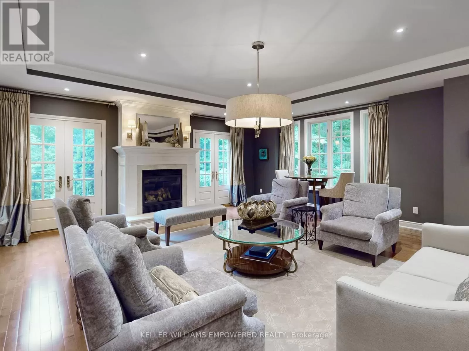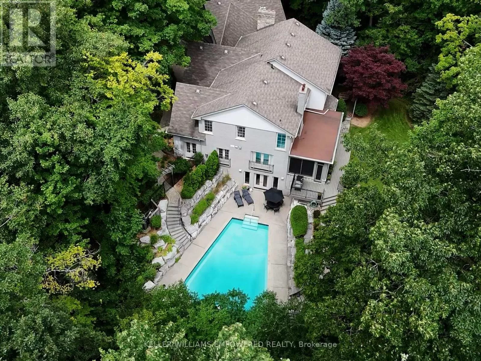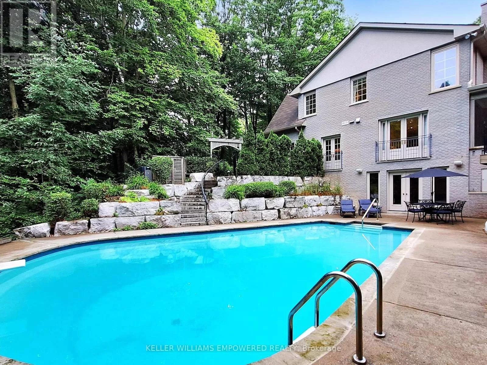 Bayview Ave / Stouffville Road Custom built estate home nestled amongst 4.43 acres of towering trees in prestigious Exclusive Estate Community. This remarkable home features great upgrades incl: pot lights, crown moulding, wainscoting, multiple walk-outs, large windows w/panoramic views & numerous fireplaces. Stunning kitchen, family rm & primary bedroom was designed by Jane Lockhart. The renovated kitchen is a modern masterpiece w/valence lighting, walk-in pantry, coffee station & high-end built-in appliances featuring a cabinet facade. Ideal for entertaining, the kitchen also has a large island, cozy fireplace and a breakfast area with access to a Muskoka room. The sun-drenched Muskoka room has gorgeous views of the serene rear grounds & boasts access to a deck overlooking the pool area. Spacious mudroom with access to the garage and private access to the In-Law suite that has a spacious living room, private bedroom & ensuite bathroom. The formal dining room with corner display units that feature glass shelving and accent lighting. Immaculate sunken living rm is complete with coffered ceilings, built-in wall unit with ample storage, shelving and countertops for display. Spacious family rm boasts cork flooring & W/O to private deck. The finished, walk-out lower level is an entertainer's dream with a spacious, open concept recreation room, games room featuring a built-in seating booth, private gym with mirrored walls, a cantina and a wet-sauna. The fully landscaped rear grounds boasts multiple entertainment areas with an inground pool overlooking a private lush forest as a backdrop. Large armour stones provide ambiance of being at a Muskoka retreat as well provide beautiful garden beds for seasonal & perennial plants. The upper entertaining patio enjoys private views of the property & multiple access points to the indoor for effortless entertaining. The front grounds is a natural beauty with towering trees, circular driveway, lush gardens & a grand exterior vestibule for an added taste of luxury. (id:27476)