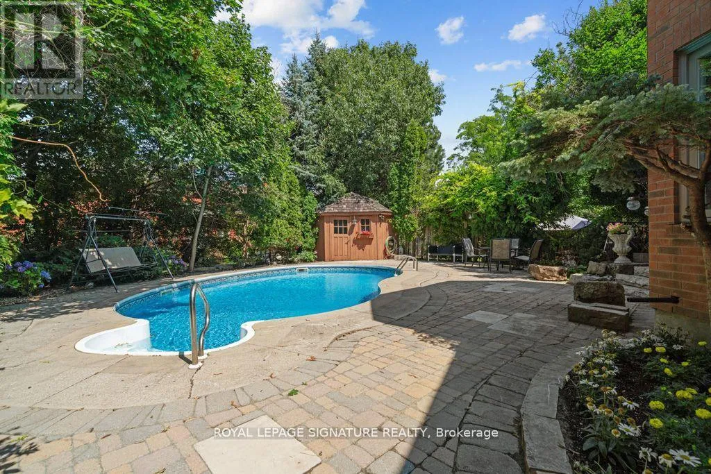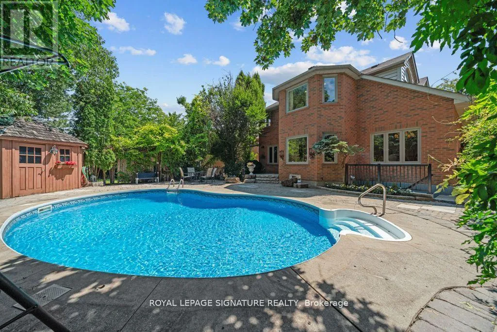 Yonge & Elgin Mills This stunning and spacious home is one of the largest in the Westbrook neighbourhood, located in the heart of Richmond Hill. The elegant entrance features a remarkable round staircase that is a rare find. The ground floor boasts ultra-high ceilings, enhancing the main entrance area.The large combined living and dining room overlooks the backyard, while the beautiful family room features wooden built-in shelves and a fireplace. The family-sized gourmet kitchen offers granite countertops and is complemented by a sizable breakfast area that provides a view of the lovely backyard, which includes an in-ground swimming pool and cabanas perfect for family gatherings and summer entertainment. Dont miss the opportunity to see this beautiful and remarkable house!! (The basement is not included.) (id:27476)