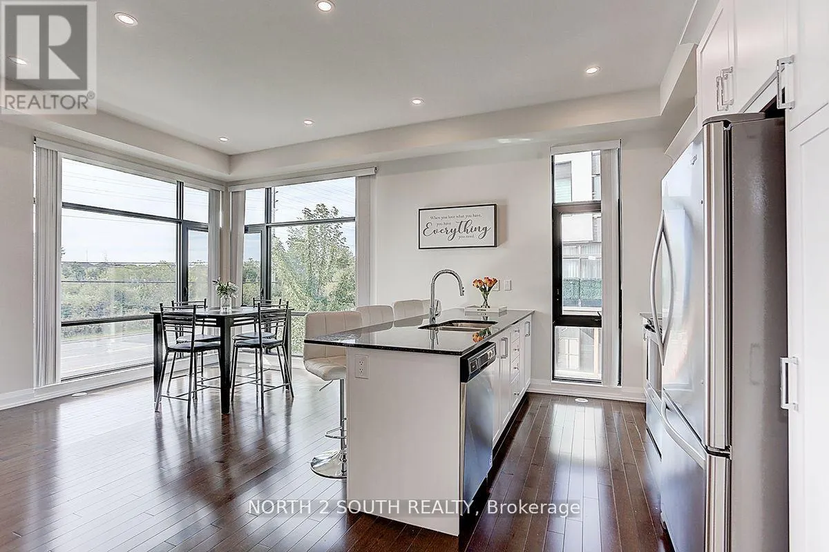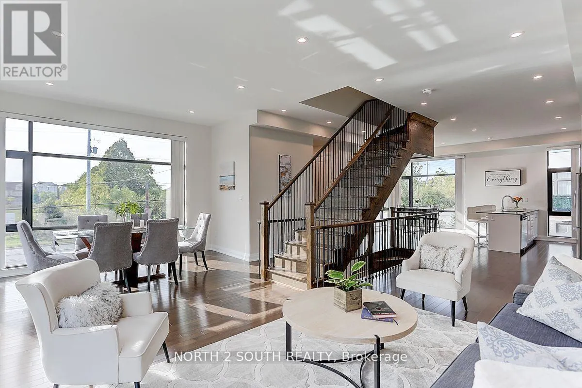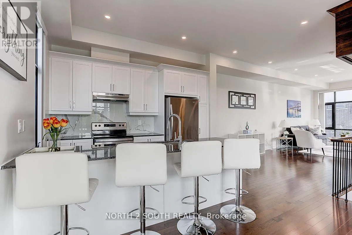 Bathurst St & Weldrick Rd W Beautifully upgraded end-unit townhouse featuring approx. 2,400 sqft of bright, open-concept living space. Stunning exterior with brick, stone, stucco & wood finishes. Oversized windows flood the home with natural light. Functional layout with large living & dining areas perfect for any family. Modern gourmet kitchen with granite counters, S/S appliances, breakfast bar & brand-new backsplash. Features include hardwood floors, smooth 10ft ceilings, pot lights throughout, wrought iron railings, granite counters in all bathrooms & upper floor laundry. Walk-out basement with ground floor garage access. Conveniently located near public transit, top schools, community center, hospital, places of worship, and minutes to Hwy 7 & 407. Move-in ready! (id:27476)