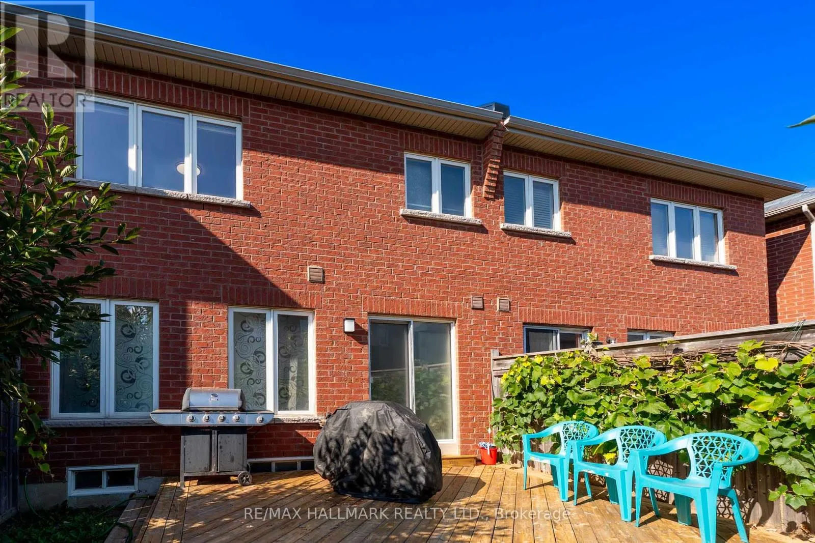 Bathurst & Tower Hill Beautifully maintained 3-bedroom freehold townhome in a highly sought-after location! Featuring updated lighting, fresh paint, modern kitchen backsplash, and a cleaned deck ready for entertaining. Spacious eat-in kitchen with S/S appliances, gas stove, and walk-out to deck. Elegant formal dining room with decorative stone fireplace mantle and wainscoting. Large primary suite with walk-in closet, 4-pc ensuite with soaker tub & separate shower. Generous bedrooms with double closets. Partially finished basement with rec room & separate entrance. Fully fenced yard with deck & storage shed. Walking distance to highly rated schools and French Immersion. (id:27476)