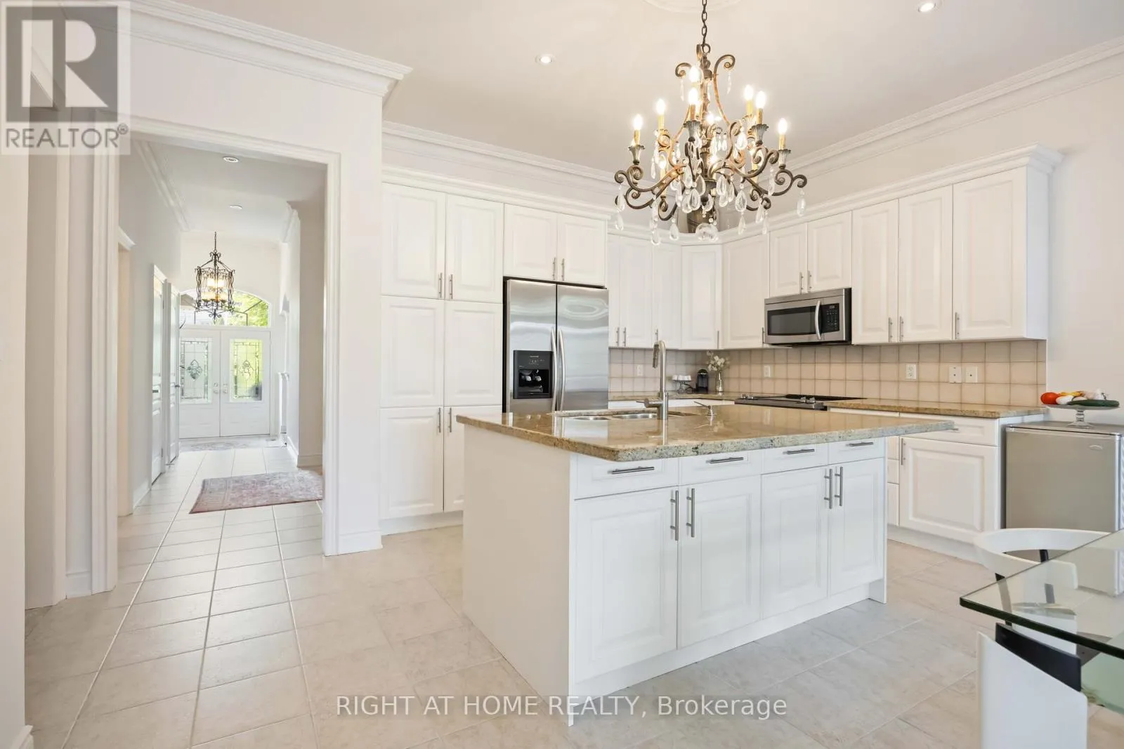 Cross Streets: Bayview & Bloomington Rdoad. ** Directions: Bayview & Bloomington Rd. Welcome to this luxury bungalow in Oak Ridges near Lake Wilcox, offering over 4,000 sq. ft. of living space and a bright south-facing backyard. The home features a grand double-door entry with clear glass, a spacious foyer with soaring 12-ft ceilings, 10-ft ceilings on the main level, and 8-ft ceilings on the lower level. The open-concept living and dining room showcases large windows with beautiful front views. The family room, with a fireplace, creates a warm and inviting space. The kitchen includes granite countertops, stainless steel appliances, and a cozy breakfast area that leads to the deck and backyard. The primary bedroom on the main floor is generously sized, providing enough space for a king-sized bed and additional furnishings. The second bedroom on the main floor has an ensuite and is well-proportioned, offering room for a queen-sized bed, bedside tables, and more furniture. The third bedroom on the lower level comes with a large closet and laminate flooring. It is a private and cozy space, perfect for guests or as a permanent bedroom. The lower level is a versatile and spacious area that can serve various purposes, including a recreation room, home office, or in-law suite. This space features a wet bar that blends seamlessly into the lower level, with sleek cabinetry, a built-in sink, and a fridge. With laminate flooring throughout, large windows for natural light, and walk-out access to the backyard, this area is great for entertaining or additional living space. A 3-piece bathroom is conveniently located off the open space. Two bedrooms are on the main level, while the third bedroom is on the lower level. (id:27476)