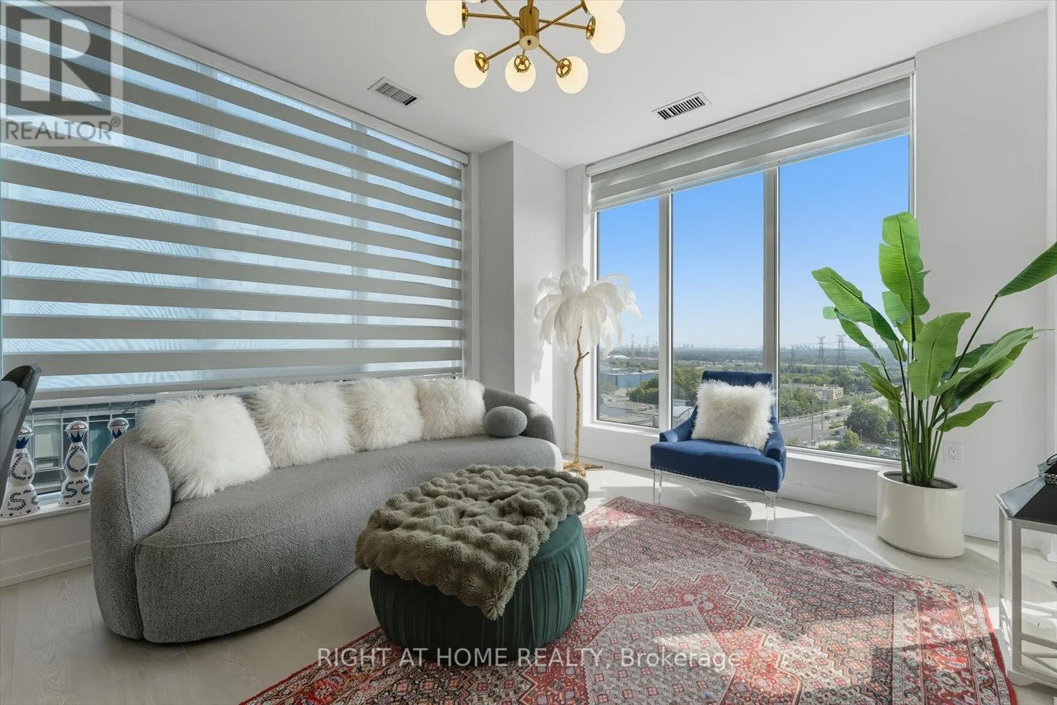 Cross Streets: Yonge & Hwy7. ** Directions: Yonge & Westwood. Welcome to Westwood Gardens, where modern living meets everyday convenience at Yonge and Highway 7. This upgraded 2-bedroom, 2-bathroom corner suite is filled with natural light thanks to soaring high ceilings and floor-to-ceiling windows, offering a bright southeast exposure and clear, unobstructed views all the way to downtown Toronto. Inside, you'll find light-toned floors, designer lighting, and beautifully upgraded bathrooms. The expansive primary bedroom features a private ensuite and easily fits a king-sized bed, creating a perfect retreat. The second bedroom is equally spacious, while the gourmet kitchen is a centrepiece with stone countertops, a sleek island with storage, and a modern tile backsplash, ideal for both entertaining and everyday living. Step out onto your private balcony and enjoy panoramic skyline views, including downtown Toronto. At Westwood Gardens, residents enjoy resort-style amenities such as a fitness centre, indoor basketball court, sauna, yoga studio, party room, and pet spa/dog wash. With Cineplex Plaza and Yonge Street shops and dining just outside your door, plus highways, Langstaff GO, and the future Yonge North Subway extension, this home offers the perfect blend of luxury, lifestyle, and long-term value. This isn't just a condo, it's a home where every detail elevates your lifestyle. (id:27476)