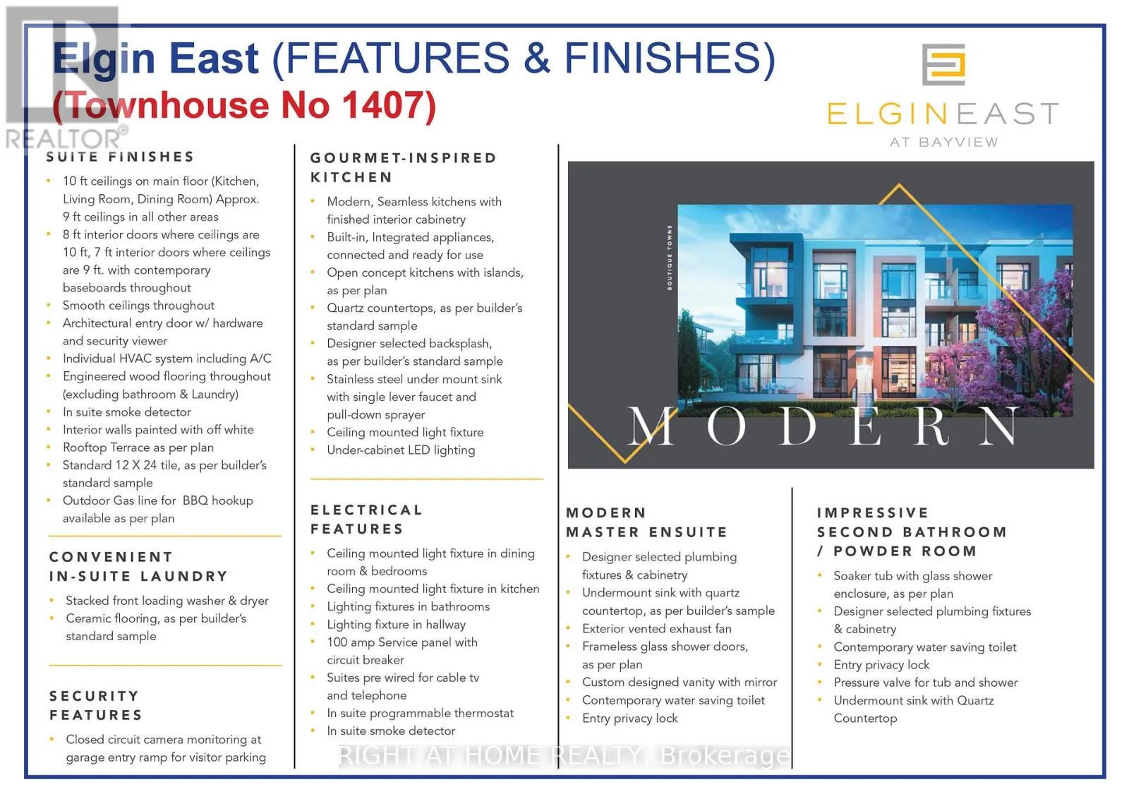 Cross Streets: Elgin Mills Rd. East & Bayview Ave. ** Directions: North East of Elgin Mills Rd. East & Bayview Ave. New Condo Townhouse at Elgin East by Sequoia Grove Homes in Prime Richmond Hill, Stunning Residence, 10 Ft Ceilings on the Main Floor(Kitchen, Living Room, Dining Room),9 Ft Ceilings in All other Areas. Back To Back Condo Townhouse Upper Model,1,268 SqFt + 364 SqFt Outdoor Space, Excellent Layout, Smooth Ceilings Throughout,2 Walk-In 7x3 Ft Balconies, and 23x14 Ft Private Rooftop Terrace with Outdoor Gas Line for BBQ Hookup, Open Concept Kitchens with Island and Quartz Arctic Sand Countertop, Designer Selected Plumbing Fixtures & Cabinets. Close To Richmond Green Park, Public Transit, Schools, Recreation, Walmart, Costco, 2 Mins To 404.Prime Urban Address On Bayview Ave. Rare Opportunity To Rent In North-East Corner Of Elgin Mills And Bayview!! 1 Underground Parking + 1 Locker. Rental Fee Includes Maintenance of All Common Areas, 1 Parking, 1 Locker, Snow Removal, and Landscaping. Tenant is Responsible For $159 + HST per month Fee For Unlimited High-Speed Internet, Hot Water Tank, Heating, and Cooling Systems Rental Equipment. Tenant Also Responsible for Gas, Water, and Electricity. (id:27476)