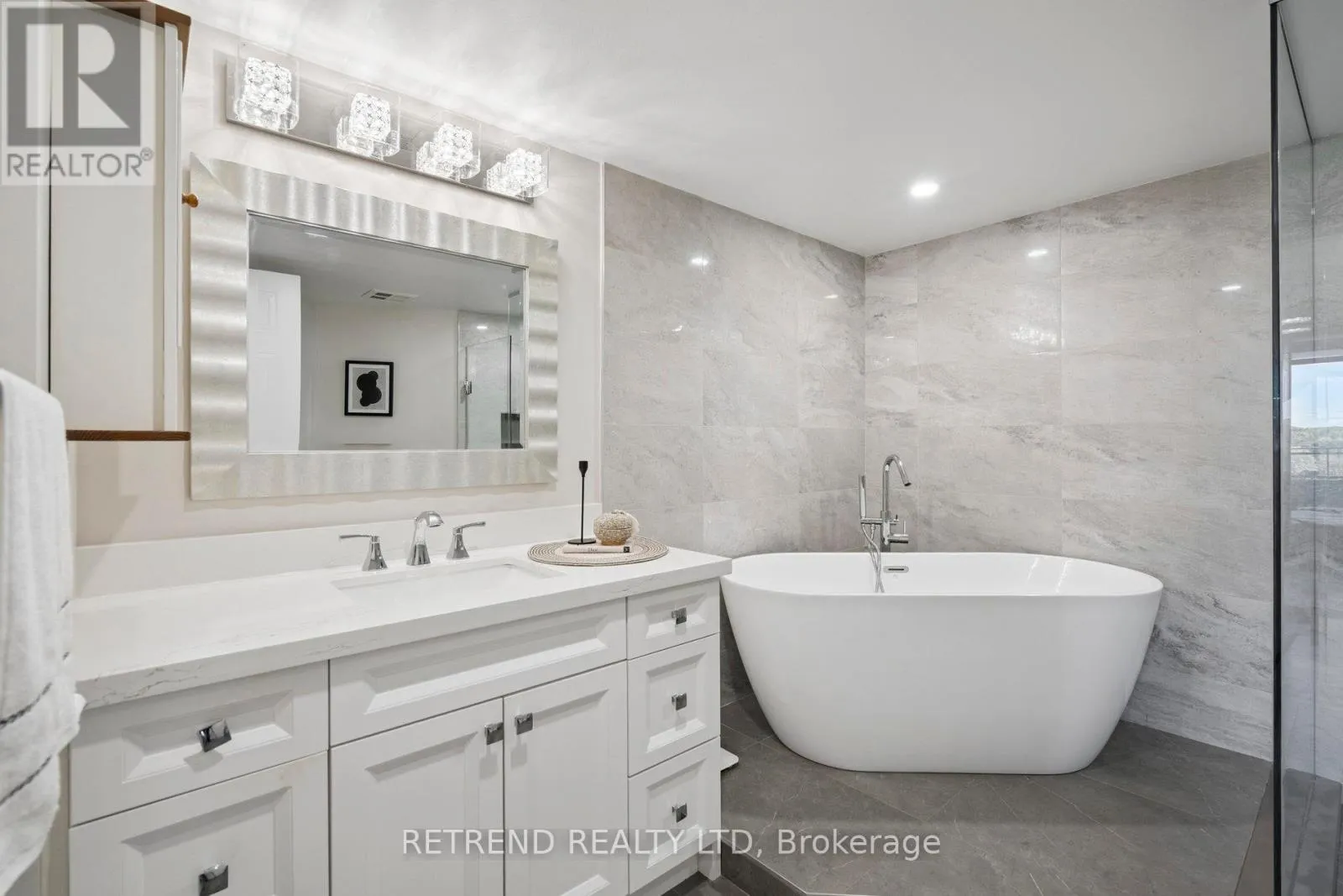 Yonge & Weldrick Experience luxury living at The Gibraltar II by Tridel! Step into this fully renovated 2-bedroom, 2-bathroom residence in one of Richmond Hills most prestigious buildings. Offering 1,454 sqft of thoughtfully designed living space, this home has been meticulously upgraded with engineered hardwood flooring, elegant crown moulding, and sleek pot lights, an inviting electric fireplace in the living room! Every detail carefully curated for style and comfort. The modern kitchen is a chefs delight, featuring ample cabinetry, premium appliances, and generous storage solutions.The spacious primary suite features a private walk-out balcony, a generous walk-in closet, and a luxurious 4-piece ensuite with a stand-alone tub. The second bedroom is filled with natural light from large windows and is conveniently located next to a modern 3-piece bath. Perfect for both relaxation and entertaining, the condo offers an array of premium amenities including indoor and outdoor pools, tennis courts, squash, sauna, a fitness centre, games room, party room, board room, and 24-hour concierge service. Minutes from groceries (T&T, H Mart, No Frills, Shoppers & Costco), Hillcrest Mall, medical offices, dining, and public transit including YRT, Viva, and Richmond Hill GO Station with the future TTC subway expansion adding even more convenience. (id:27476)
